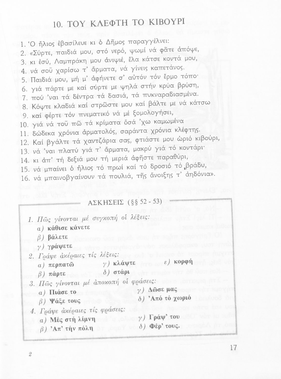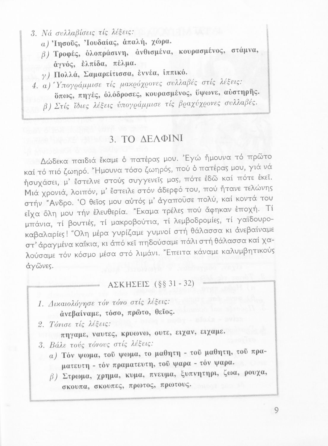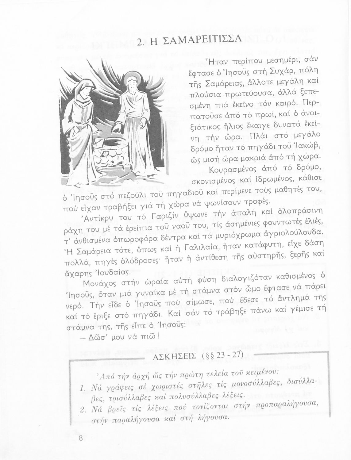 Βαθμίδα εκπαίδευσης: Πρωτοβάθμια Μάθημα: Νέα Ελληνικά Γλώσσα: Δημοτική Παρουσίαση περιεχομένου: Το σύγγραμμα ήταν σχολικό εγχειρίδιο για το μάθημα της Γλώσσας στο Δημοτικό. Περιέχει κείμενα πεζά και διηγήματα μέσα από τα οποία παρουσιάζονται γραμματικά και συντακτικά φαινόμενα. |