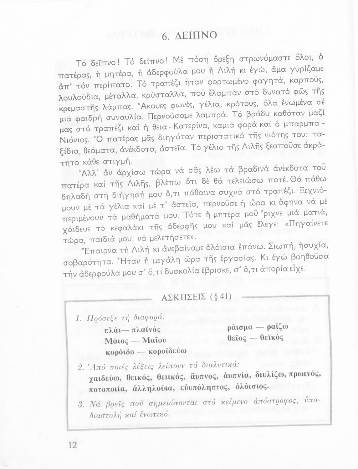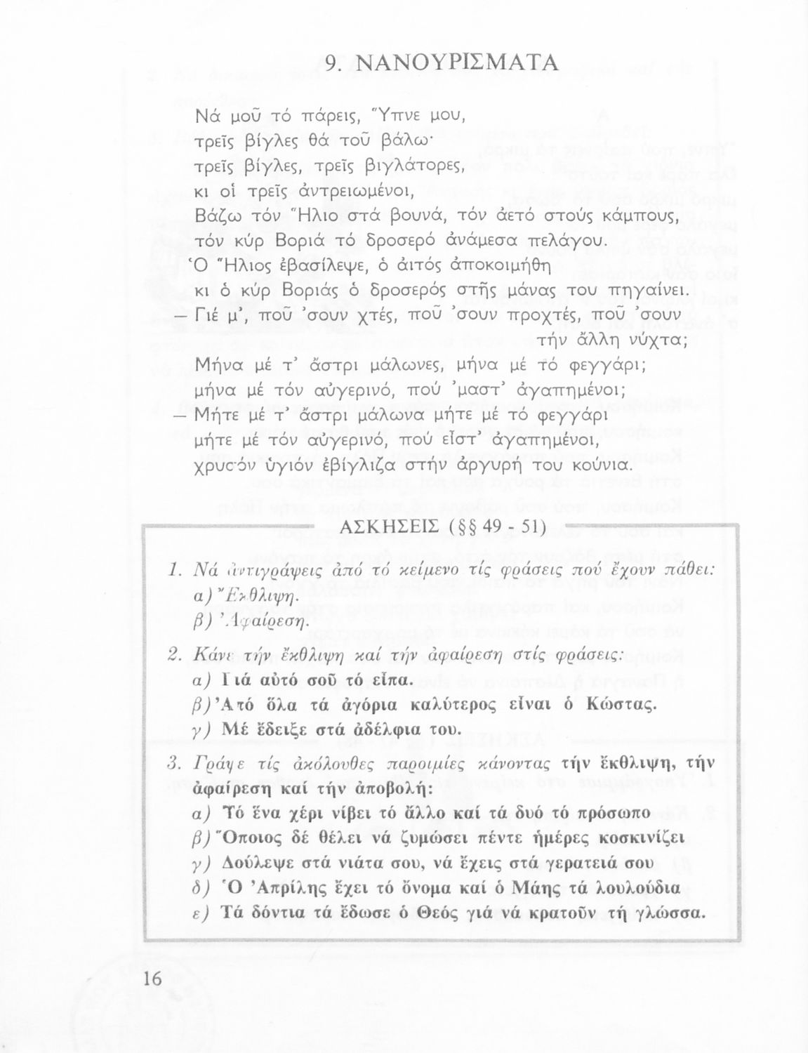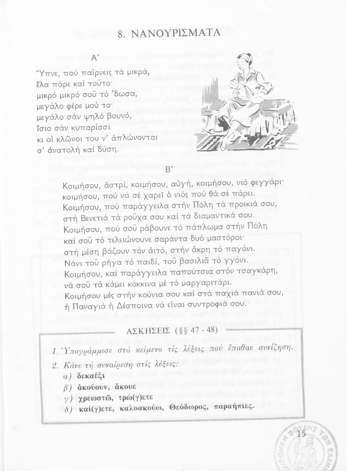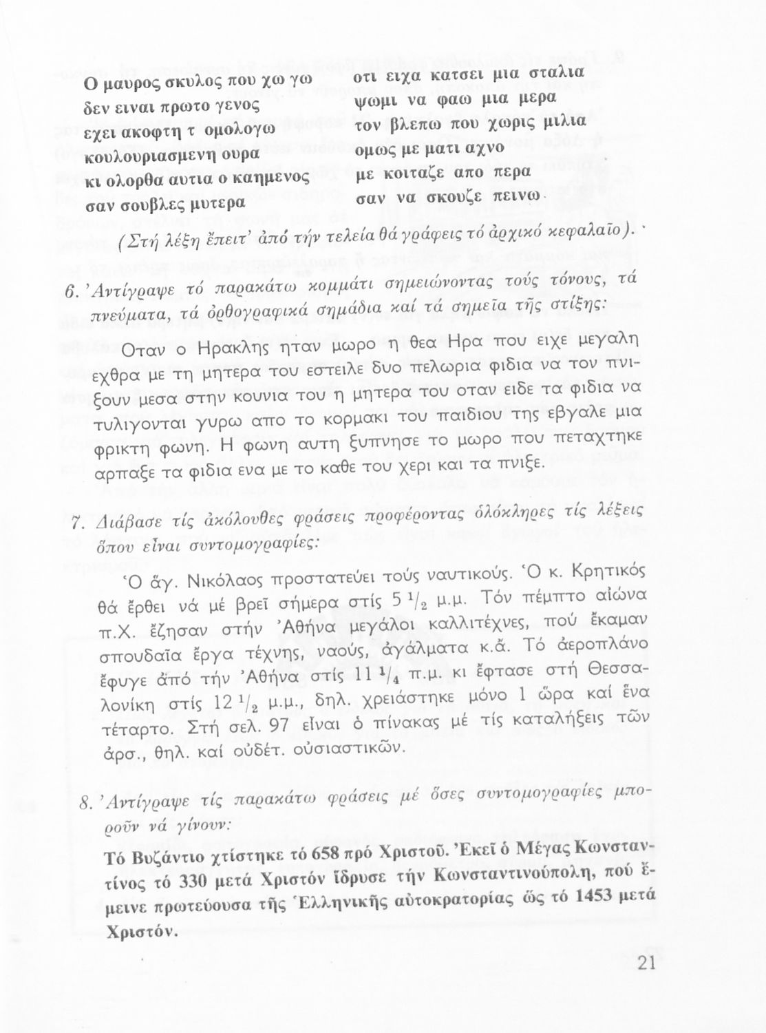 Βαθμίδα εκπαίδευσης: Πρωτοβάθμια Μάθημα: Νέα Ελληνικά Γλώσσα: Δημοτική Παρουσίαση περιεχομένου: Το σύγγραμμα ήταν σχολικό εγχειρίδιο για το μάθημα της Γλώσσας στο Δημοτικό. Περιέχει κείμενα πεζά και διηγήματα μέσα από τα οποία παρουσιάζονται γραμματικά και συντακτικά φαινόμενα. |