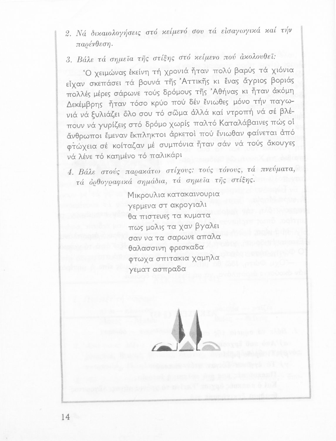 Κωδικός αναγνώρισης: 03-20556984 Τίτλος: Νεοελληνική Γραμματική Κείμενα και Ασκήσεις Συγγραφέας: Α. Καρανικόλας, Αντ. Κατσουρός, Καλλ. Μουστάκα, Κων. Παπανικολάου, Ιγν. Σακαλής, Αν. Σεφεριάδου, Ηλ. Σπυρόπουλος, Δ. Τομπαΐδης, Χρ. Τσολάκης Εικονογράφος: Τάσος Μουσταφέλλος Μέγεθος και υπόστρωμα: Σχολικό εγχειρίδιο, μαλακό εξώφυλλο, 146 σελίδες. Σκίτσα και εικόνες (έγχρωμα). |