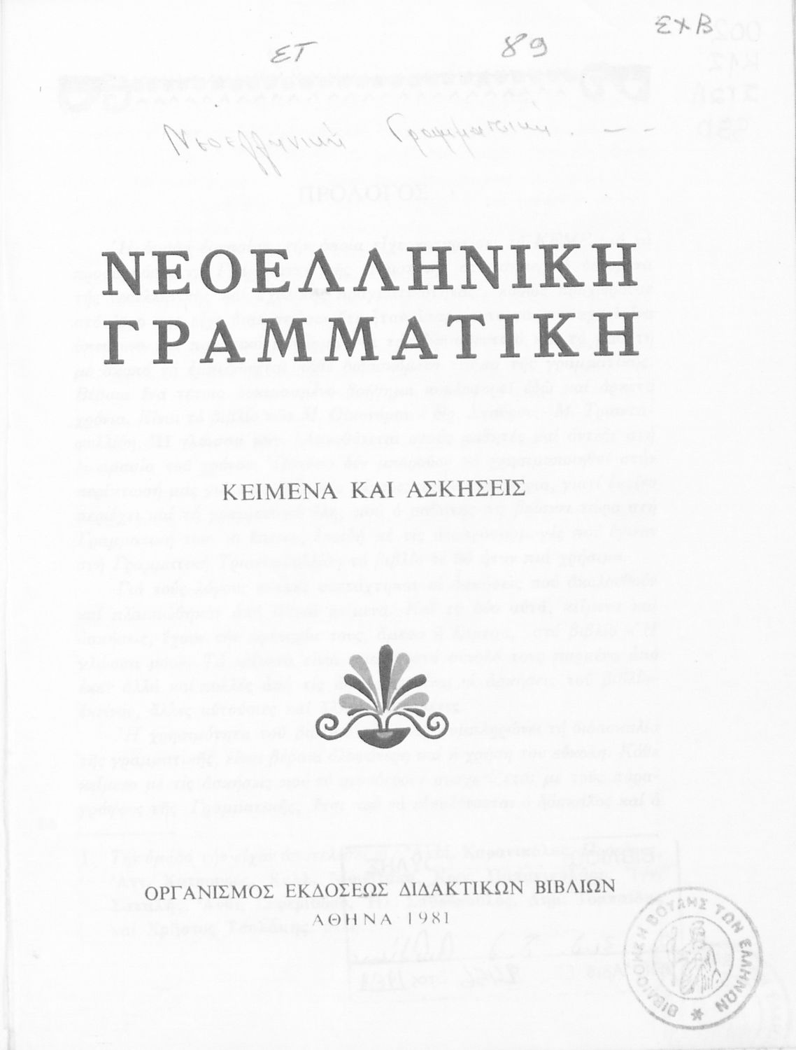 Εκδότης: Οργανισμός Εκδόσεως Διδακτικών Βιβλίων Έτος έκδοσης: 1981 Τόπος έκδοσης: Αθήνα Έκδοση: 6η Υπουργική απόφαση / Σύμβαση: 3534/30-12-1980 Έτος έγκρισης: 1980 |