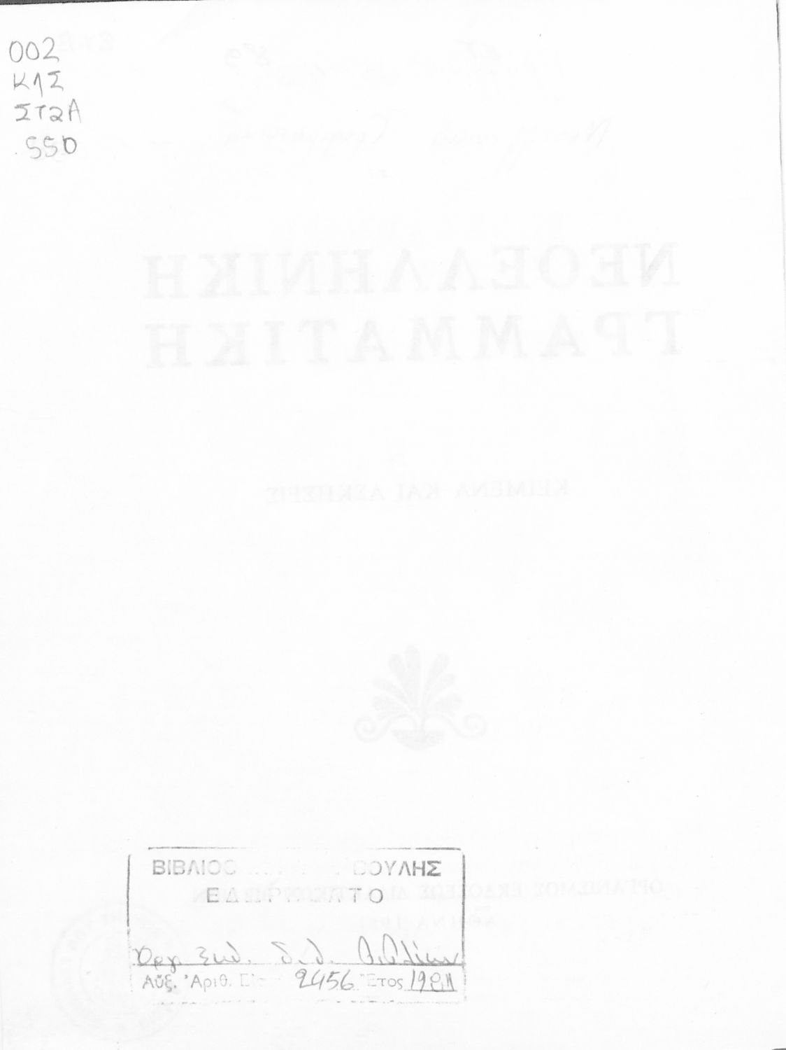 Εντοπισμός πρωτοτύπου: Βιβλιοθήκη της Βουλής των Ελλήνων Κωδικός βιβλιοθήκης: 20556984 |