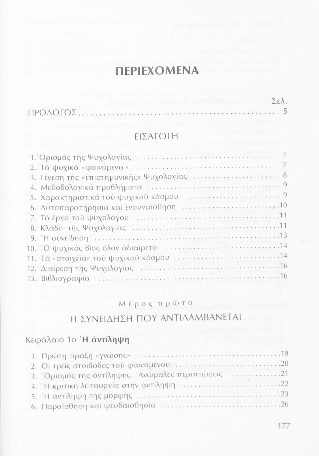 Σχολικό εγχειρίδιο για την Β΄ Λυκείου για το μάθημα της Ψυχολογίας. Το εγχειρίδιο περιλαμβάνει εισαγωγικά γενικές έννοιες και ορισμούς της επιστήμης της ψυχολογίας (ορισμοί, χαρακτηριστικά του ψυχικού κόσμου, κλάδοι της ψυχολογίας κ.α.), το κεφάλαιο της αντίληψης, τα αισθήματα, τις αισθήσεις, τις παραστάσεις, την μνήμη και φαντασία, την αντίληψη του χωροχρόνου, την συνείδηση, την προσοχή, τις ορμές και τα ένστικτα και άλλα.