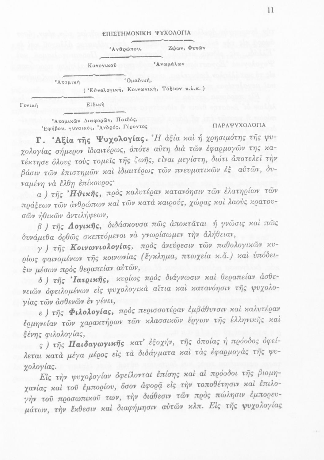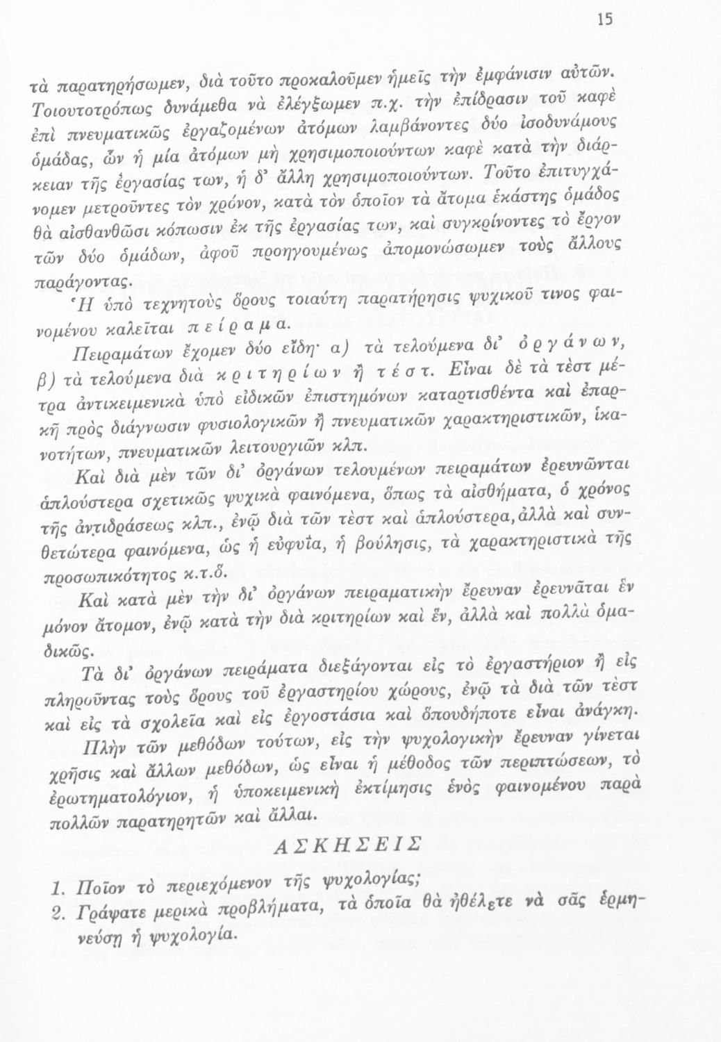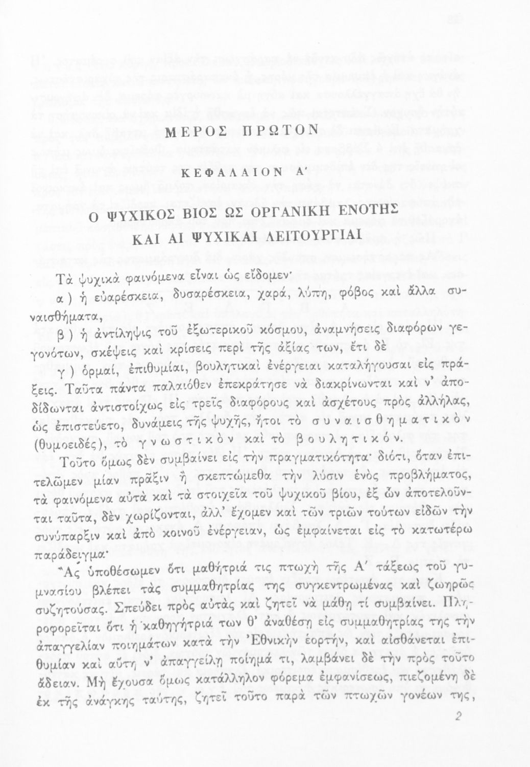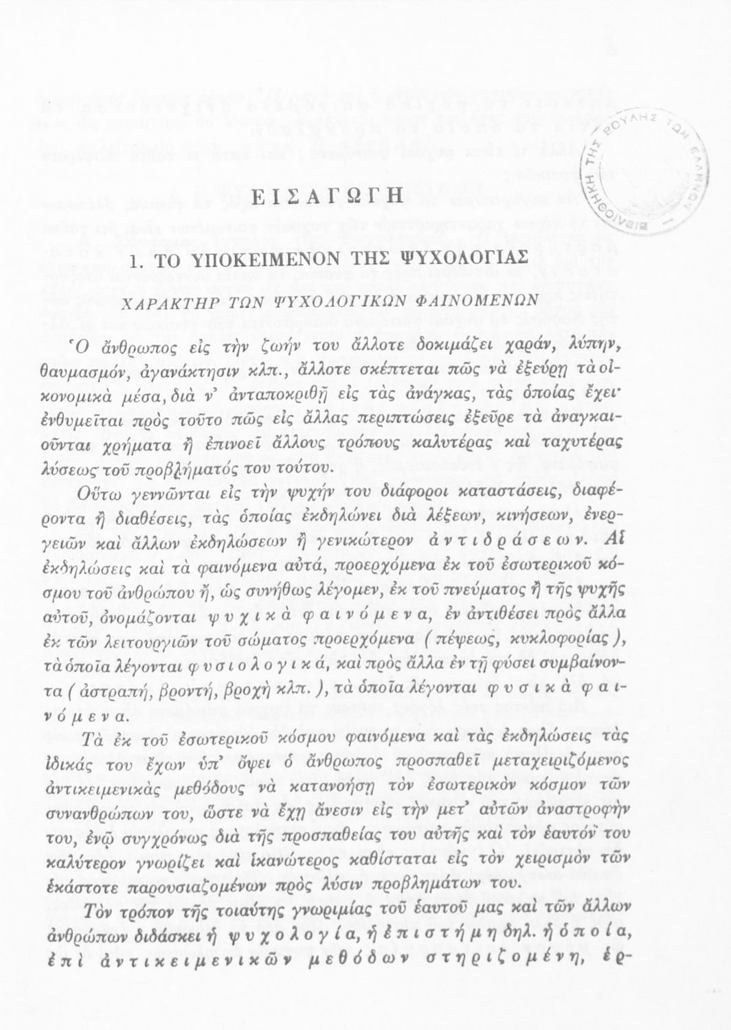 Σχολικό εγχειρίδιο Ψυχολογίας για την Ε΄ Γυμνασίου που περιλαμβάνει θεωρία και ασκήσεις και εξετάζει τον ψυχικό βίο από νοητική, συναισθηματική και βουλητική άποψη. Φέρει το σύμβολο της δικτατορίας.