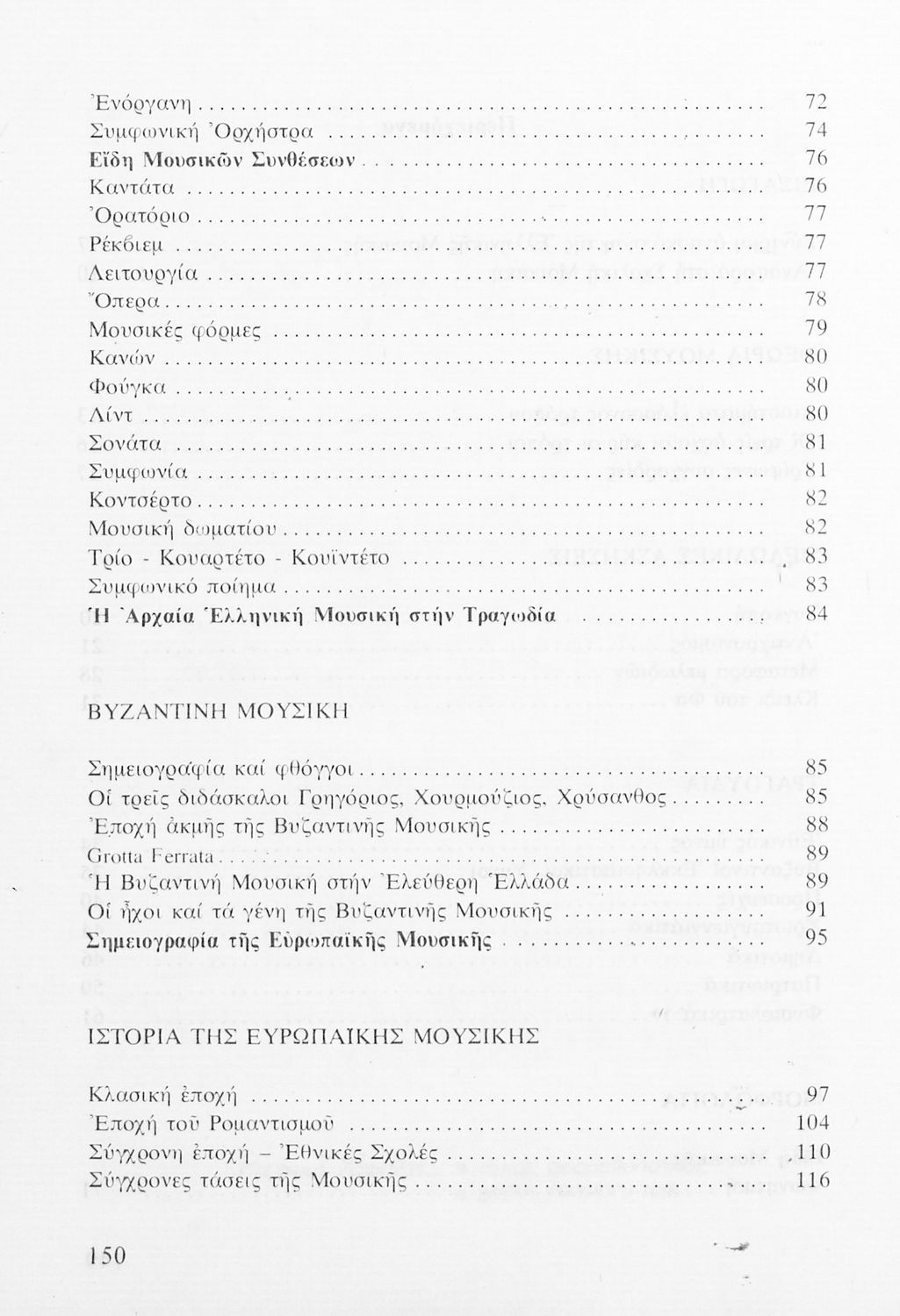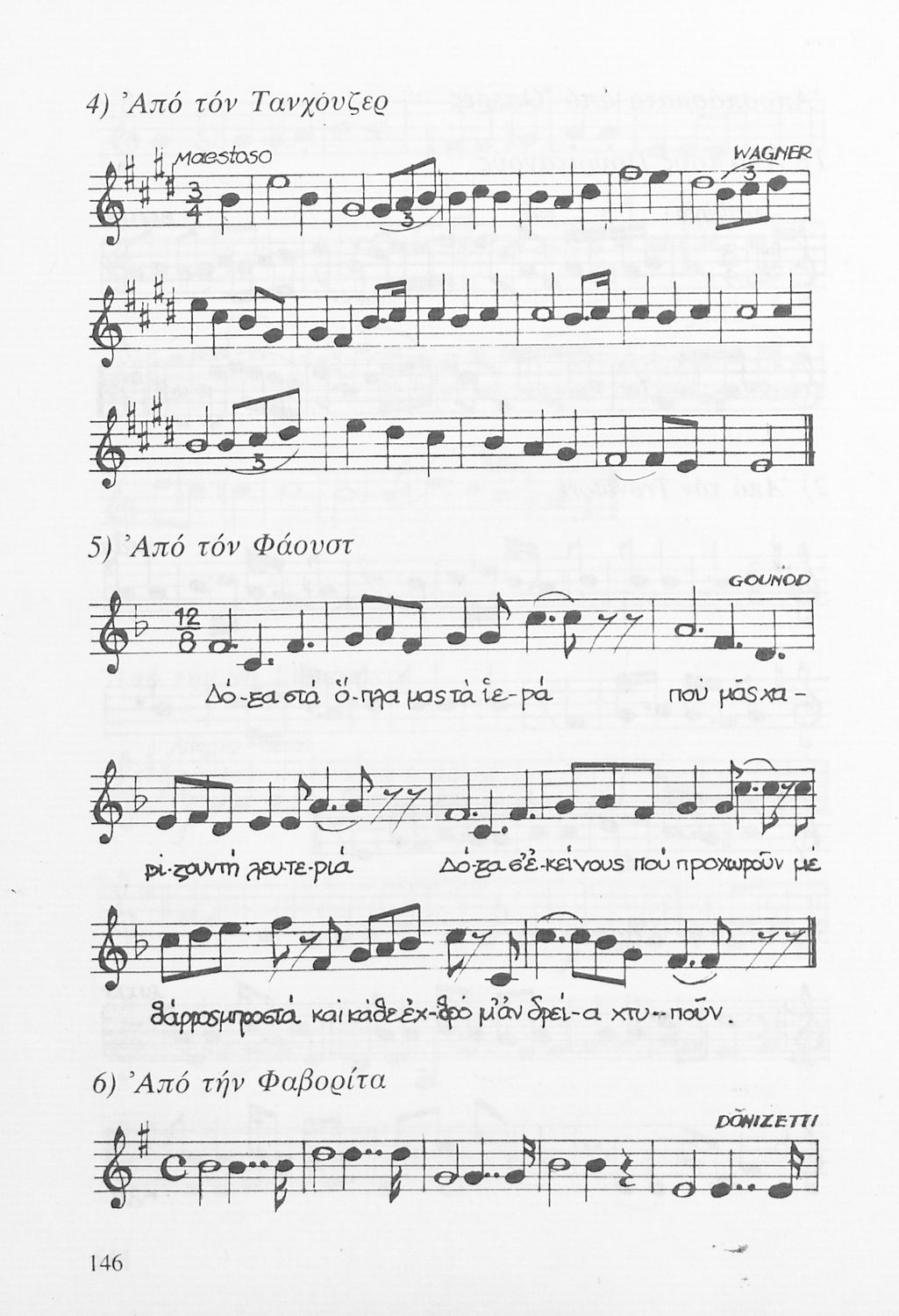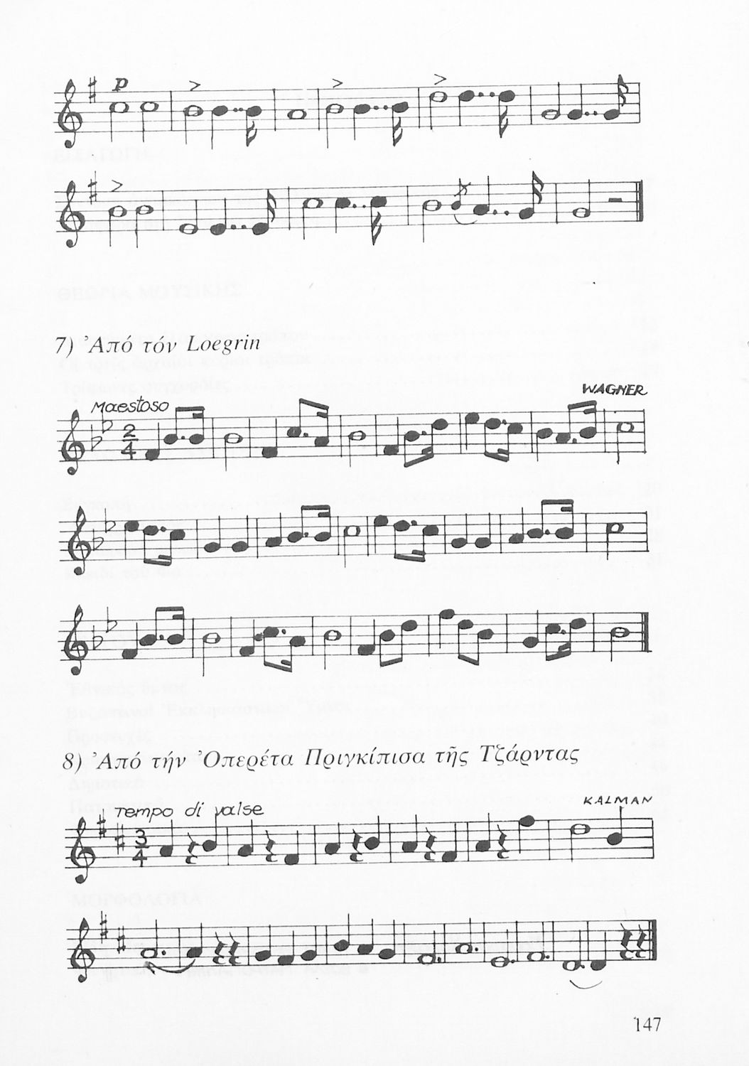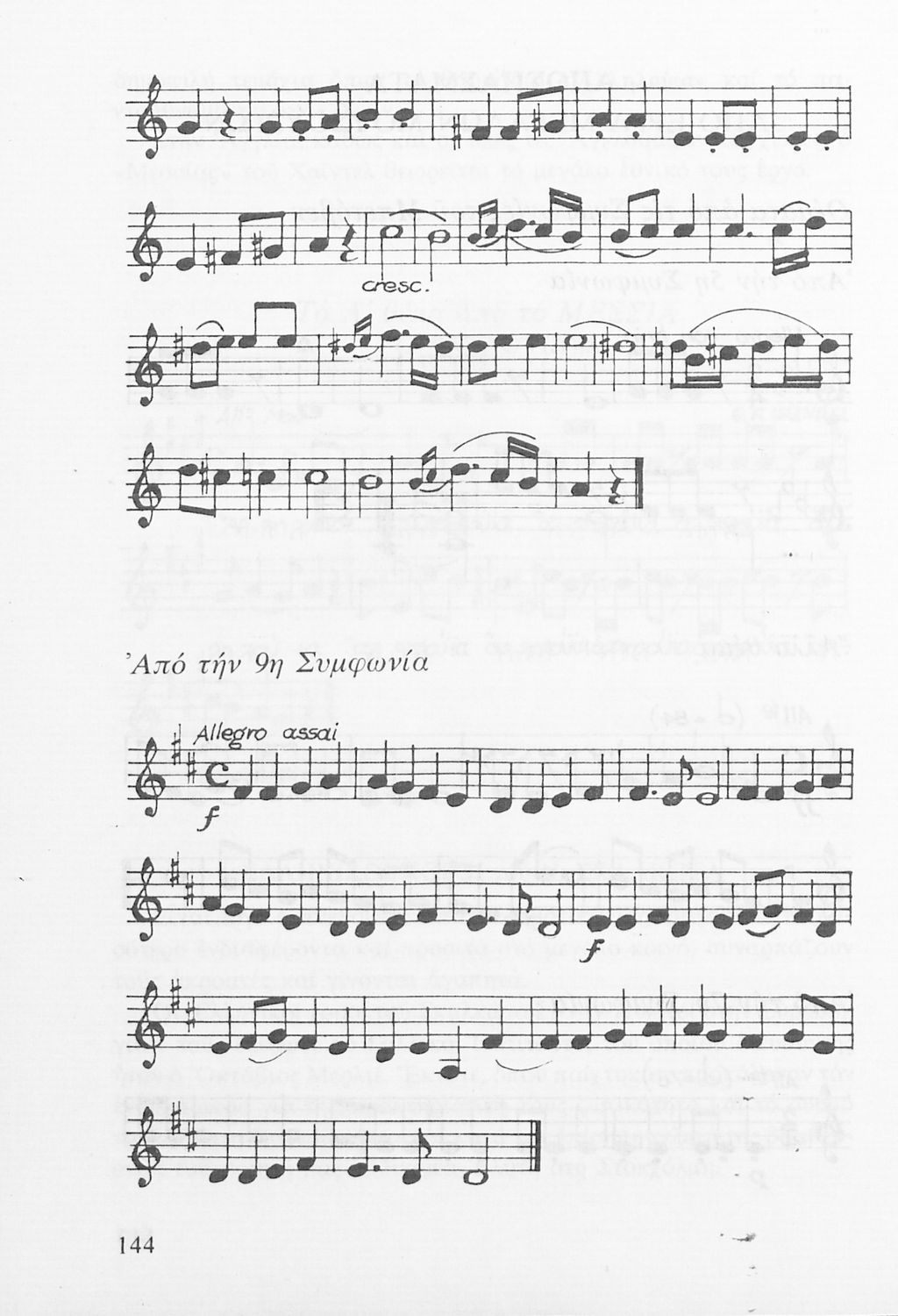 Σχολικό εγχειρίδιο Μουσικής της Α ' Λυκείου. Το βιβλίο ξεκινάει με μια σύντομη επισκόπηση της ελληνικής μουσικής από τα αρχαία χρόνια μέχρι και τον 20ο αιώνα. Στη συνέχεια εισάγει τους μαθητές στη θεωρία της μουσικής, τα είδη των μουσικών συνθέσεων, αναλύοντας τη Βυζαντινή μουσική και την ιστορία της ευρωπαϊκής μουσικής. Στο βιβλίο περιέχονται αποσπάσματα από παρτιτούρες διάσημων συνθέσεων.
