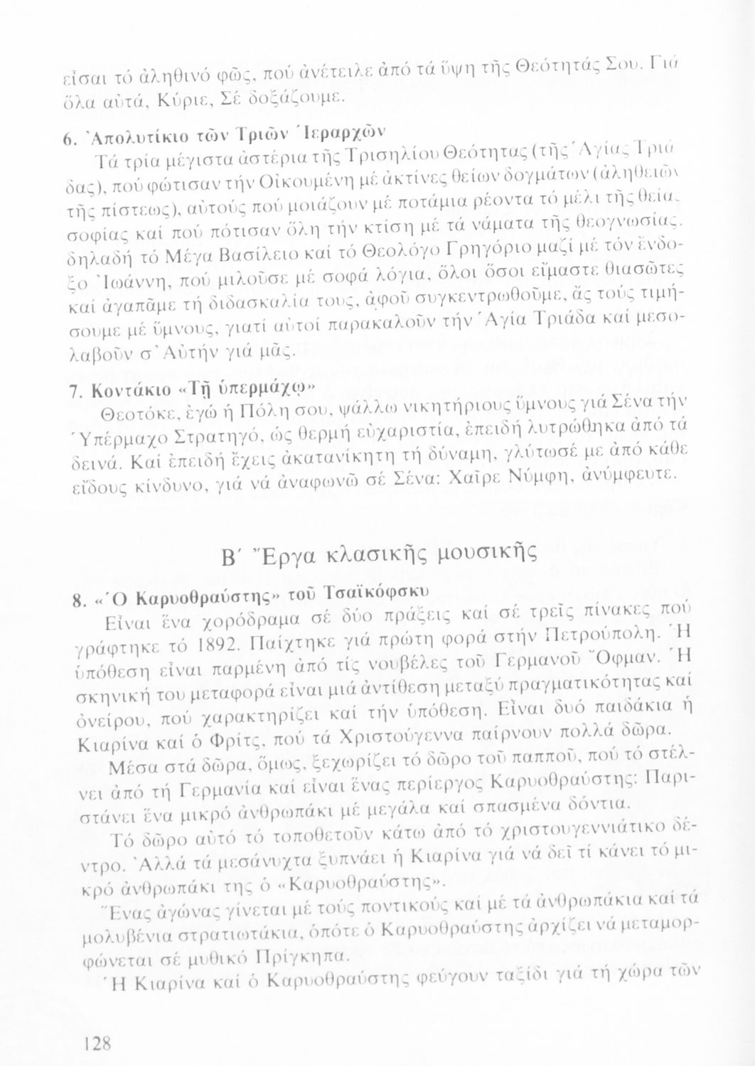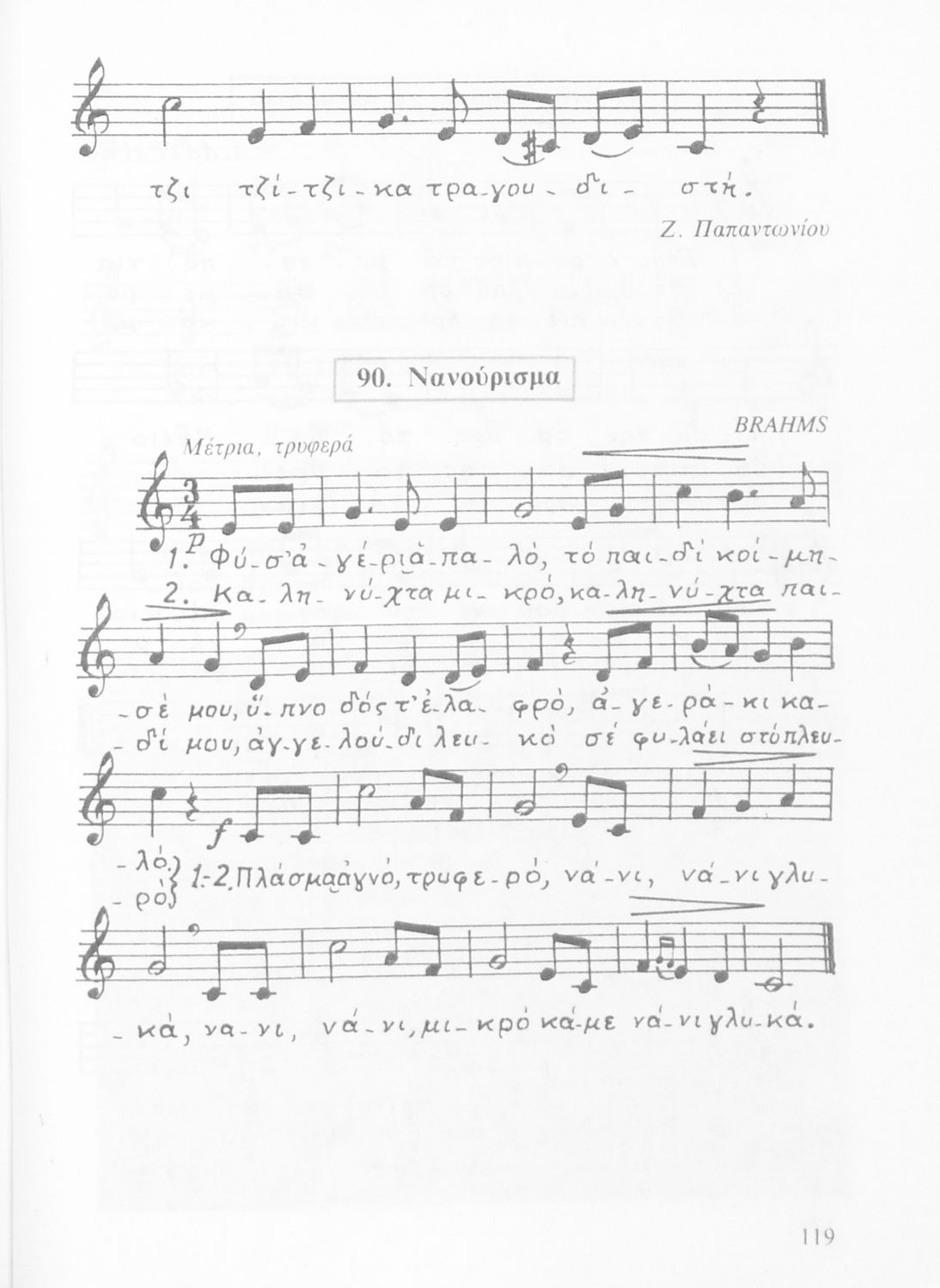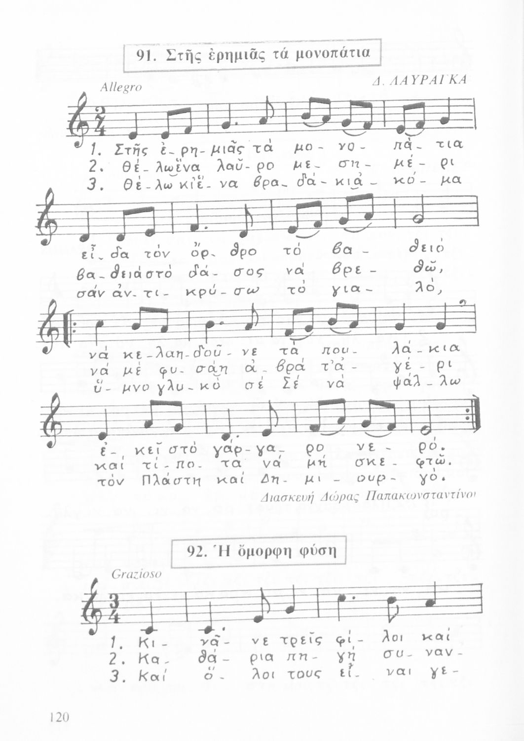 Σχολικό εγχειρίδιο Μουσικής για την Α', Β', Γ΄, Δ' τάξη Γυμνασίου, Πρακτικών Λυκείων και Διδασκαλείων. Περιέχει ασκήσεις μελωδικές, χωρίς θεωρία.