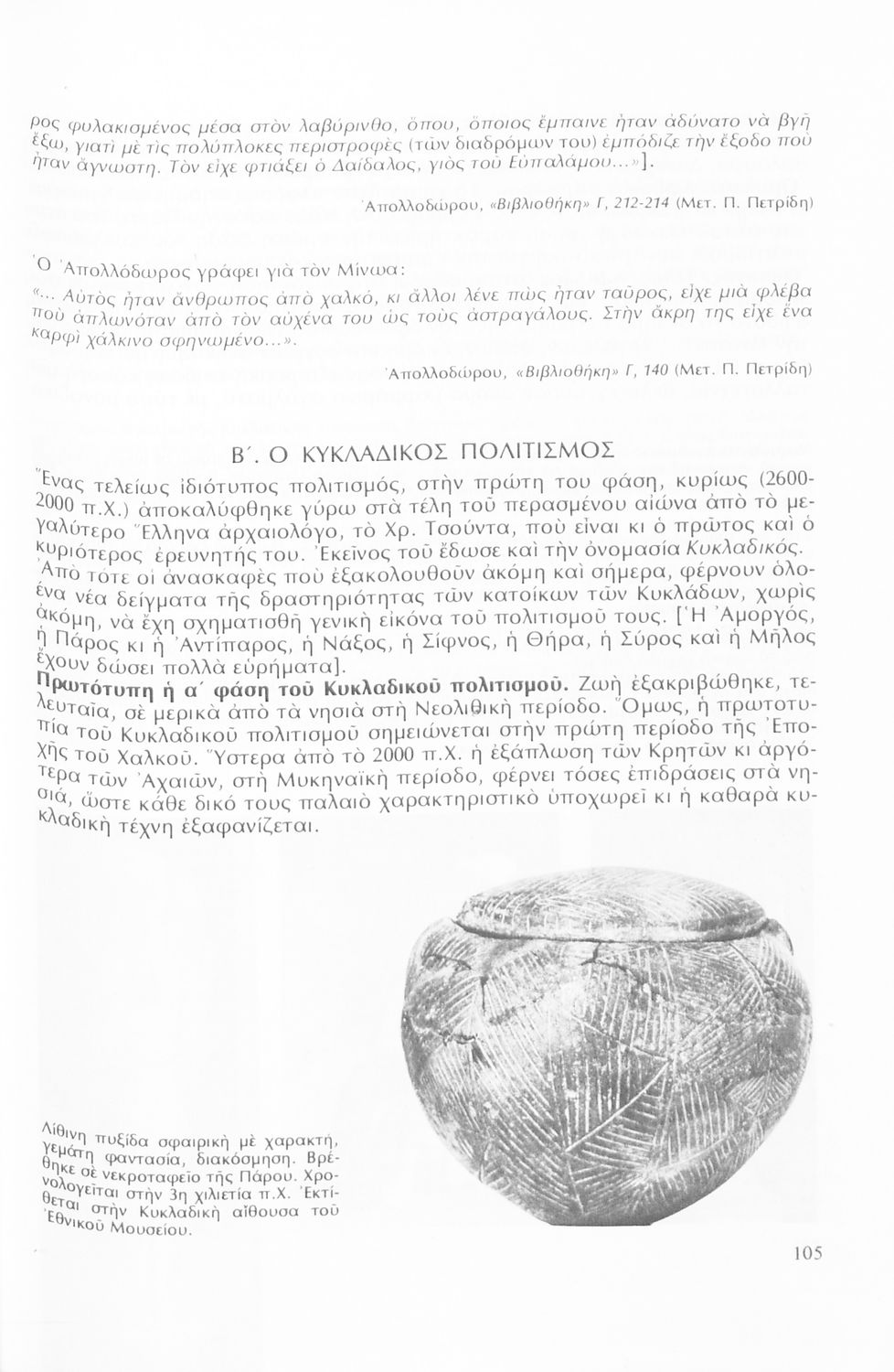 520 ## _aΣχολικό εγχειρίδιο Ιστορίας Α΄ Γυμνασίου και Α΄ Λυκείου που καλύπτει την περίοδο από την περίοδο από την εμφάνιση των πρώτων πολιτισμών μέχρι τους Καρχηδονικούς Πολέμους. Περιλαμβάνει χρονολόγιο και γλωσσάριο με επεξήγηση ορισμών.