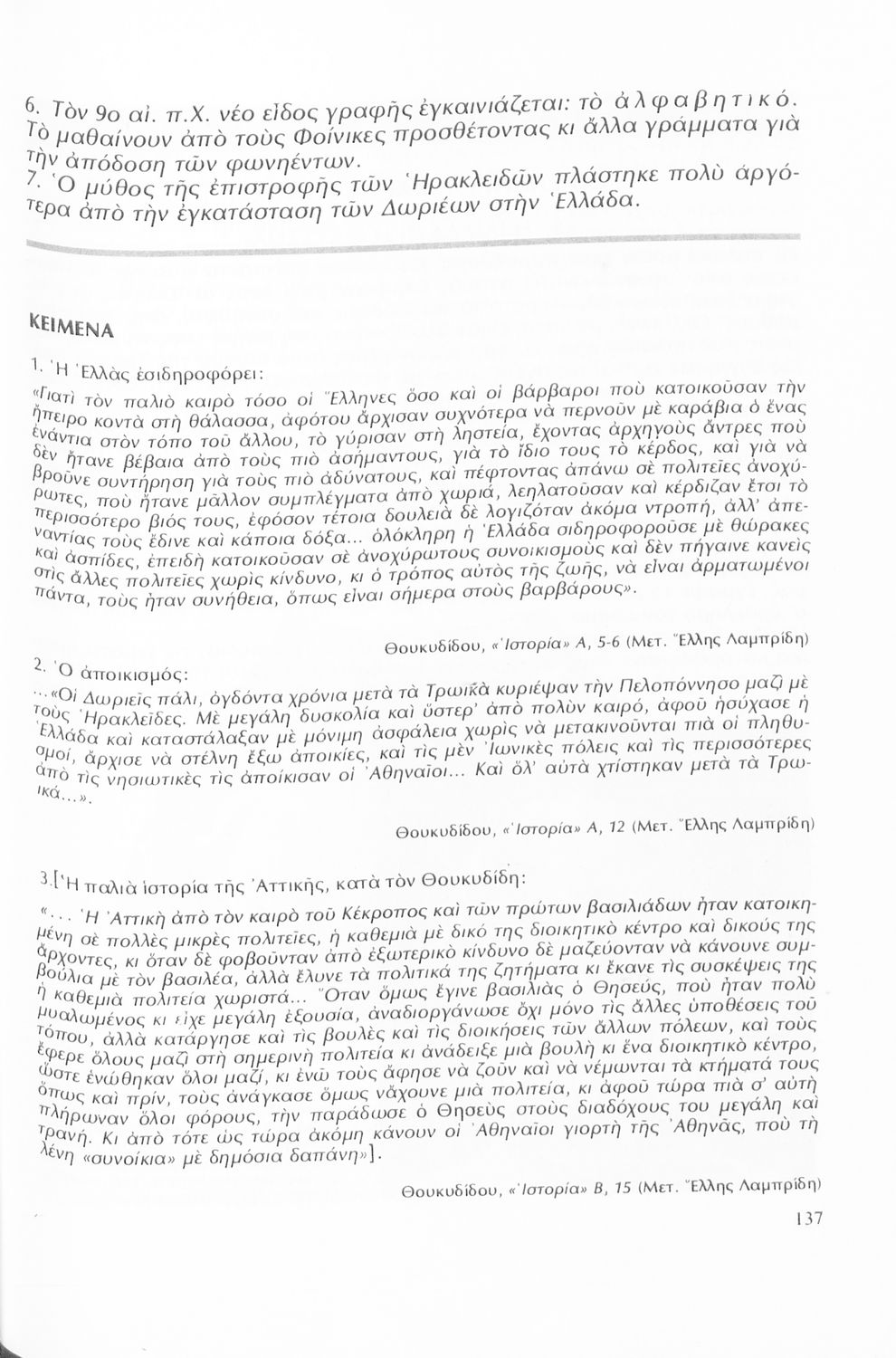 Βαθμίδα εκπαίδευσης: Δευτεροβάθμια Τάξη: Α' Γυμνασίου / Α' Λυκείου Μάθημα: Ιστορία Γλώσσα: Δημοτική Παρουσίαση περιεχομένου: Σχολικό εγχειρίδιο Ιστορίας Α΄ Γυμνασίου και Α΄ Λυκείου που καλύπτει την περίοδο από την περίοδο από την εμφάνιση των πρώτων πολιτισμών μέχρι τους Καρχηδονικούς Πολέμους. Περιλαμβάνει χρονολόγιο και γλωσσάριο με επεξήγηση ορισμών. |