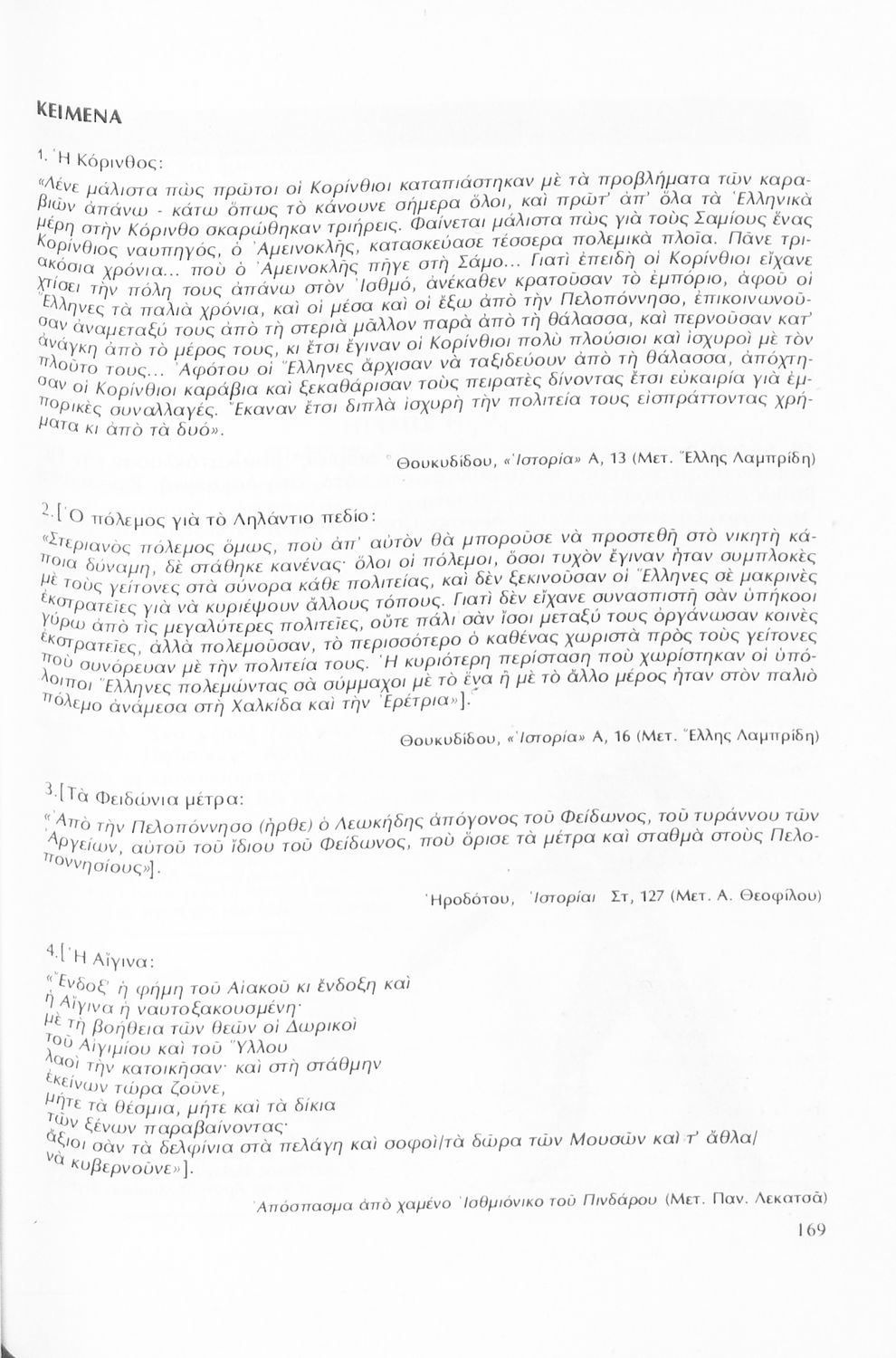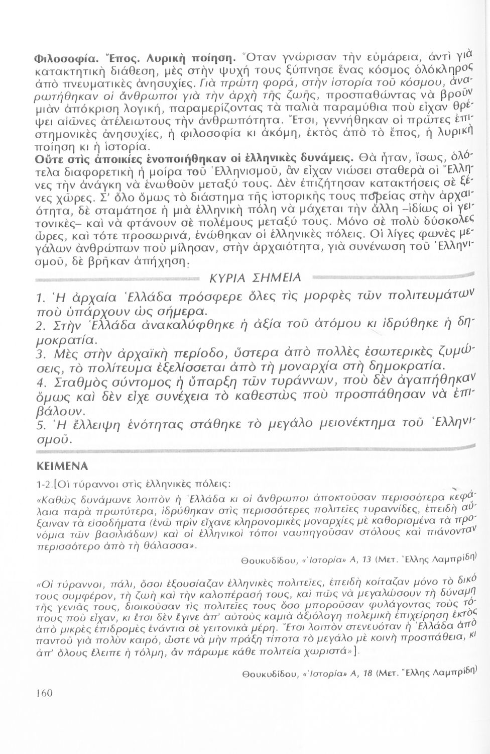 Βαθμίδα εκπαίδευσης: Δευτεροβάθμια Τάξη: Α' Γυμνασίου / Α' Λυκείου Μάθημα: Ιστορία Γλώσσα: Δημοτική Παρουσίαση περιεχομένου: Σχολικό εγχειρίδιο Ιστορίας Α΄ Γυμνασίου και Α΄ Λυκείου που καλύπτει την περίοδο από την περίοδο από την εμφάνιση των πρώτων πολιτισμών μέχρι τους Καρχηδονικούς Πολέμους. Περιλαμβάνει χρονολόγιο και γλωσσάριο με επεξήγηση ορισμών. |