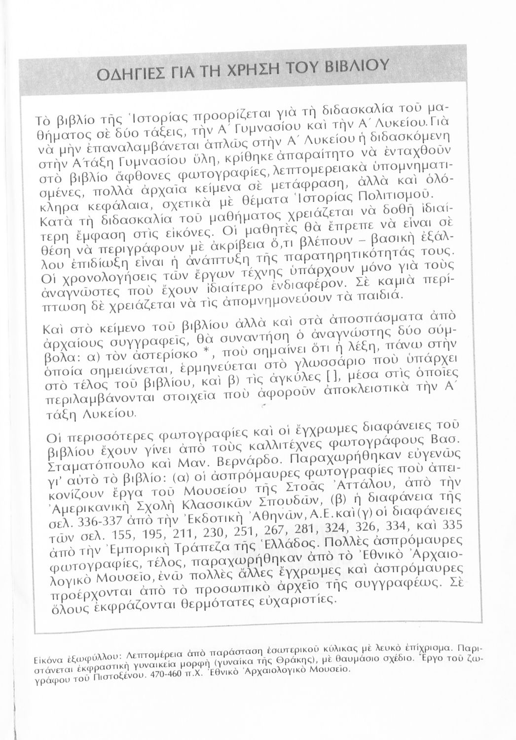 Σχολικό εγχειρίδιο Ιστορίας Α΄ Λυκείου που καλύπτει την περίοδο από την περίοδο από την εμφάνιση των πρώτων πολιτισμών μέχρι τους Καρχηδονικούς Πολέμους. Περιλαμβάνει χρονολόγιο και γλωσσάριο με επεξήγηση ...