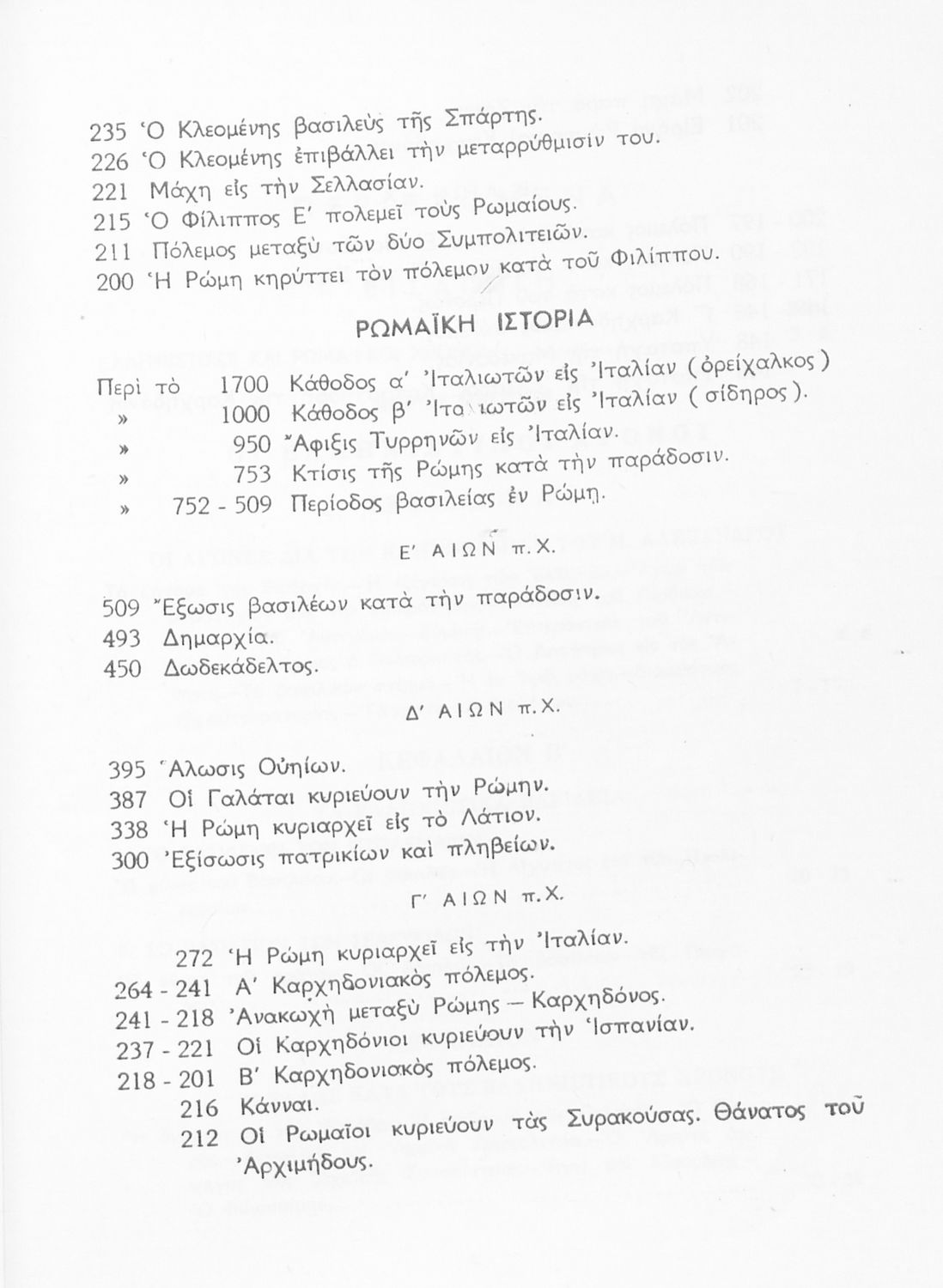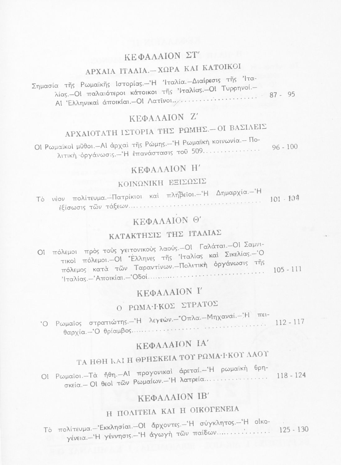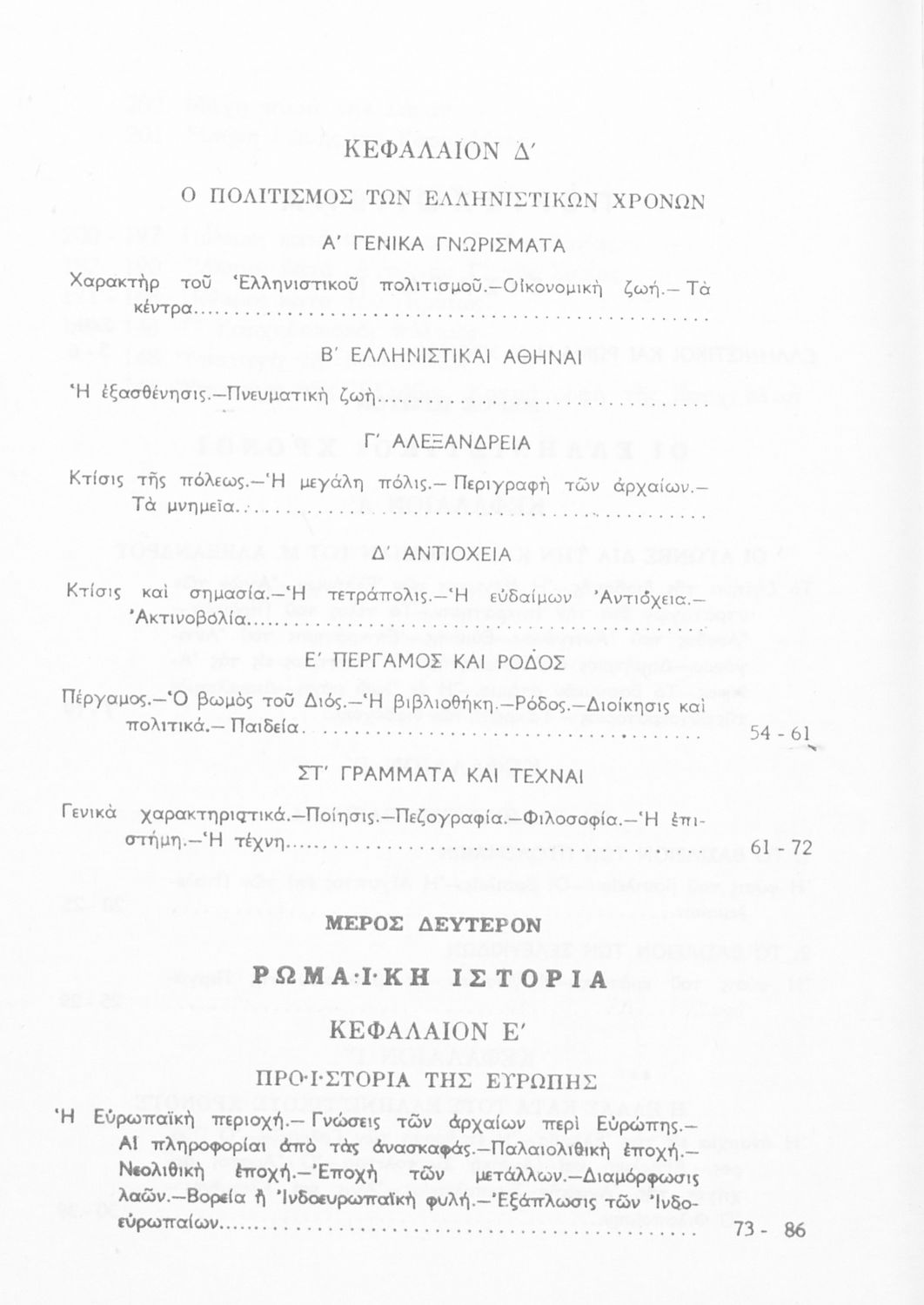 Βαθμίδα εκπαίδευσης: Δευτεροβάθμια Τάξη: Α' Γυμνασίου / Δ' Γυμνασίου Μάθημα: Ιστορία Γλώσσα: Απλή καθαρεύουσα Παρουσίαση περιεχομένου: Σχολικό εγχειρίδιο Ιστορίας Α΄ και Δ΄ Γυμνασίου που καλύπτει την περίοδο από την εμφάνιση των πρώτων πολιτισμών ως την κατάληψη της Ελλάδας από τους Ρωμαίους. Το βιβλίο είναι χωρισμένο σε δύο μέρη που έχουν ξεχωριστή αρίθμηση και περιεχόμενα. |