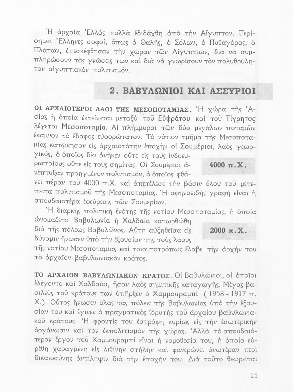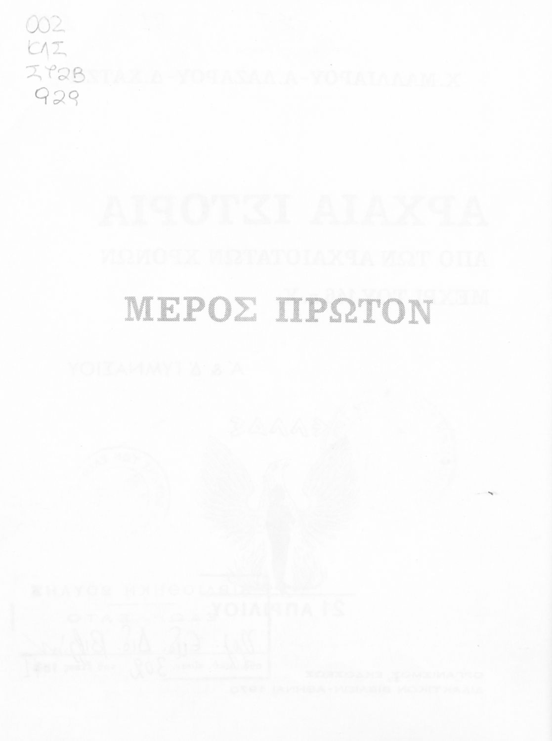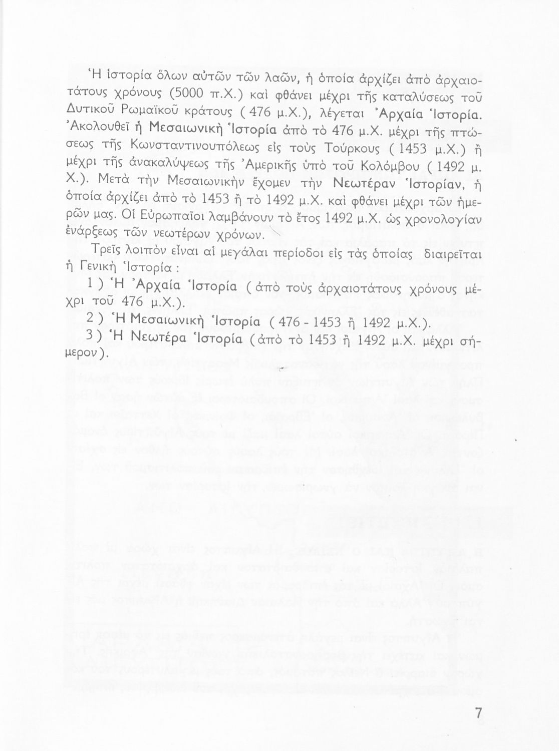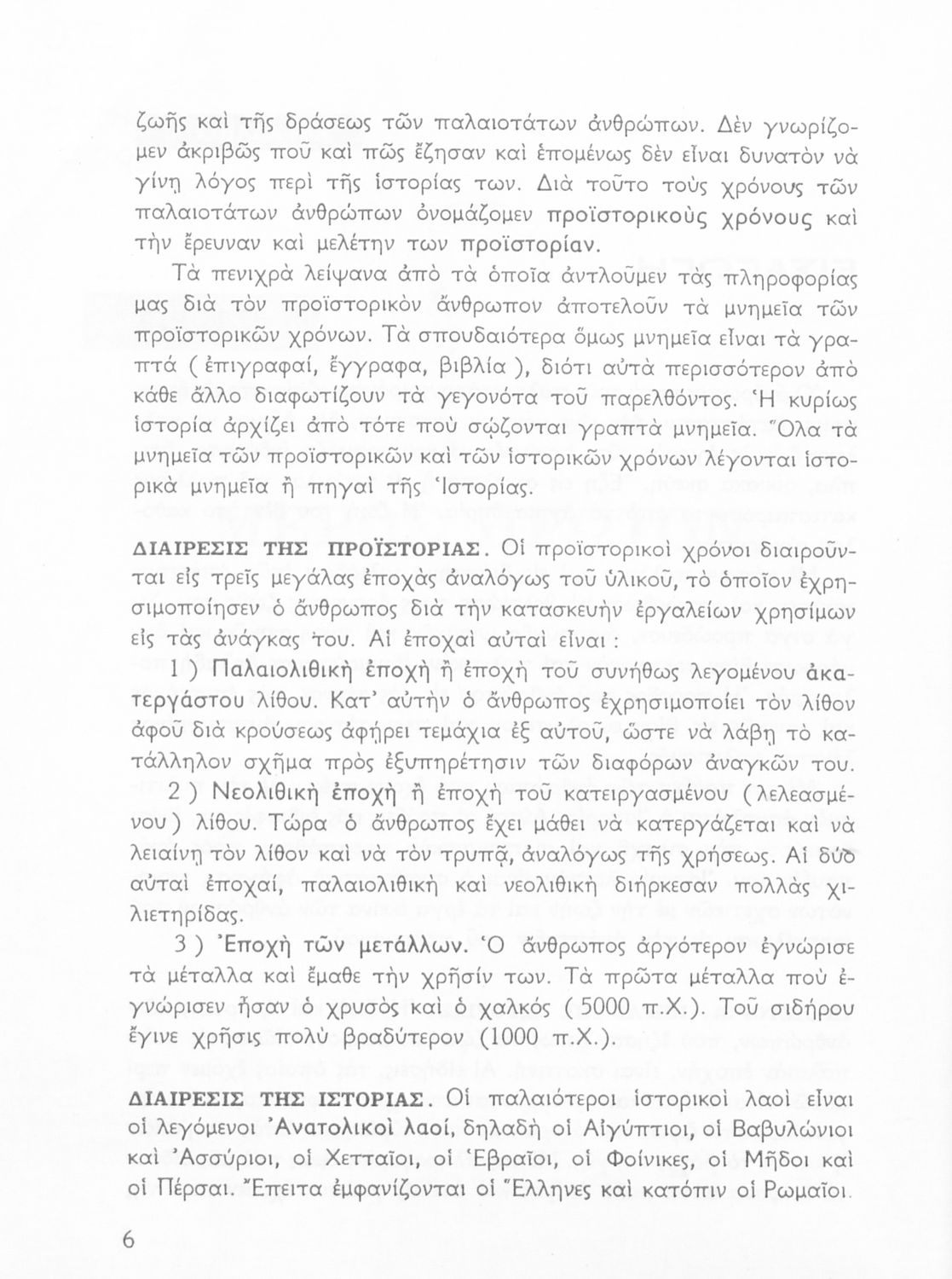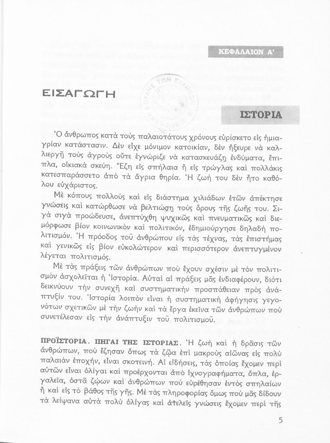 Βαθμίδα εκπαίδευσης: Δευτεροβάθμια Τάξη: Α' Γυμνασίου / Δ' Γυμνασίου Μάθημα: Ιστορία Γλώσσα: Απλή καθαρεύουσα Παρουσίαση περιεχομένου: Σχολικό εγχειρίδιο Ιστορίας Α΄ και Δ΄ Γυμνασίου που καλύπτει την περίοδο από την εμφάνιση των πρώτων πολιτισμών ως την κατάληψη της Ελλάδας από τους Ρωμαίους. Το βιβλίο είναι χωρισμένο σε δύο μέρη που έχουν ξεχωριστή αρίθμηση και περιεχόμενα. |
