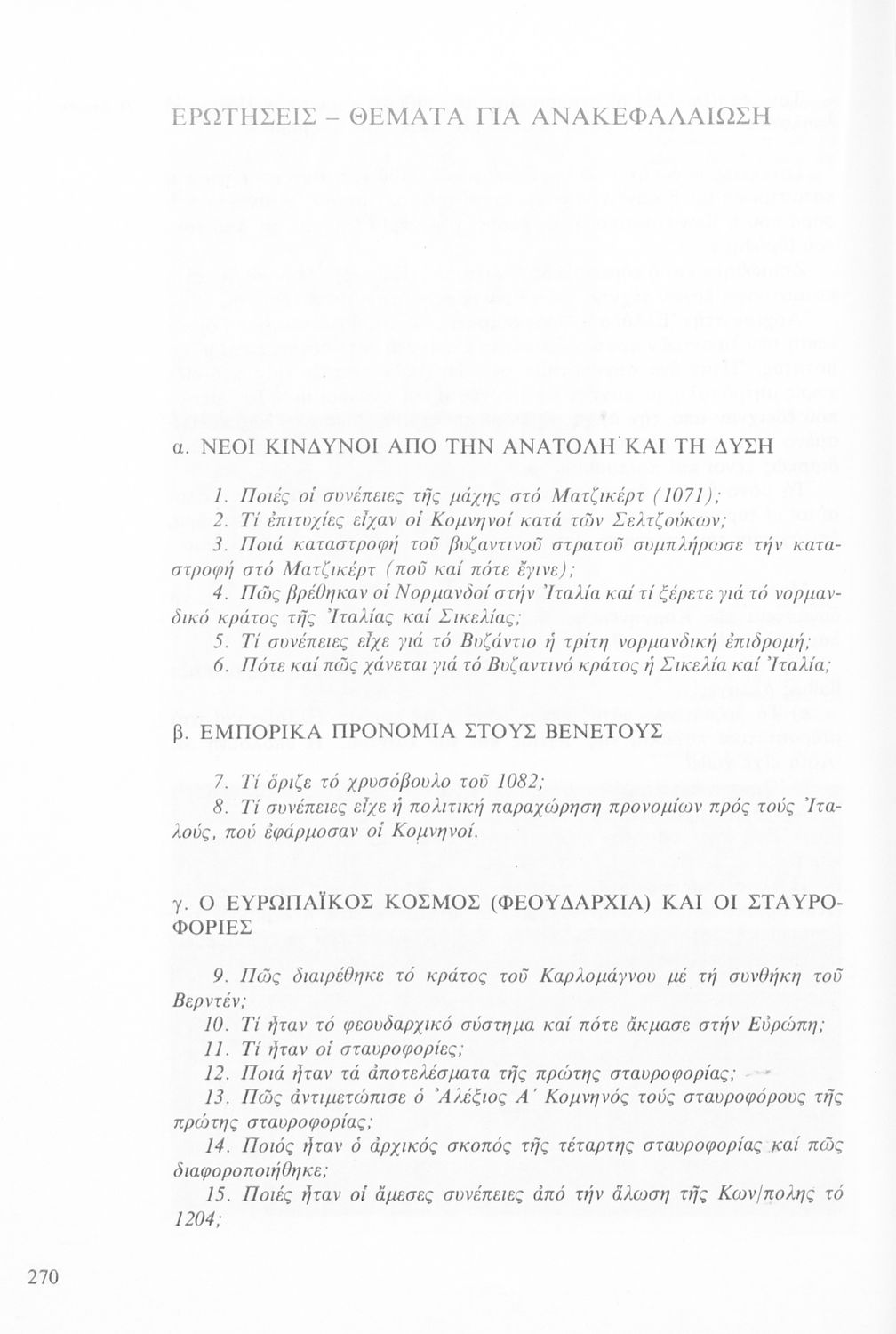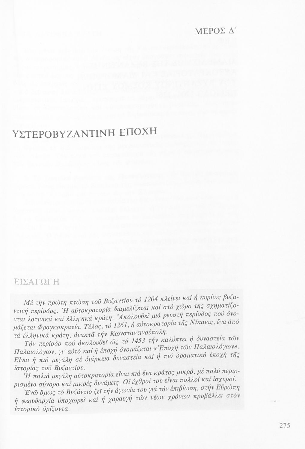 Σχολικό εγχειρίδιο Ιστορίας Β΄ και Ε΄ Γυμνασίου που καλύπτει την περίοδο από την άνοδο του Μ. Κωνσταντίνου στο θρόνο μέχρι και την άλωση της Κωνσταντινούπολης. Παρουσιάζει και τα πνευματικά και καλλιτεχνικά ...