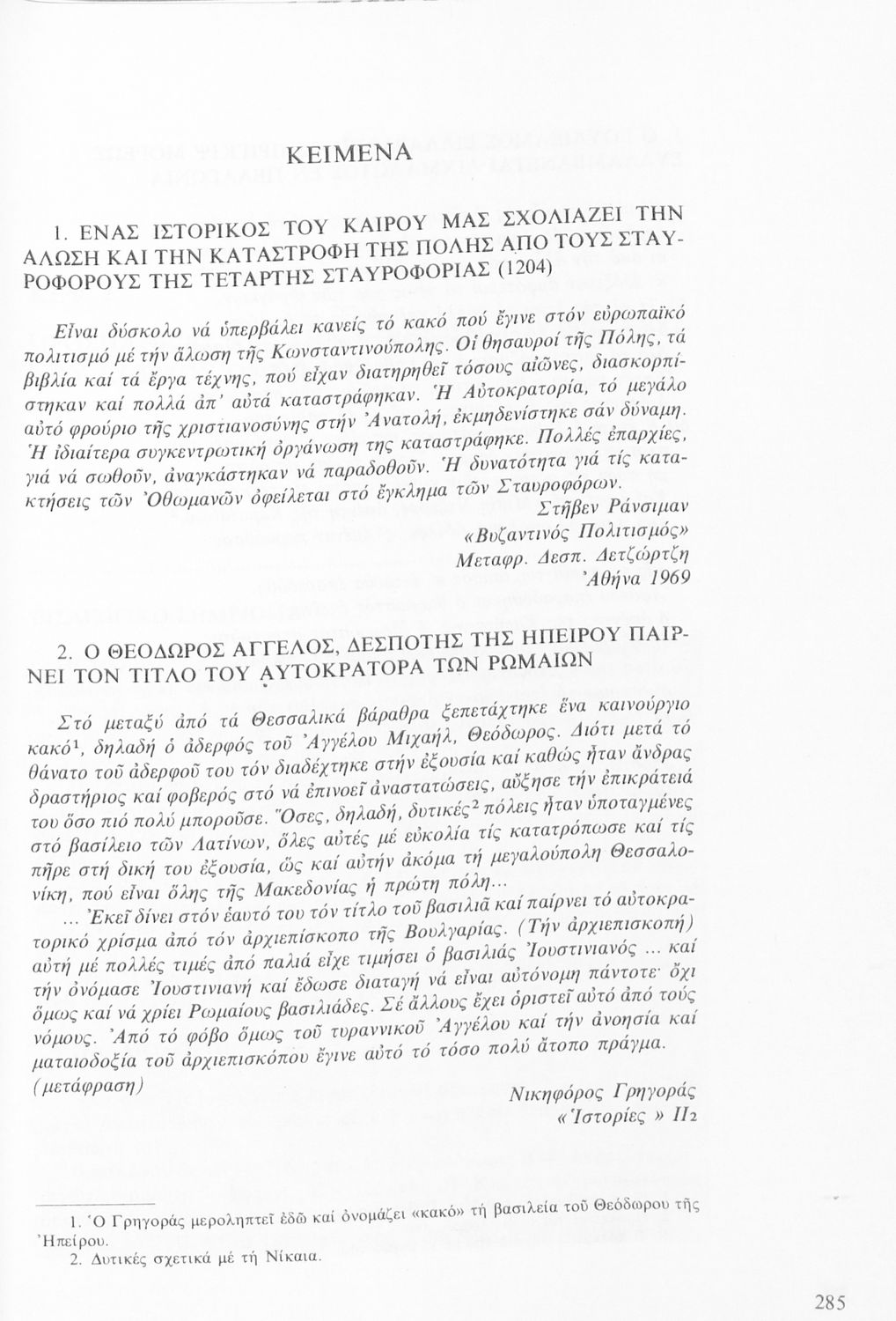 Σχολικό εγχειρίδιο Ιστορίας Β΄ και Ε΄ Γυμνασίου που καλύπτει την περίοδο από την άνοδο του Μ. Κωνσταντίνου στο θρόνο μέχρι και την άλωση της Κωνσταντινούπολης. Παρουσιάζει και τα πνευματικά και καλλιτεχνικά ...