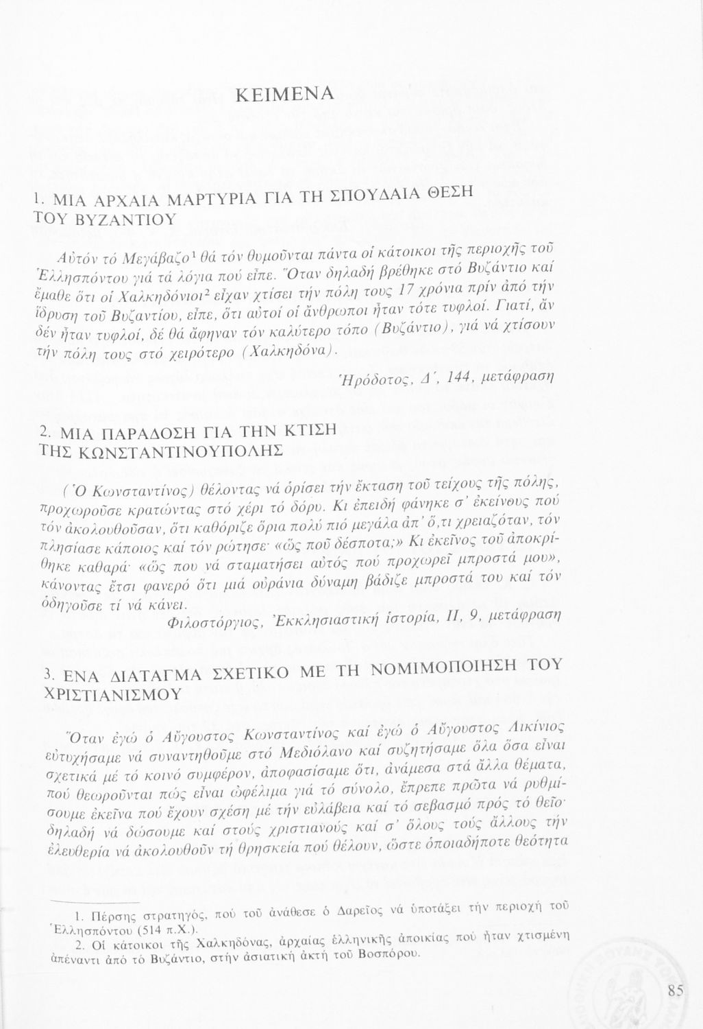 Σχολικό εγχειρίδιο Ιστορίας Β΄ και Ε΄ Γυμνασίου που καλύπτει την περίοδο από την άνοδο του Μ. Κωνσταντίνου στο θρόνο μέχρι και την άλωση της Κωνσταντινούπολης. Παρουσιάζει και τα πνευματικά και καλλιτεχνικά ...
