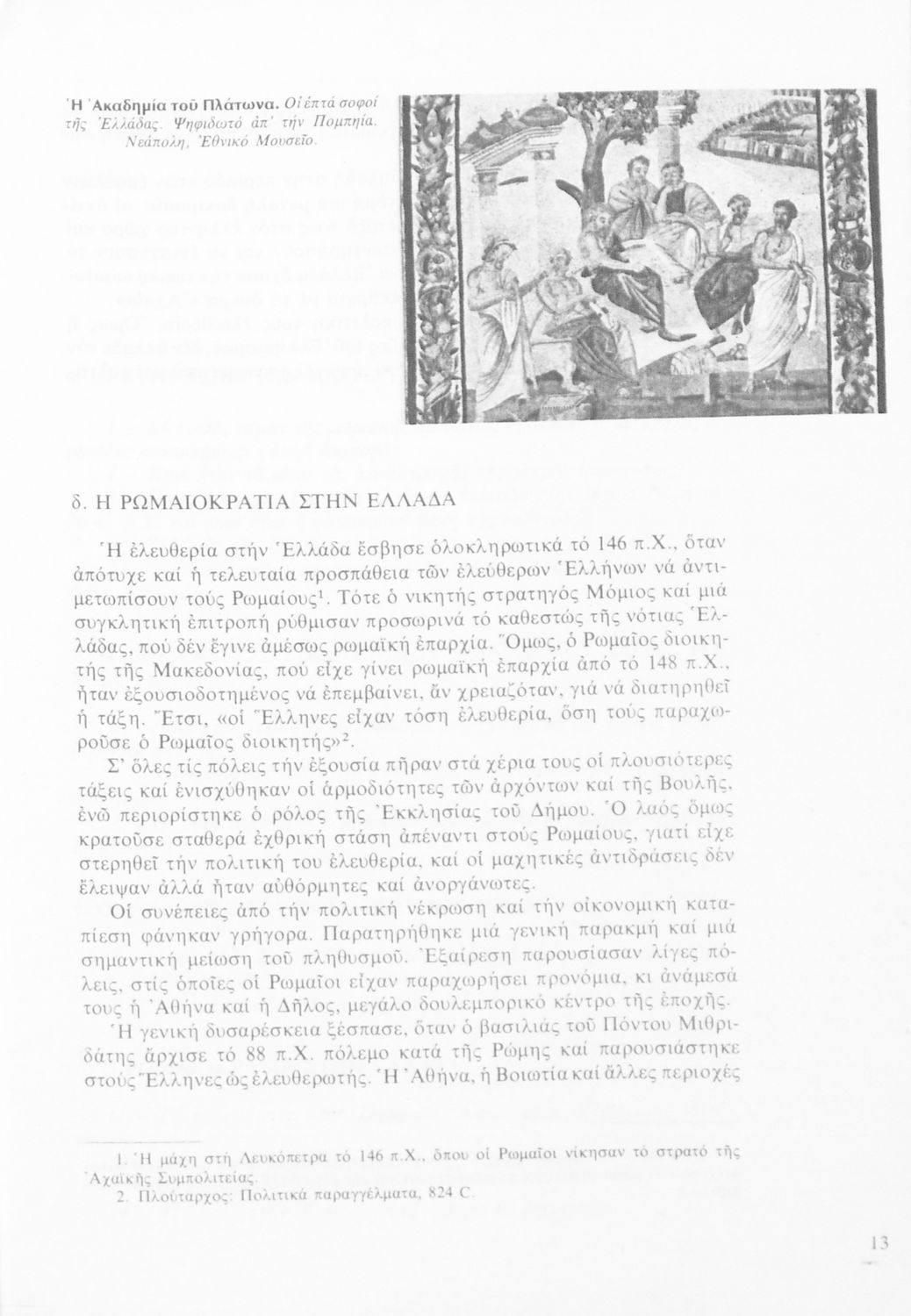 Σχολικό εγχειρίδιο Ιστορίας Β΄ Γυμνασίου που καλύπτει την περίοδο από την κατάληψη της Ελλάδας από τους Ρωμαίους ως την πτώση της Βυζαντινής Αυτοκρατορίας.