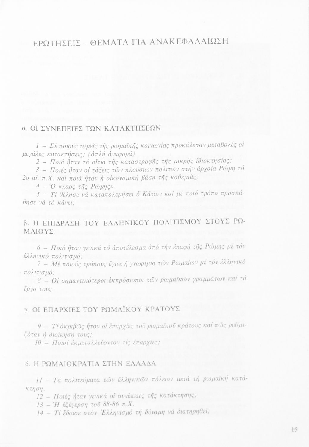 Ιστορία Ρωμαϊκή και Βυζαντινή (146 π. Χ. - 1453 μ. Χ.) Β ́ Γυμνασίου