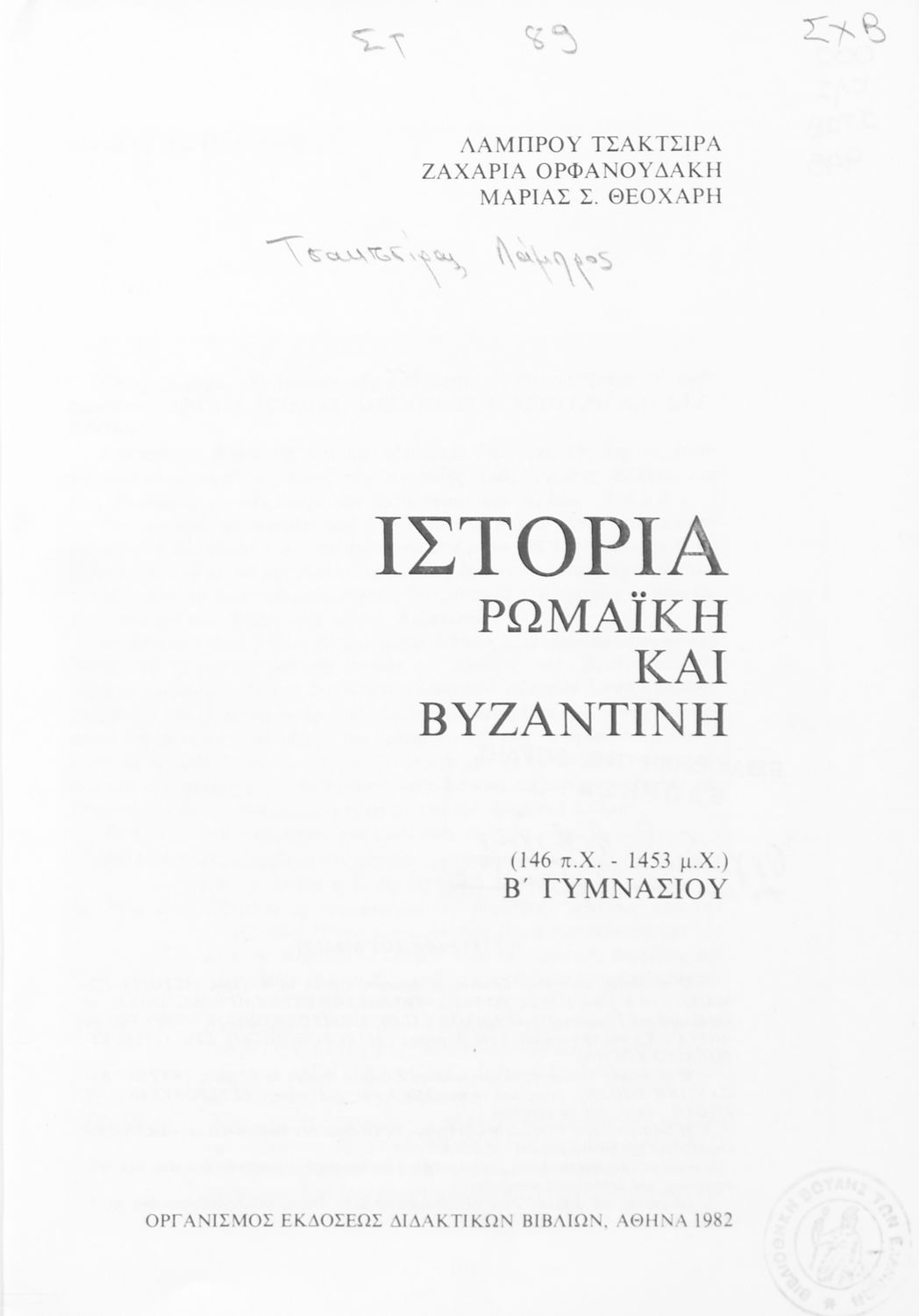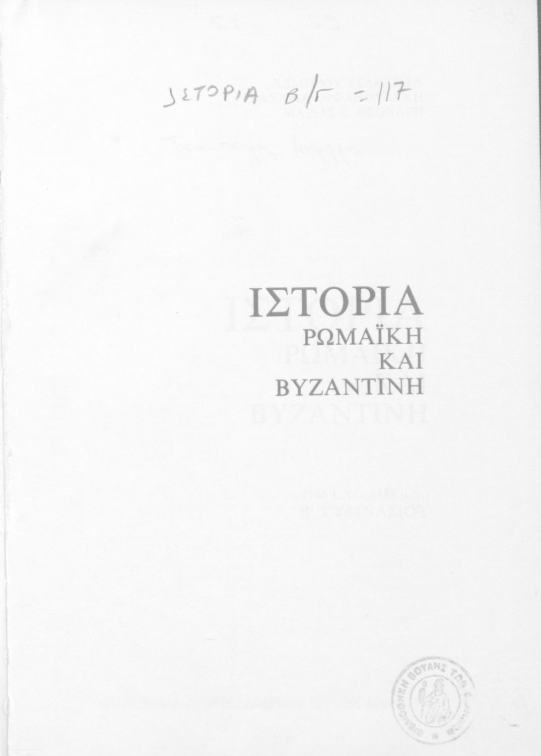 Τίτλος: Ιστορία Ρωμαϊκή και Βυζαντινή (146 π. Χ. - 1453 μ. Χ.) Β ́ Γυμνασίου