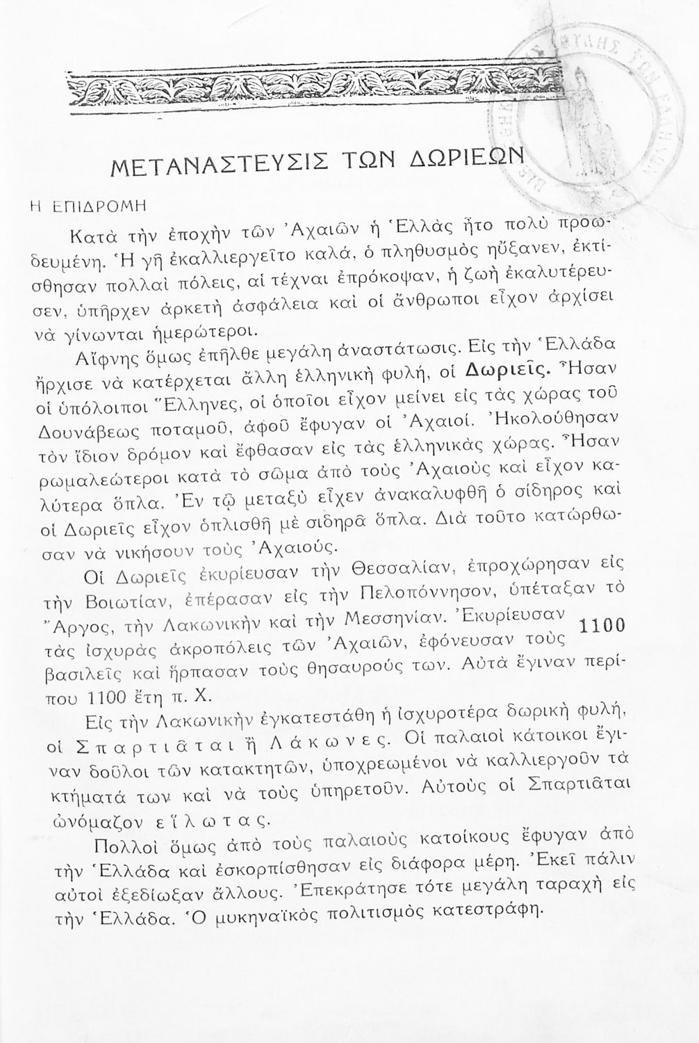 Ιστορία Αρχαίας Ελλάδος από των αρχαιοτάτων χρόνων μέχρι των Μηδικών δια την Α ́ τάξιν των Γυμνασίων