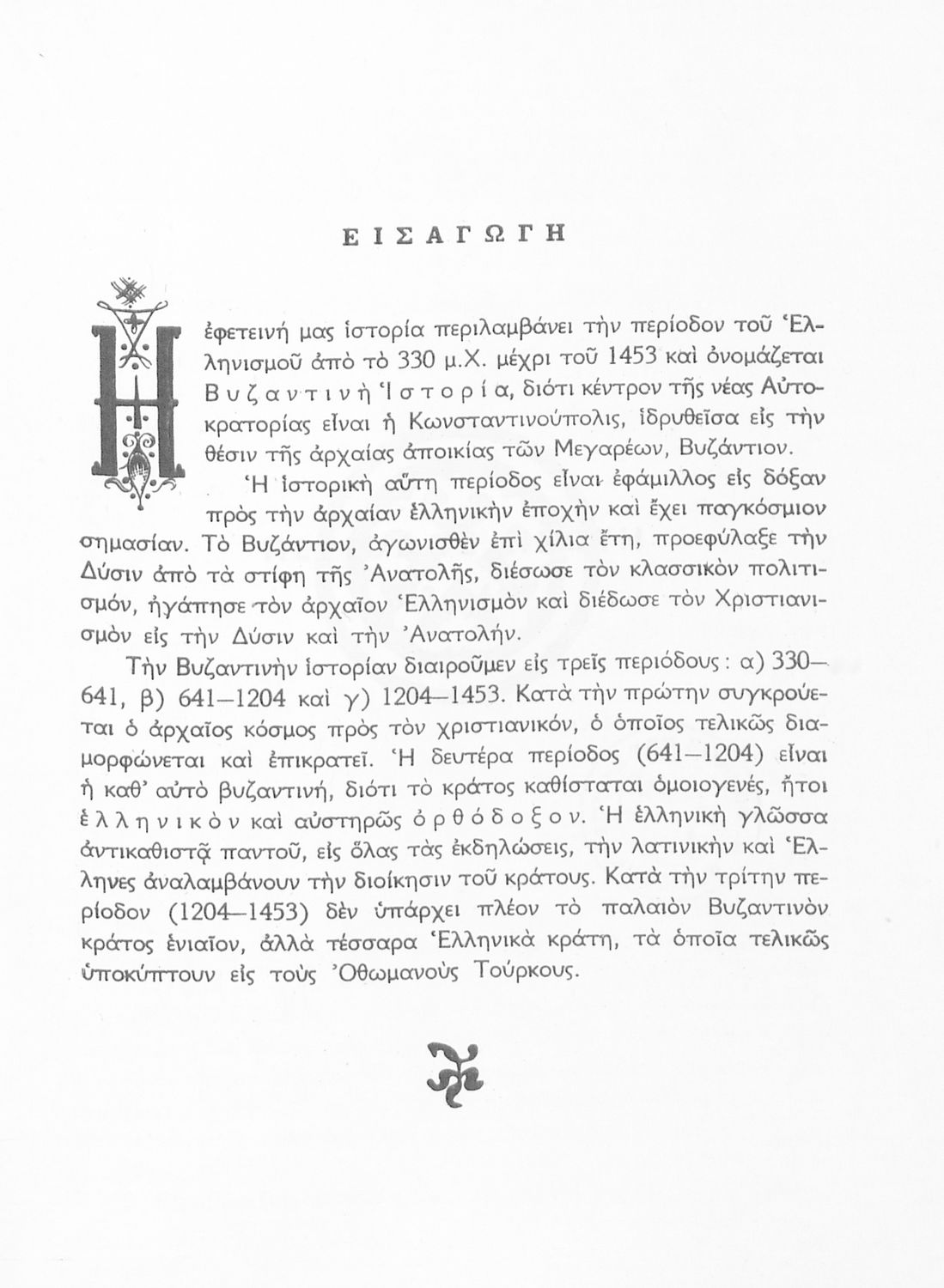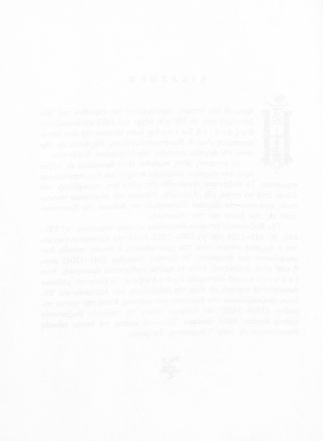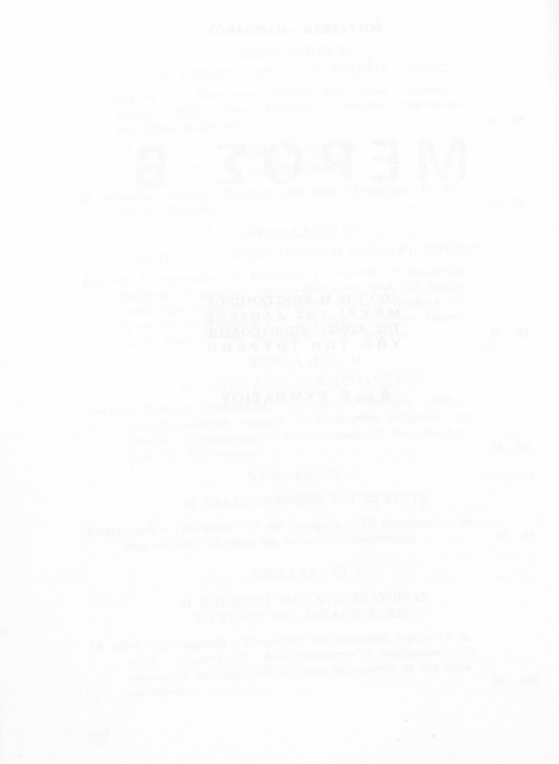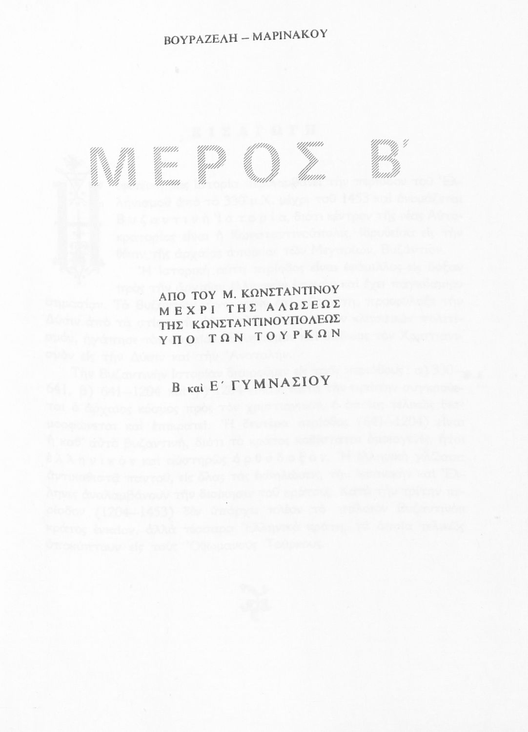 Σχολικό εγχειρίδιο Ιστορίας Β΄ και Ε΄ Γυμνασίου που καλύπτει την περίοδο από την άνοδο του Μ. Κωνσταντίνου στο θρόνο μέχρι και την άλωση της Κωνσταντινούπολης. Παρουσιάζει και τα πνευματικά και καλλιτεχνικά ρεύματα της περιόδου. Φέρει το σύμβολο της δικτατορίας.