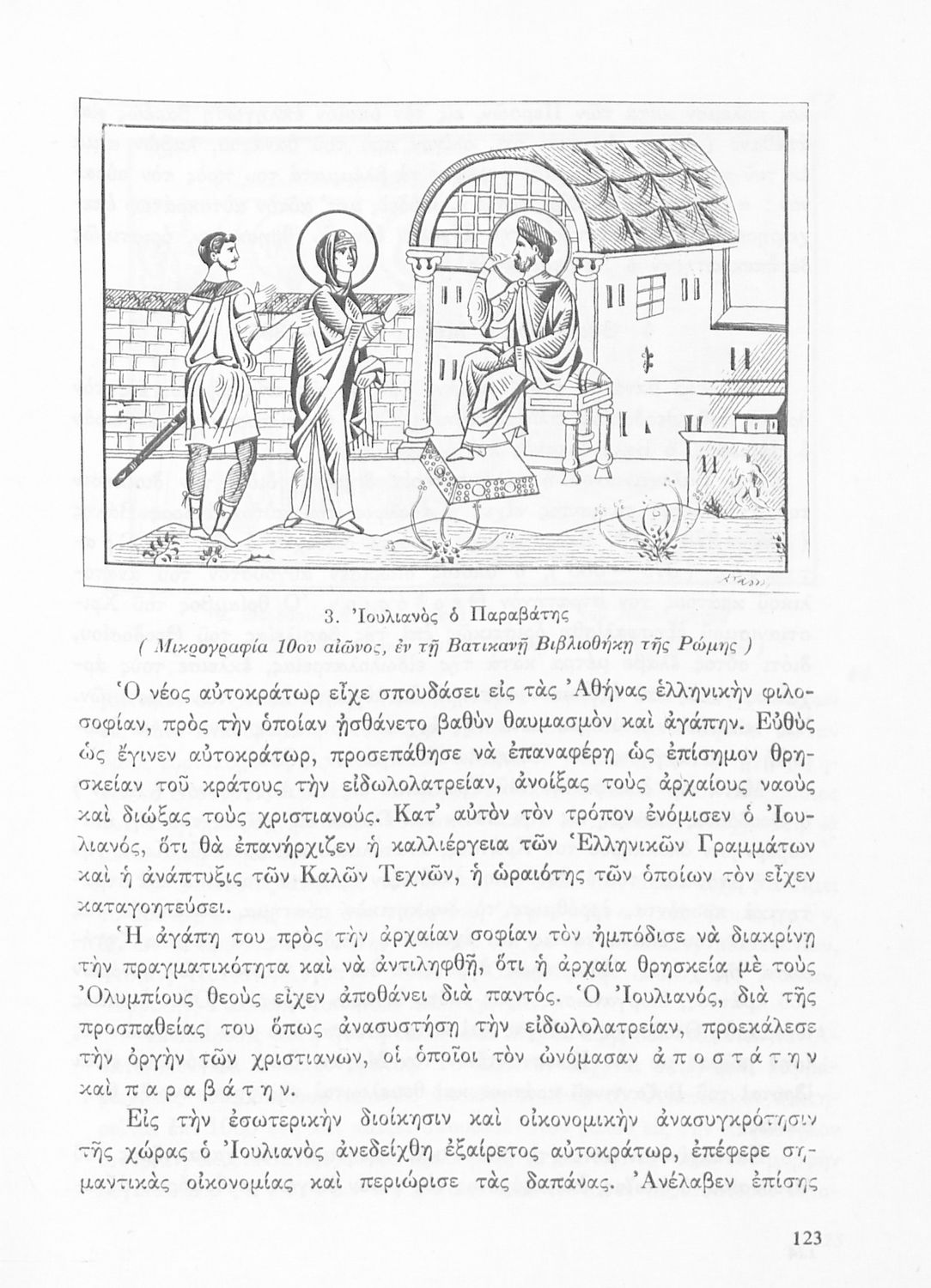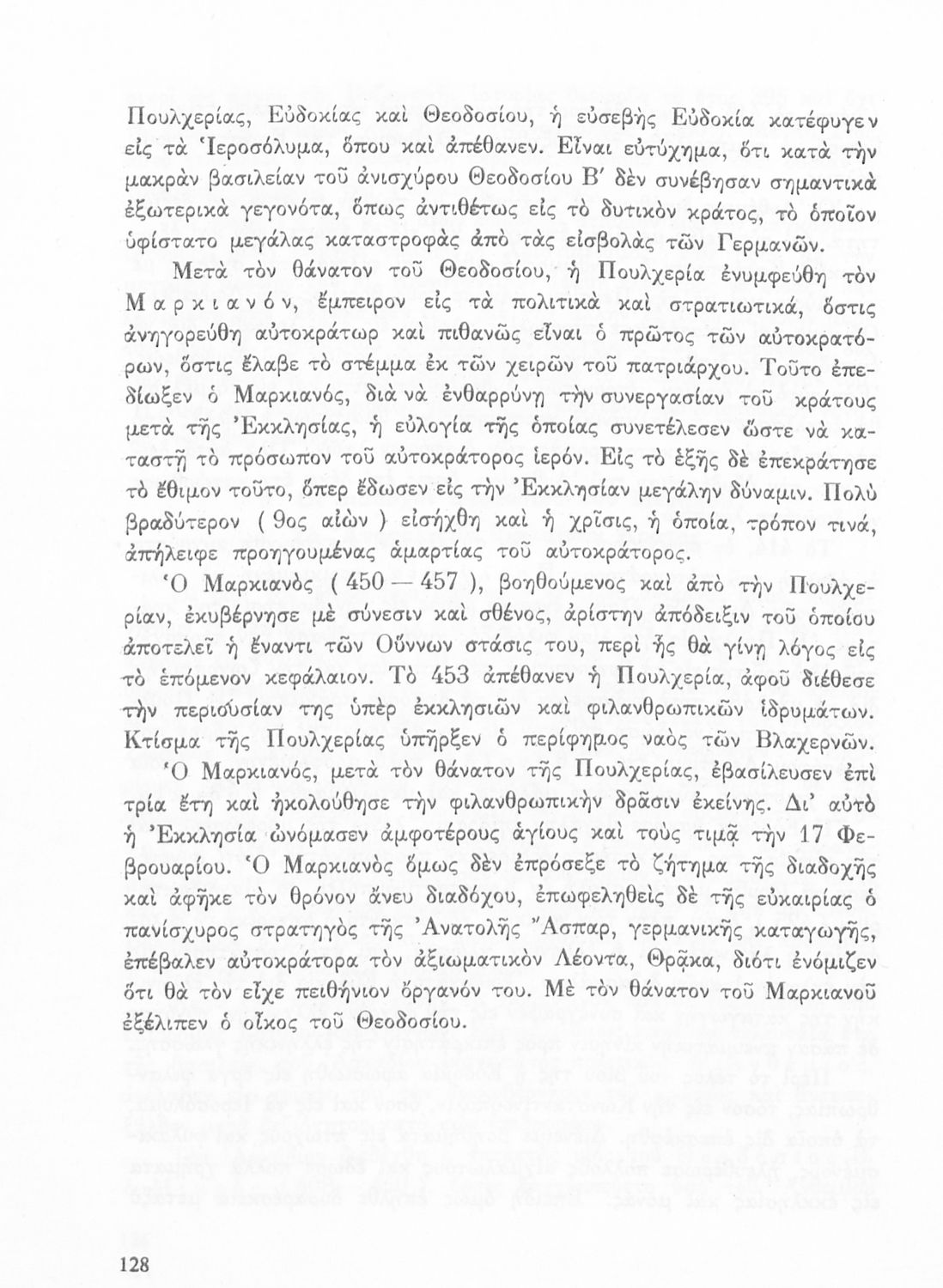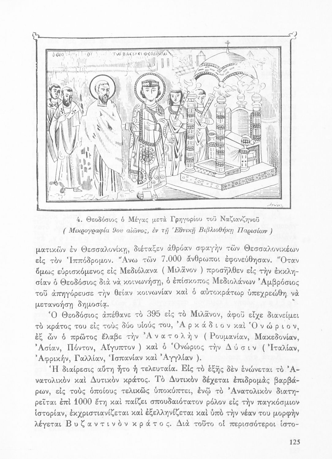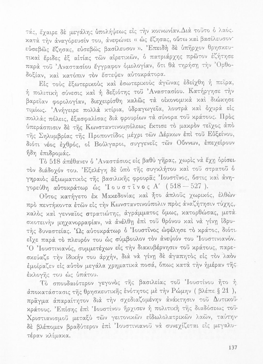 Σχολικό εγχειρίδιο Ιστορίας Β΄ και Ε΄ Γυμνασίου που καλύπτει την περίοδο από την άνοδο του Μ. Κωνσταντίνου στο θρόνο μέχρι και την άλωση της Κωνσταντινούπολης. Παρουσιάζει και τα πνευματικά και καλλιτεχνικά ρεύματα της περιόδου. Φέρει το σύμβολο της δικτατορίας.