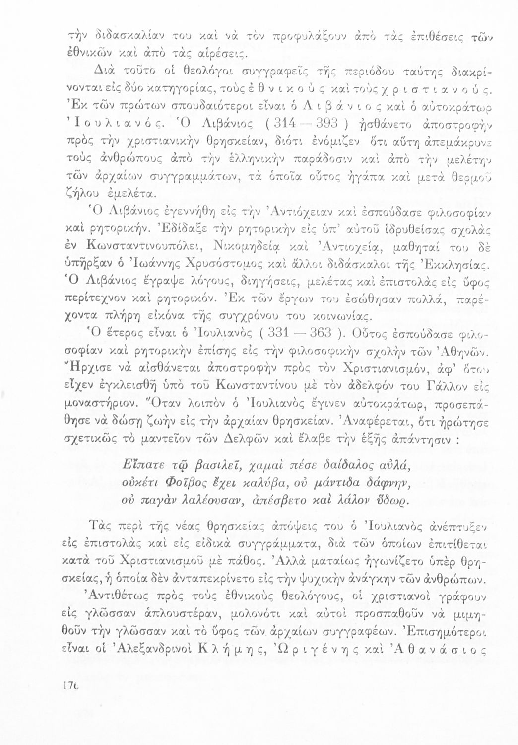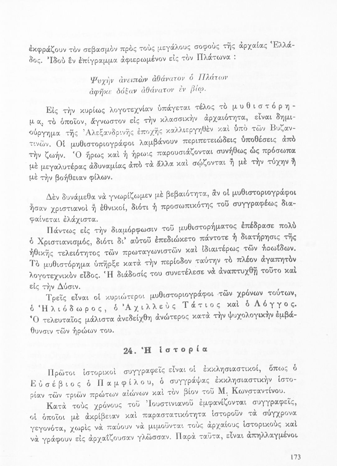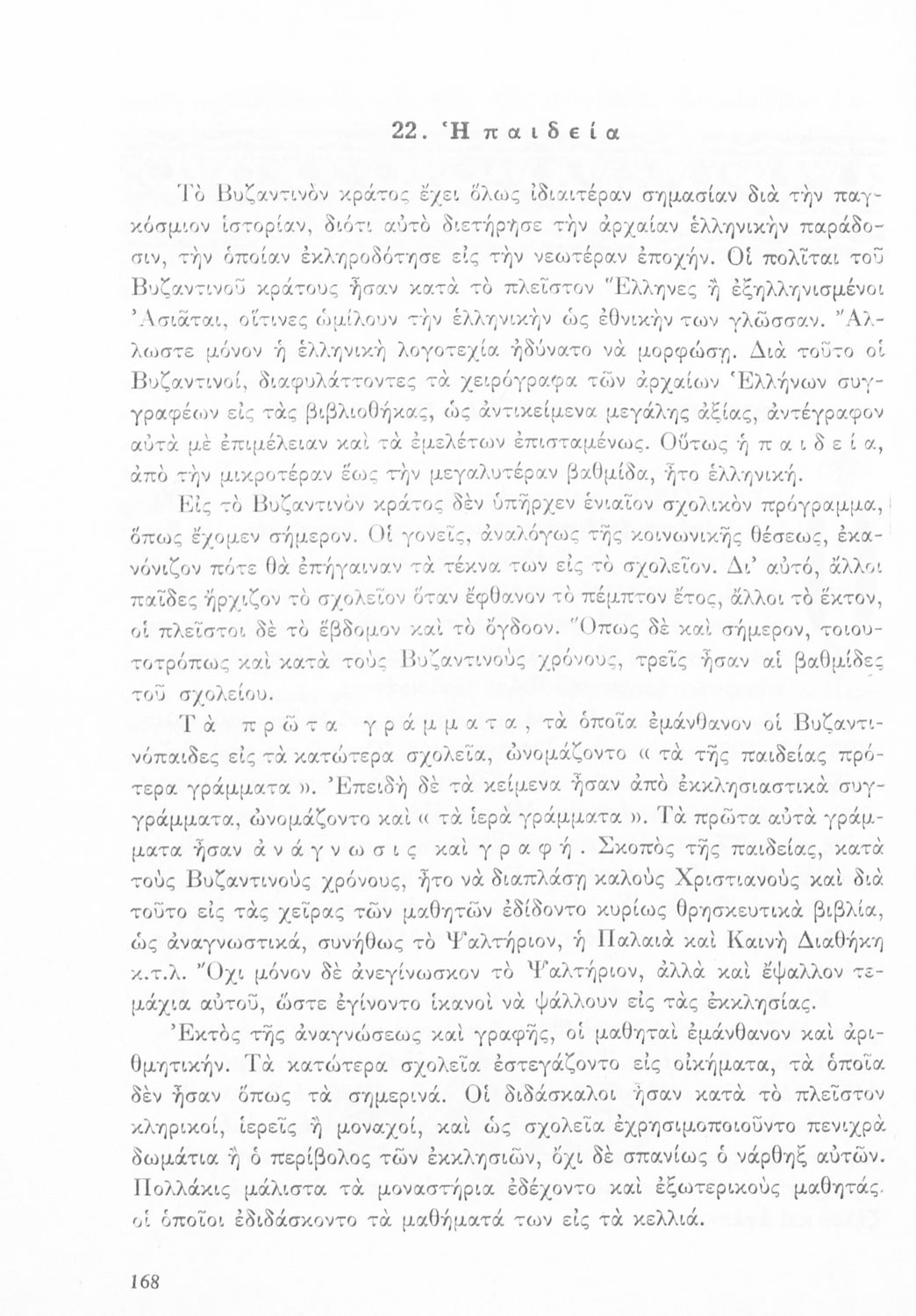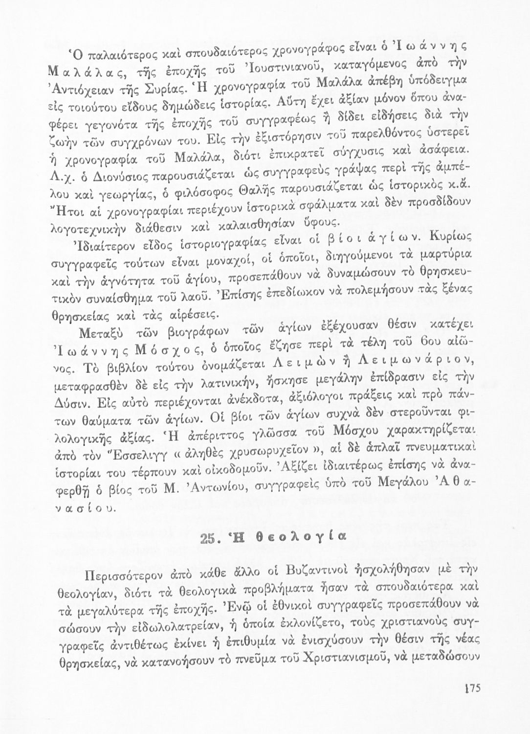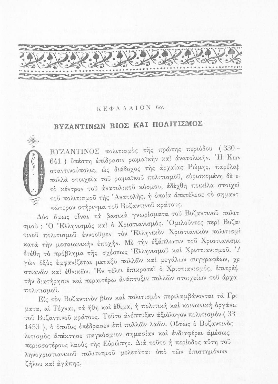 Σχολικό εγχειρίδιο Ιστορίας Β΄ και Ε΄ Γυμνασίου που καλύπτει την περίοδο από την άνοδο του Μ. Κωνσταντίνου στο θρόνο μέχρι και την άλωση της Κωνσταντινούπολης. Παρουσιάζει και τα πνευματικά και καλλιτεχνικά ρεύματα της περιόδου. Φέρει το σύμβολο της δικτατορίας.