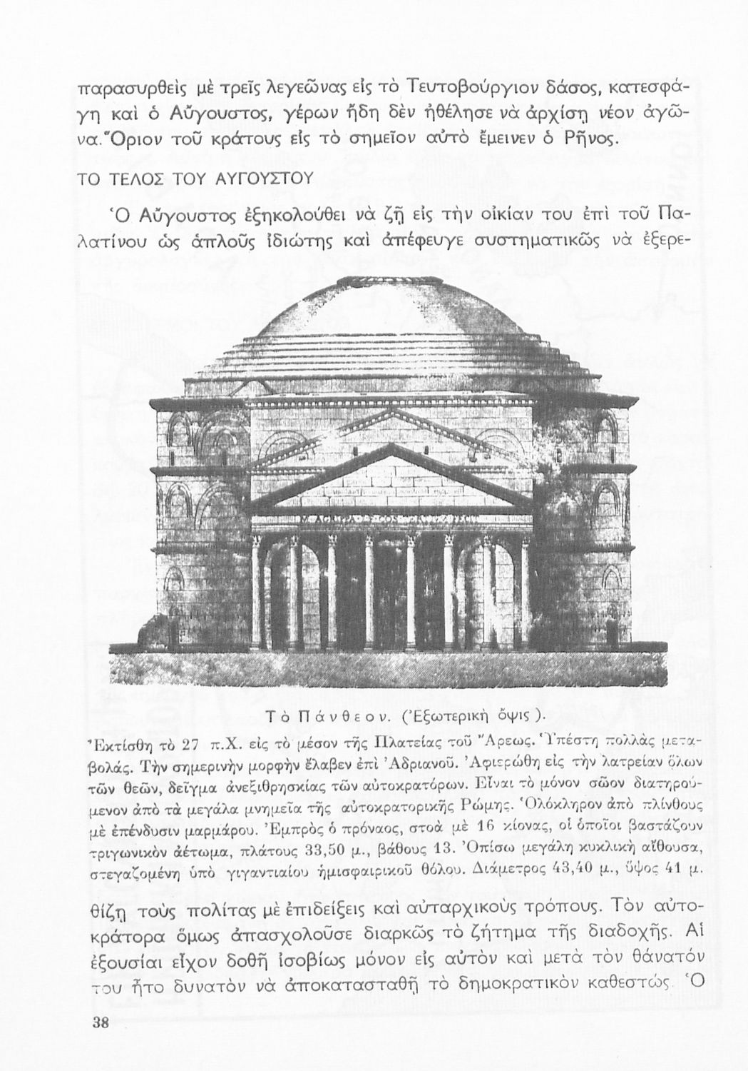 Σχολικό εγχειρίδιο Ιστορίας Β΄ και Ε΄ Γυμνασίου που καλύπτει την περίοδο από την άνοδο του Μ. Κωνσταντίνου στο θρόνο μέχρι και την άλωση της Κωνσταντινούπολης. Παρουσιάζει και τα πνευματικά και καλλιτεχνικά ρεύματα της περιόδου. Φέρει το σύμβολο της δικτατορίας.