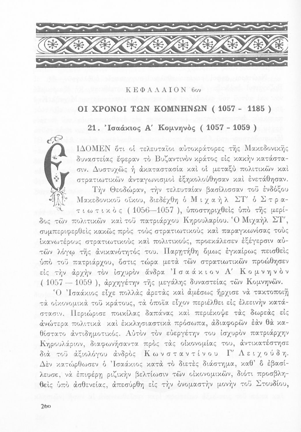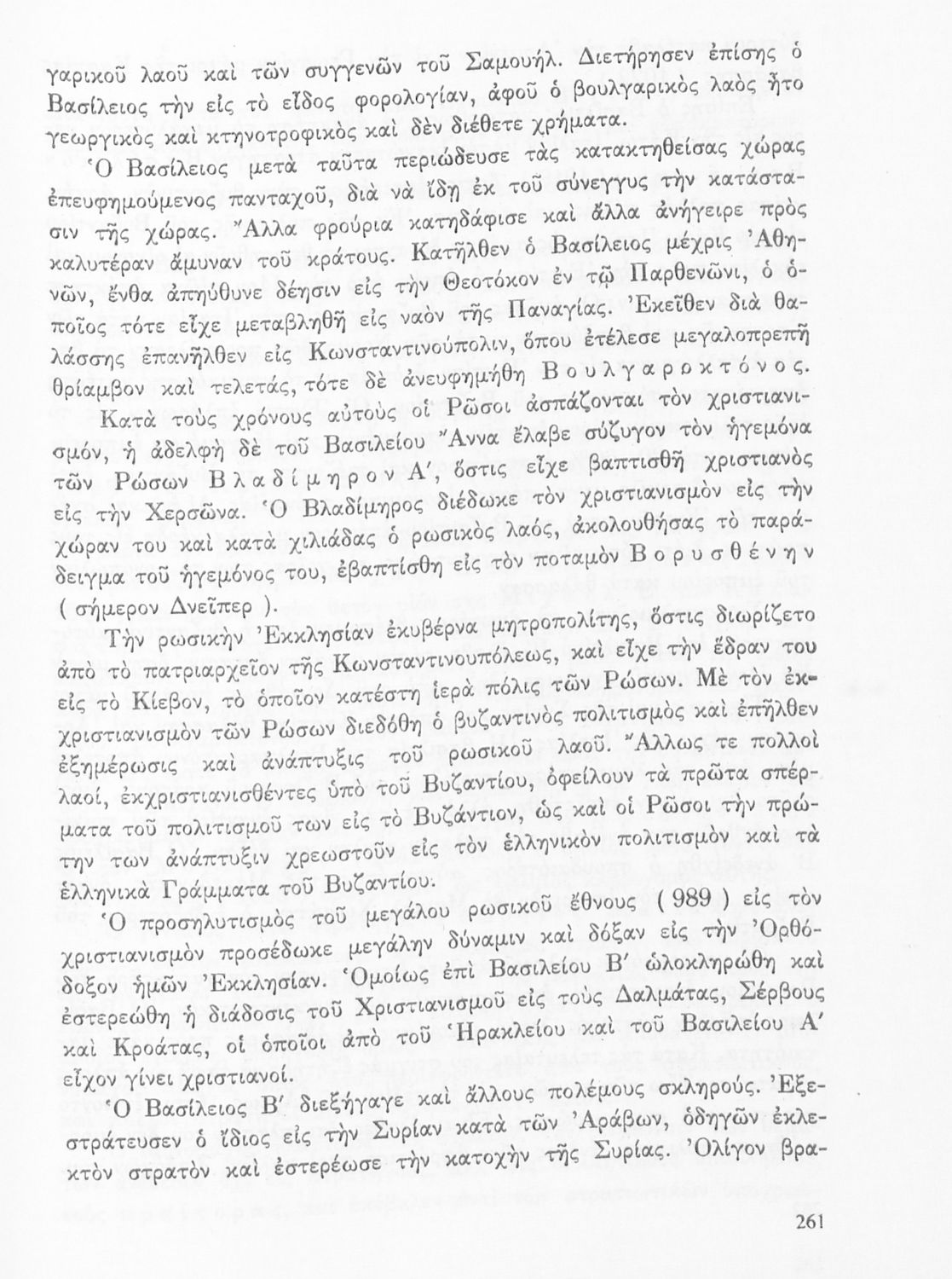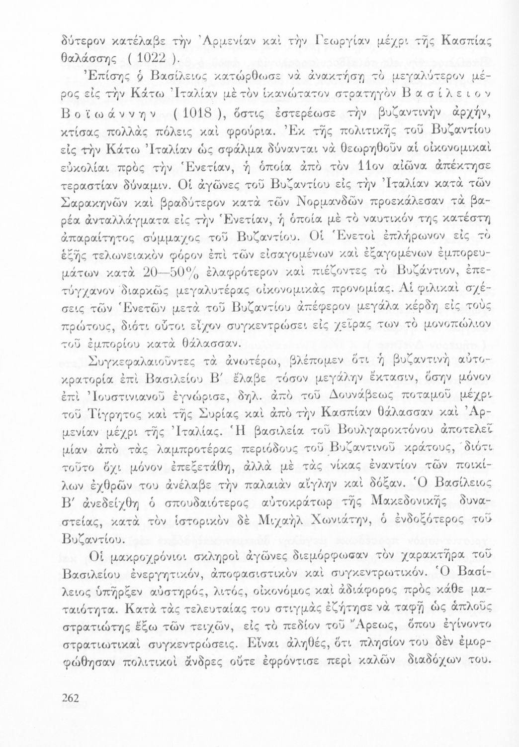 Σχολικό εγχειρίδιο Ιστορίας Β΄ και Ε΄ Γυμνασίου που καλύπτει την περίοδο από την άνοδο του Μ. Κωνσταντίνου στο θρόνο μέχρι και την άλωση της Κωνσταντινούπολης. Παρουσιάζει και τα πνευματικά και καλλιτεχνικά ρεύματα της περιόδου. Φέρει το σύμβολο της δικτατορίας.