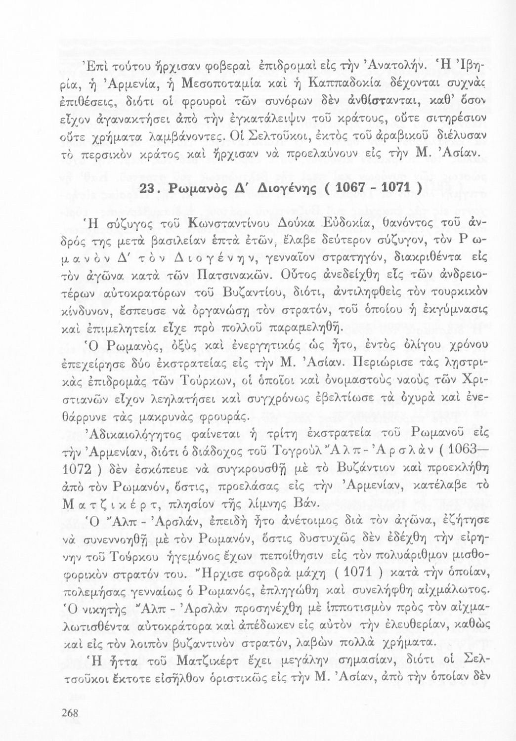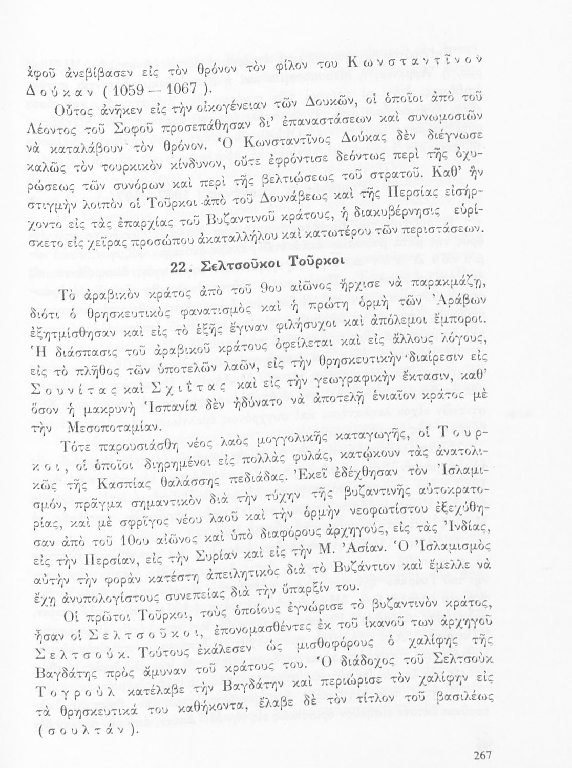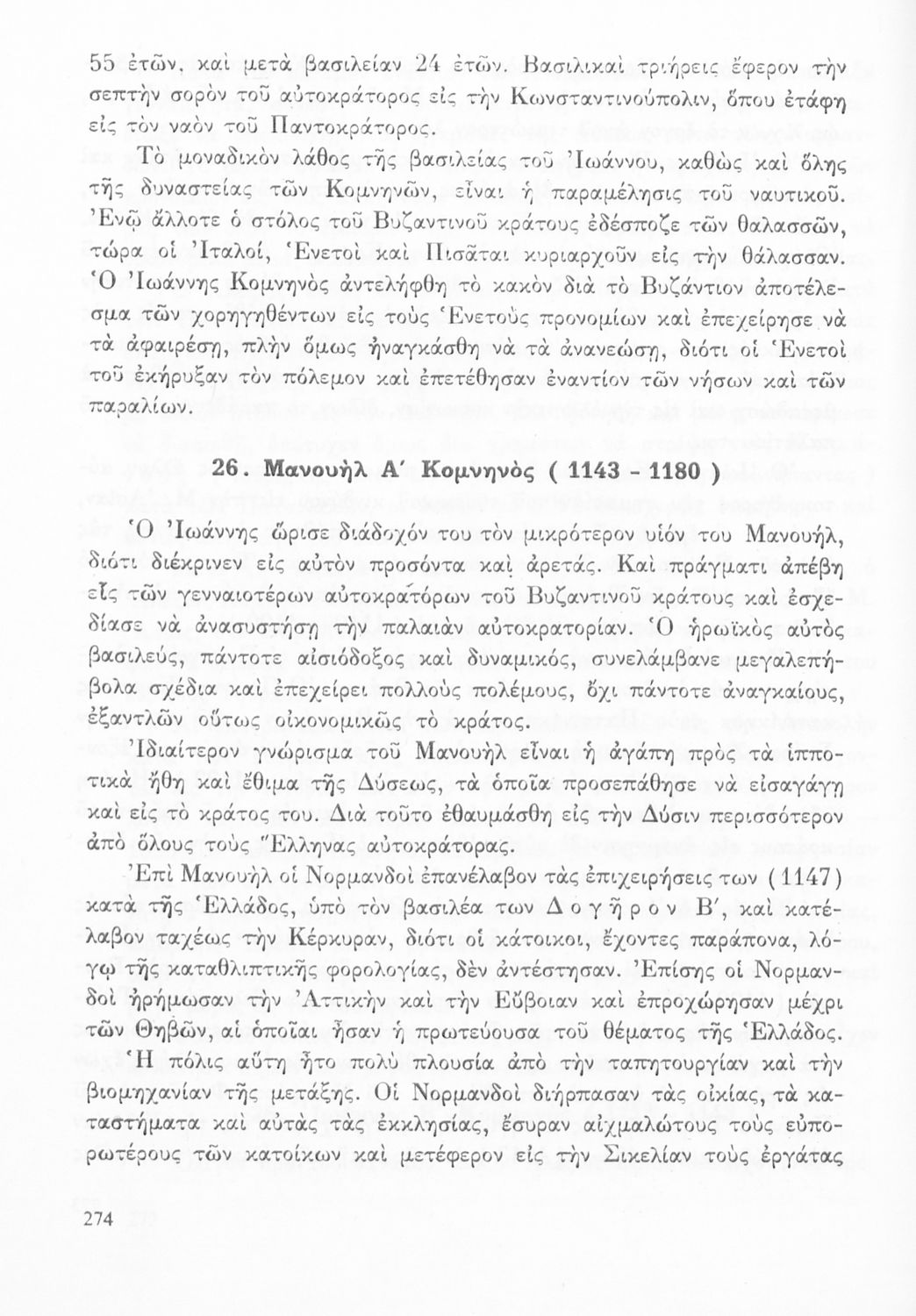 Σχολικό εγχειρίδιο Ιστορίας Β΄ και Ε΄ Γυμνασίου που καλύπτει την περίοδο από την άνοδο του Μ. Κωνσταντίνου στο θρόνο μέχρι και την άλωση της Κωνσταντινούπολης. Παρουσιάζει και τα πνευματικά και καλλιτεχνικά ρεύματα της περιόδου. Φέρει το σύμβολο της δικτατορίας.