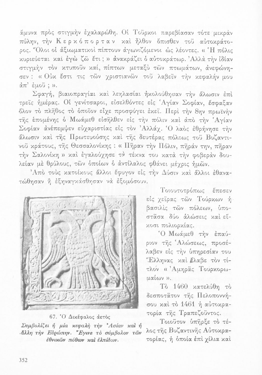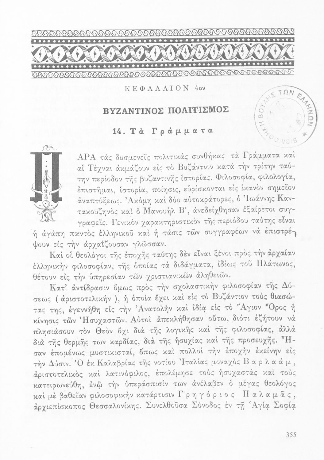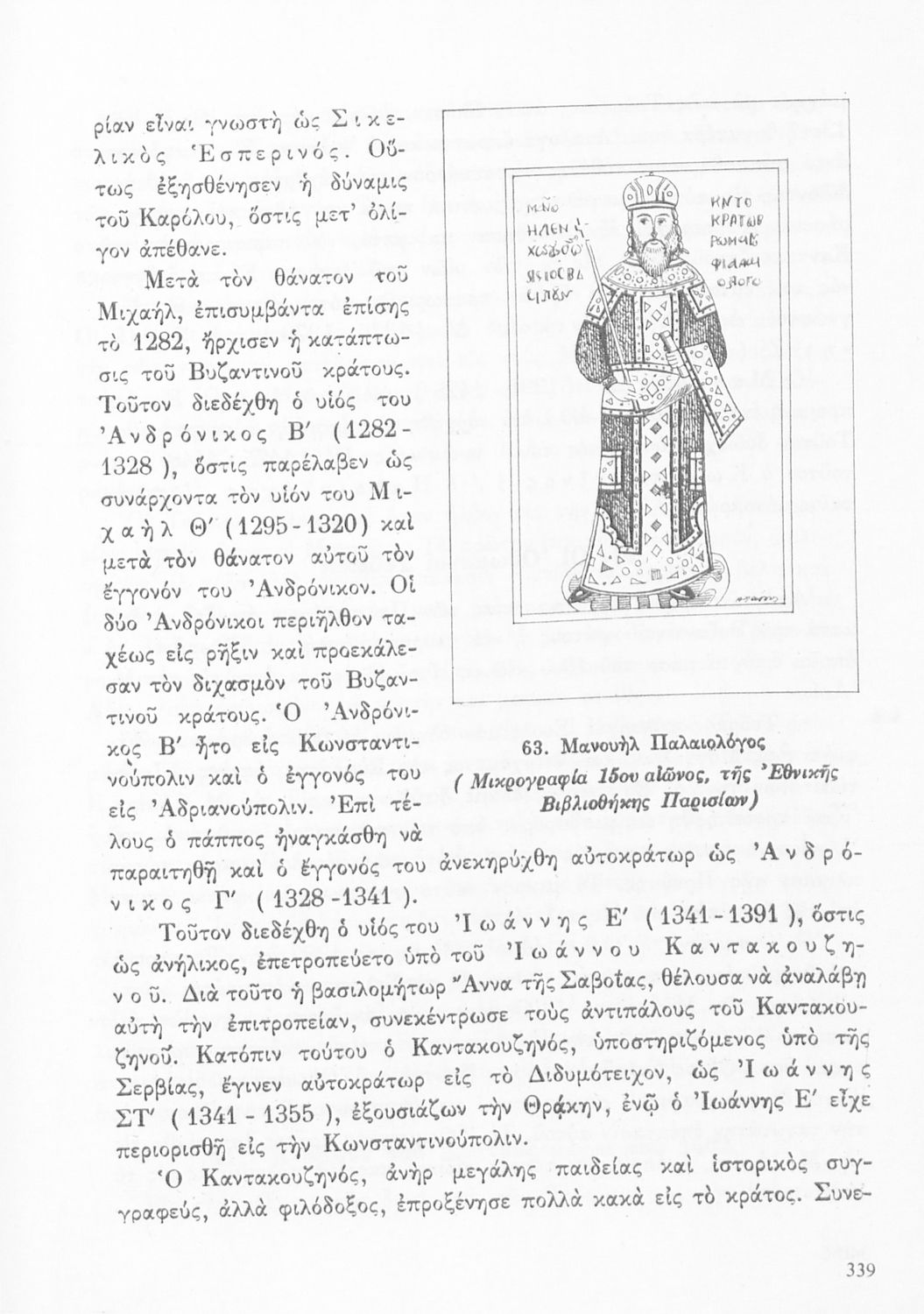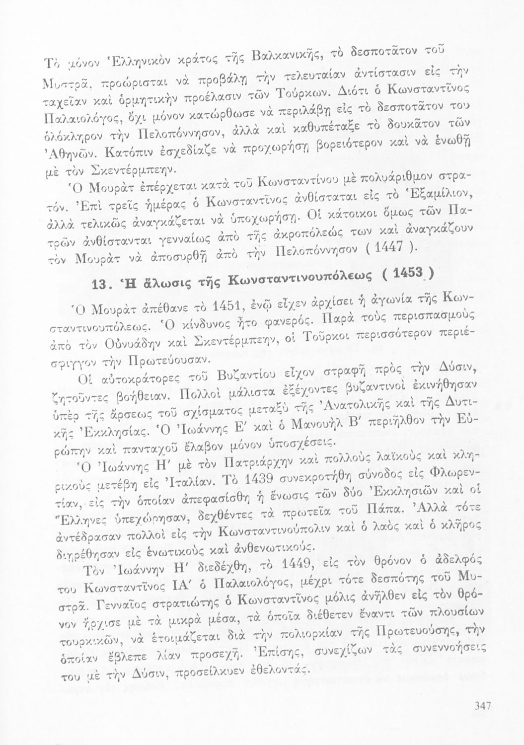 Σχολικό εγχειρίδιο Ιστορίας Β΄ και Ε΄ Γυμνασίου που καλύπτει την περίοδο από την άνοδο του Μ. Κωνσταντίνου στο θρόνο μέχρι και την άλωση της Κωνσταντινούπολης. Παρουσιάζει και τα πνευματικά και καλλιτεχνικά ρεύματα της περιόδου. Φέρει το σύμβολο της δικτατορίας.