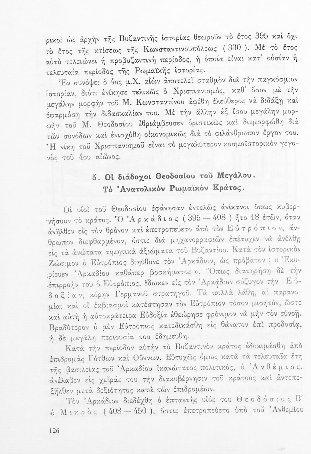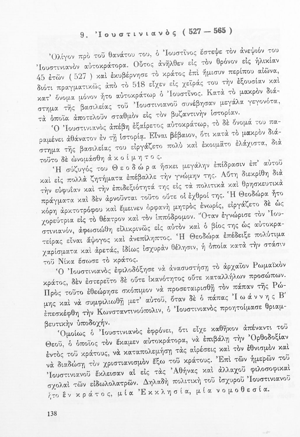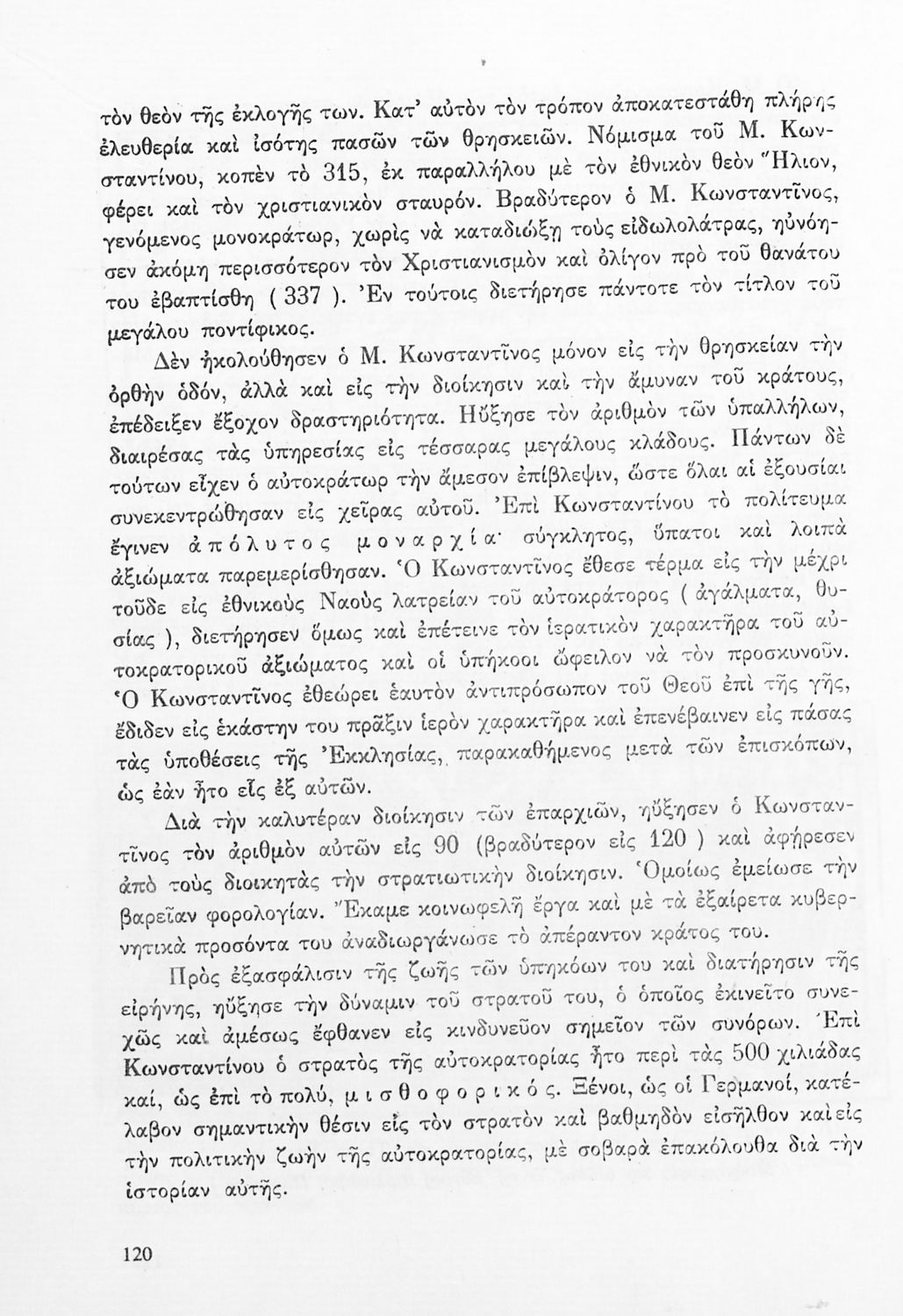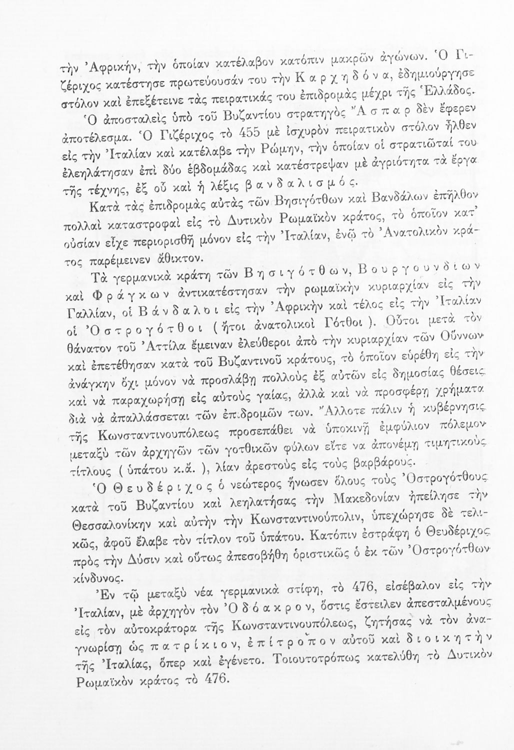 Σχολικό εγχειρίδιο Ιστορίας Β΄ και Ε΄ Γυμνασίου που καλύπτει την περίοδο από την άνοδο του Μ. Κωνσταντίνου στο θρόνο μέχρι και την άλωση της Κωνσταντινούπολης. Παρουσιάζει και τα πνευματικά και καλλιτεχνικά ρεύματα της περιόδου. Φέρει το σύμβολο της δικτατορίας.