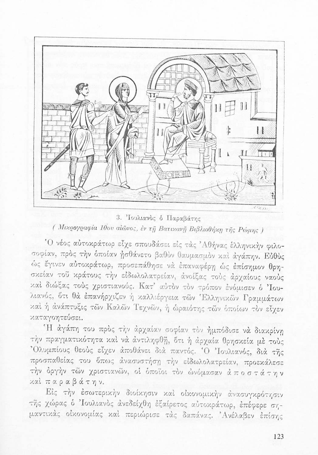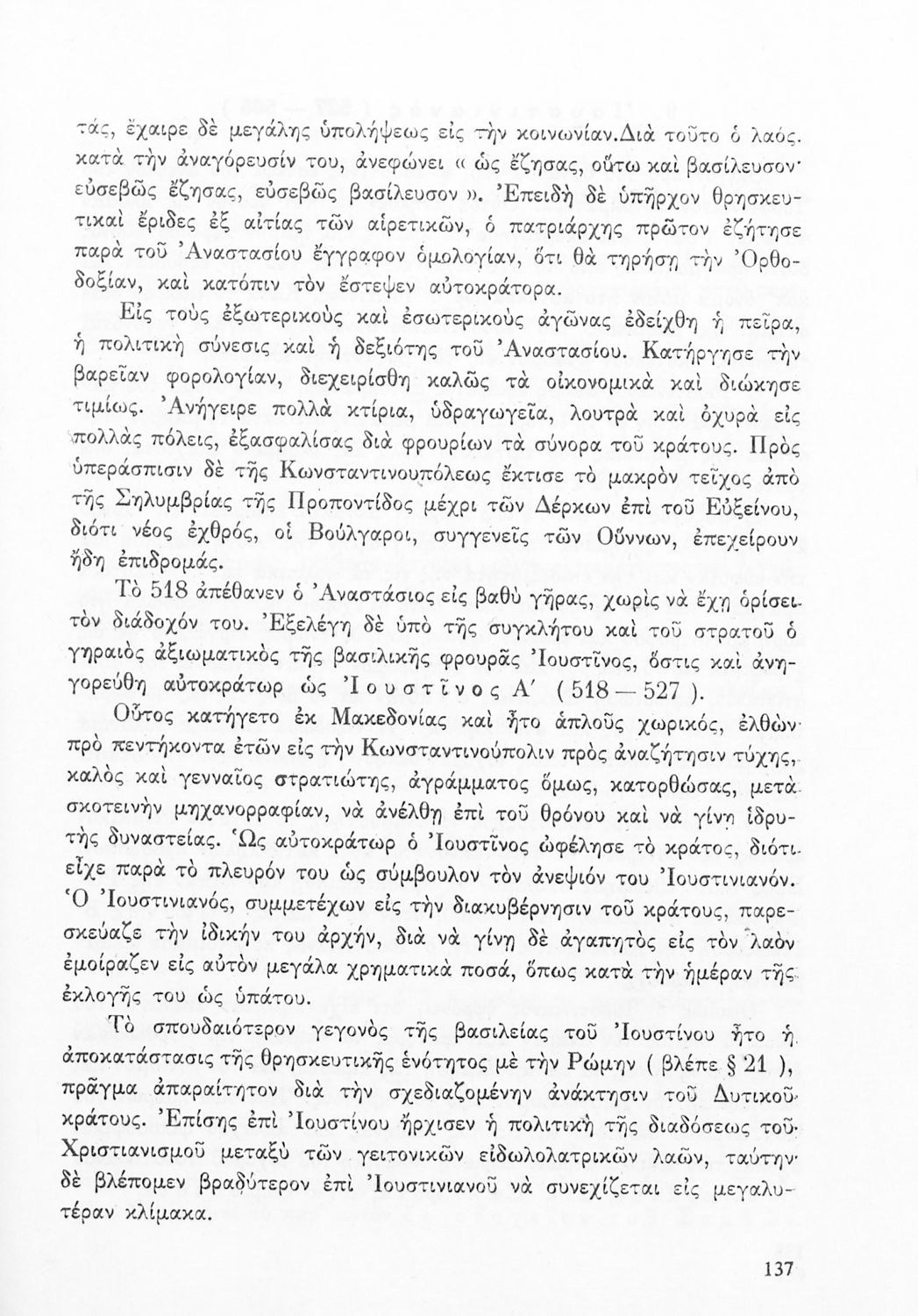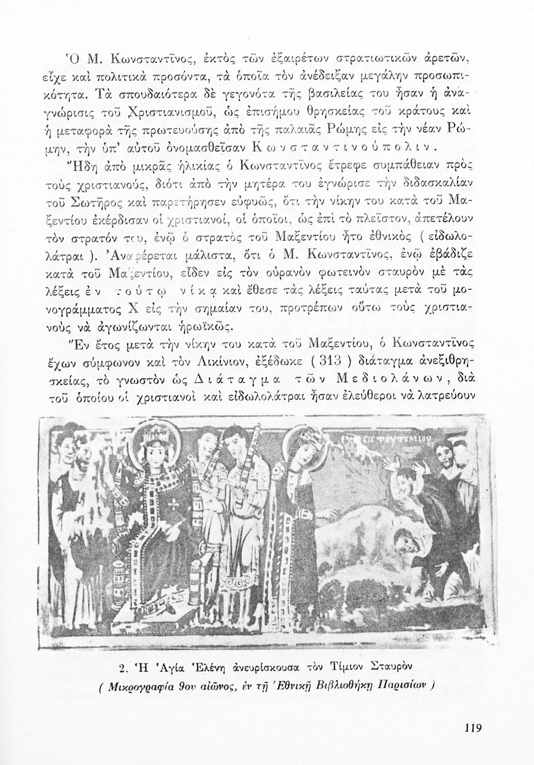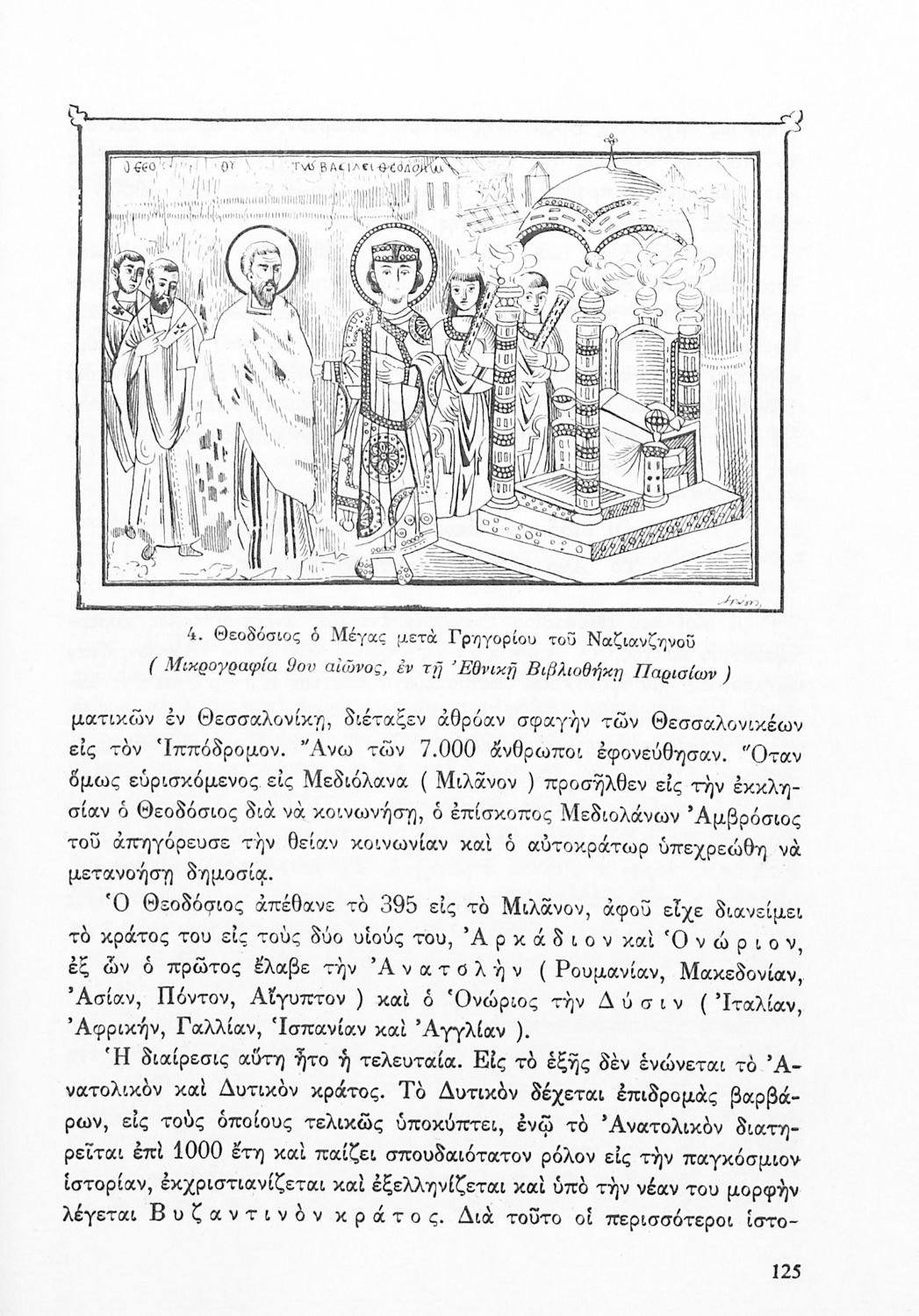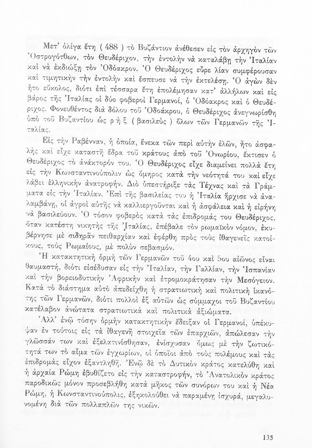 Σχολικό εγχειρίδιο Ιστορίας Β΄ και Ε΄ Γυμνασίου που καλύπτει την περίοδο από την άνοδο του Μ. Κωνσταντίνου στο θρόνο μέχρι και την άλωση της Κωνσταντινούπολης. Παρουσιάζει και τα πνευματικά και καλλιτεχνικά ρεύματα της περιόδου. Φέρει το σύμβολο της δικτατορίας.