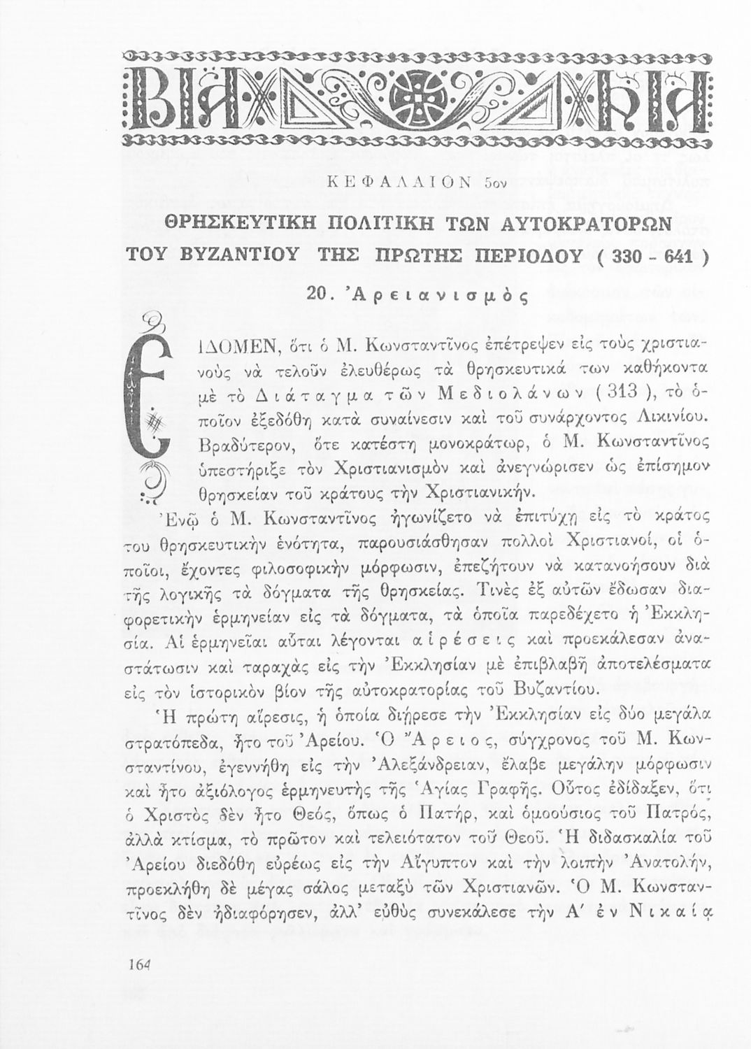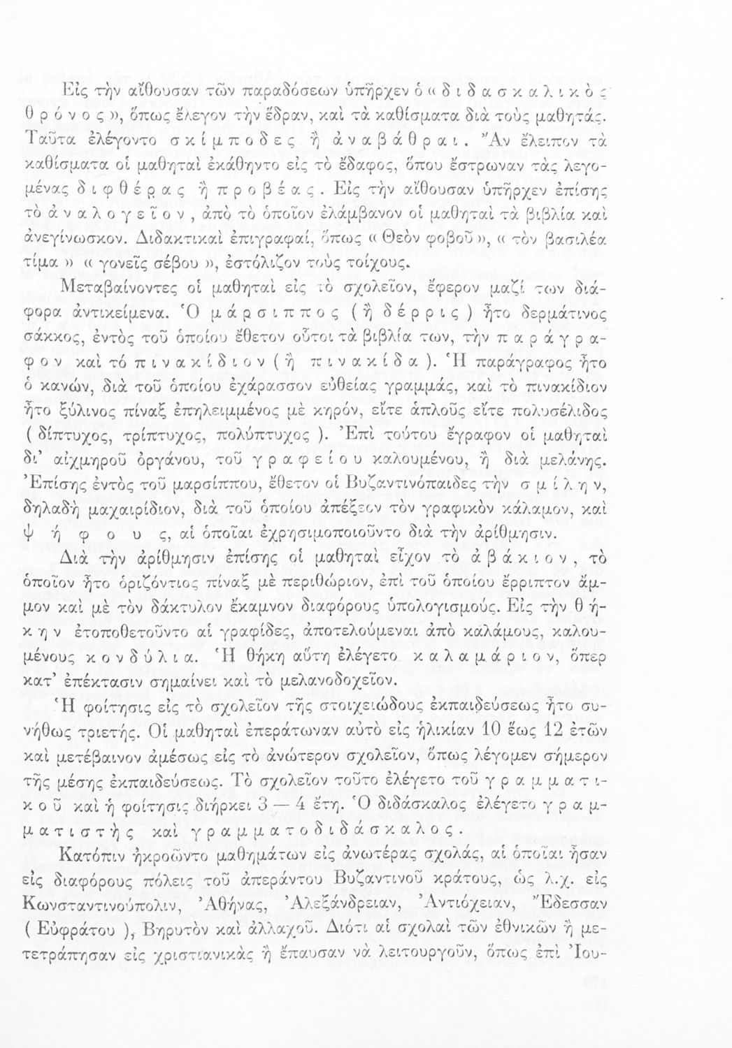 520 ## _aΣχολικό εγχειρίδιο Ιστορίας Β΄ και Ε΄ Γυμνασίου που καλύπτει την περίοδο από την άνοδο του Μ. Κωνσταντίνου στο θρόνο μέχρι και την άλωση της Κωνσταντινούπολης. Παρουσιάζει και τα πνευματικά και καλλιτεχνικά ρεύματα της περιόδου. Φέρει το σύμβολο της δικτατορίας.