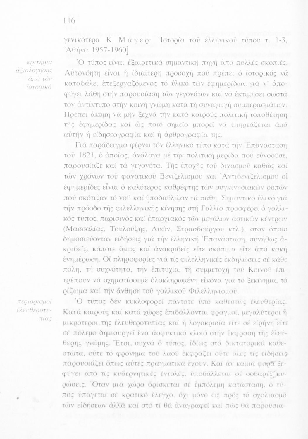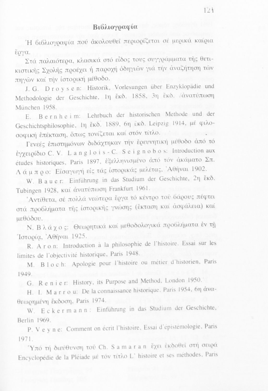 Σχολικό εγχειρίδιο Ιστορίας Γ΄ Λυκείου που περιλαμβάνει μια εισαγωγή στις ιστορικές σπουδές και μεθοδολογικά ζητήματα έρευνας της ιστορίας και σχολιάζει ζητήματα ιστορικών πηγών.