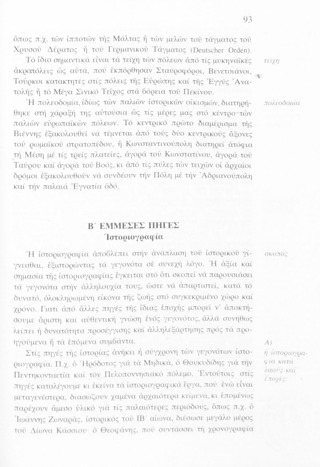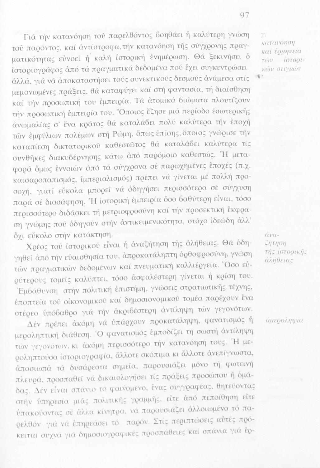 Σχολικό εγχειρίδιο Ιστορίας Γ΄ Λυκείου που περιλαμβάνει μια εισαγωγή στις ιστορικές σπουδές και μεθοδολογικά ζητήματα έρευνας της ιστορίας και σχολιάζει ζητήματα ιστορικών πηγών.