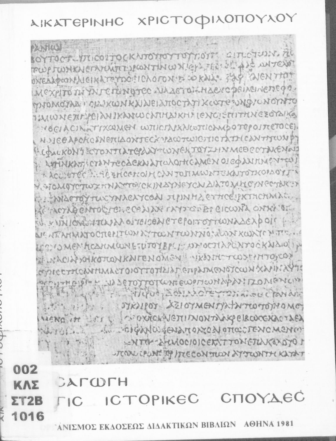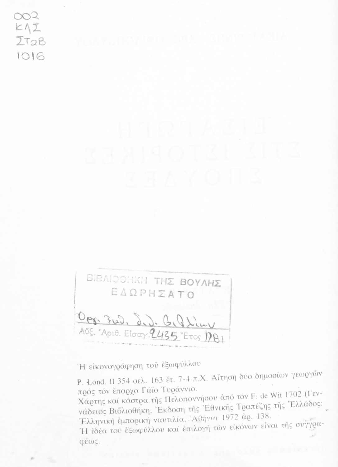 Εντοπισμός πρωτοτύπου: Βιβλιοθήκη της Βουλής των Ελλήνων Κωδικός βιβλιοθήκης: 20557114 |