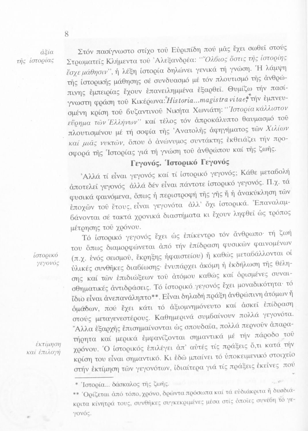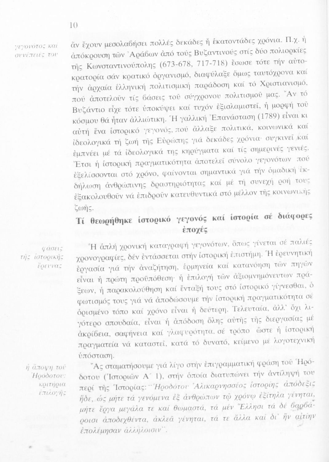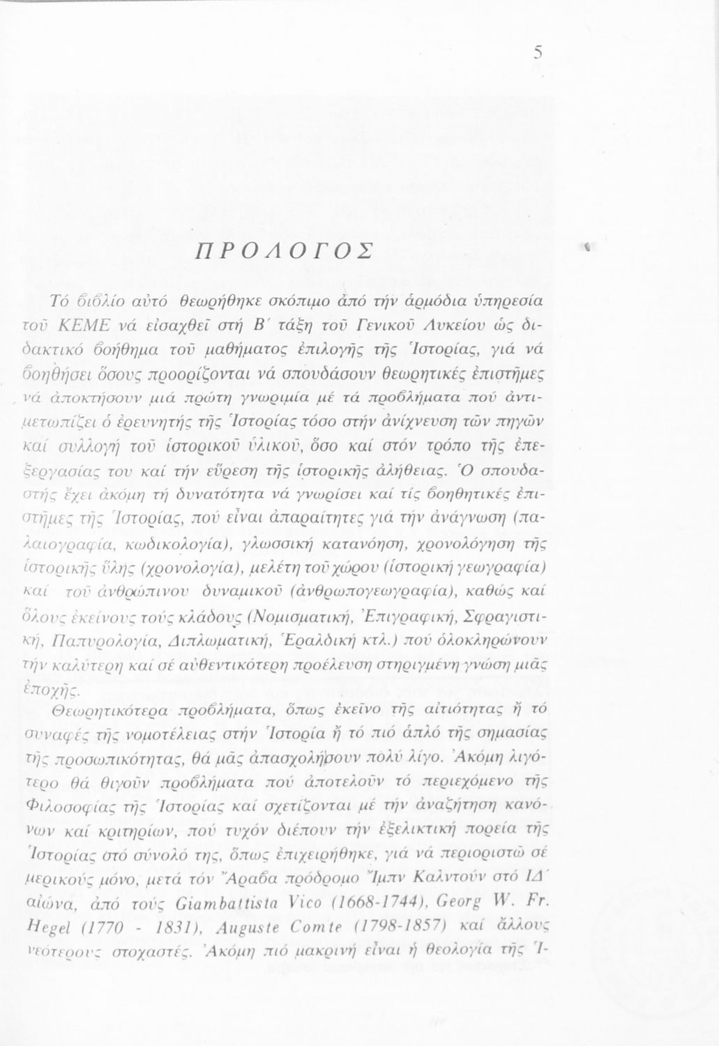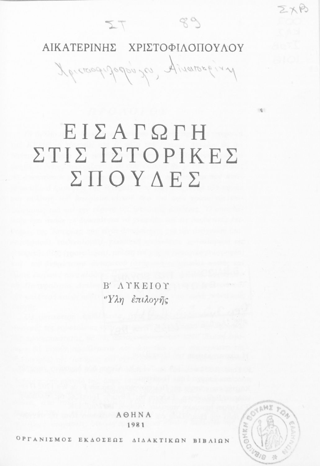 Σχολικό εγχειρίδιο Ιστορίας Γ΄ Λυκείου που περιλαμβάνει μια εισαγωγή στις ιστορικές σπουδές και μεθοδολογικά ζητήματα έρευνας της ιστορίας και σχολιάζει ζητήματα ιστορικών πηγών.