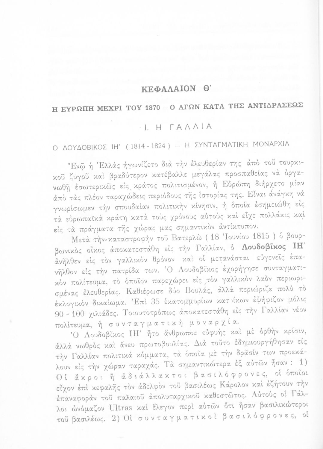 Σχολικό εγχειρίδιο Ιστορίας που καλύπτει την περίοδο από τη Συνθήκη της Βιέννης και την εδραίωση των εθνικών κρατών μέχρι τον Α΄ Παγκόσμιο Πόλεμο και τις εξελίξεις στην Ευρώπη. Αναφέρεται και στα επιτεύγματα του ευρωπαϊκού πολιτισμού, τις τέχνες και τα γράμματα.