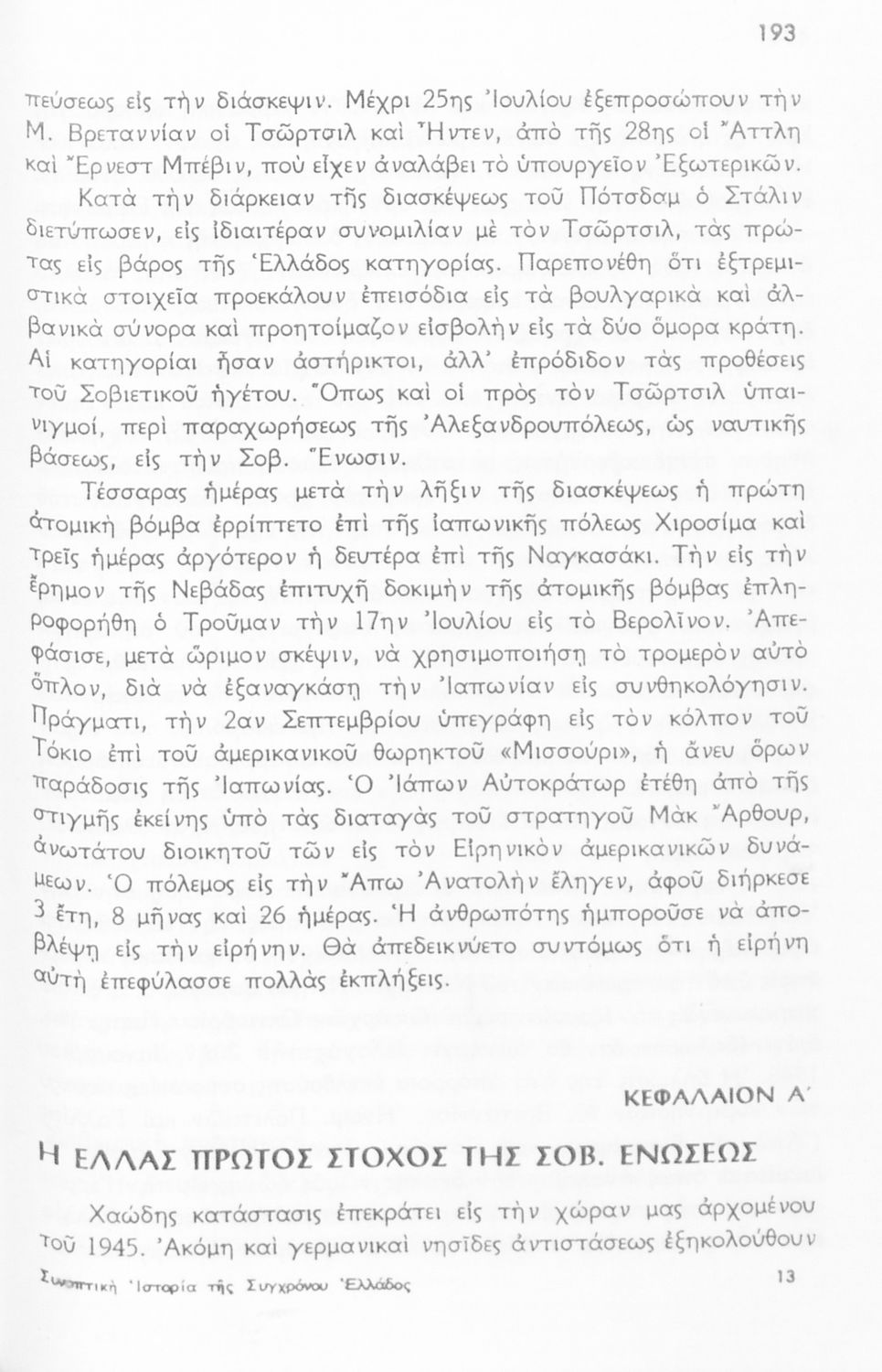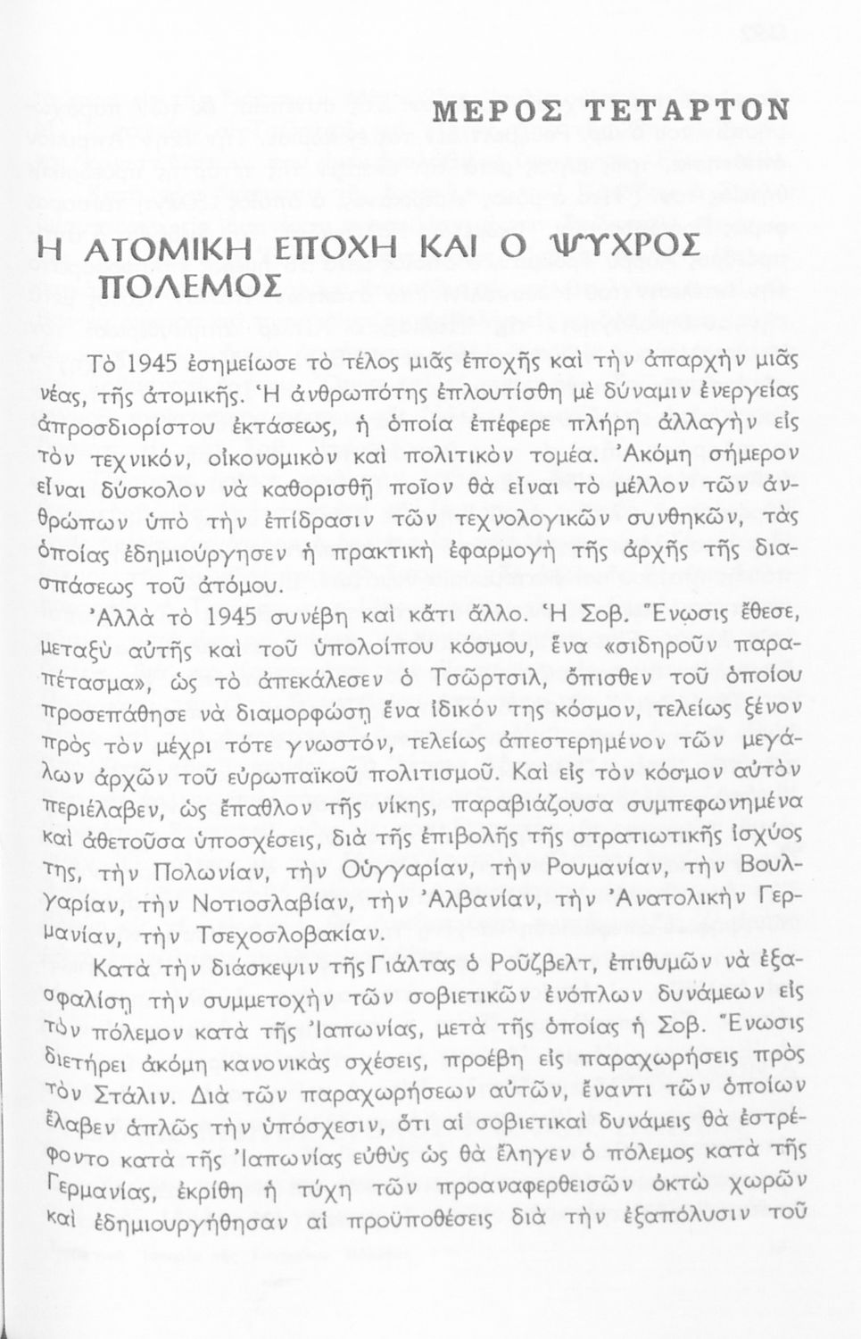 Σχολικό εγχειρίδιο Ιστορίας για τους μαθητές της ΣΤ΄ Γυμνασίου. Το βιβλίο περιγράφει το ρόλο της Ελλάδας κατά τη διάρκεια του Πρώτου Παγκοσμίου Πολέμου, κατά τη διάρκεια του Μεσοπολέμου, τη διάρκεια του Δευτέρου Παγκοσμίου Πολέμου με αναφορές στην Ιταλική εισβολή, την κατάληψη της Ελλάδας από τα Γερμανικά στρατεύματα και την έναρξη του εμφυλίου πολέμου. Τέλος, το βιβλίο αναφέρεται σ τις πολιτικές εξελίξεις της Ελλάδας κατά τη διάρκεια του Ψυχρού πολέμου με το Κυπριακό και την άνοδο της Χούντας.