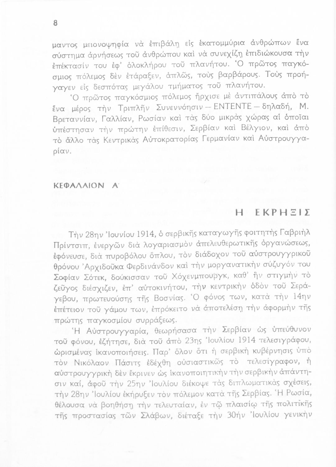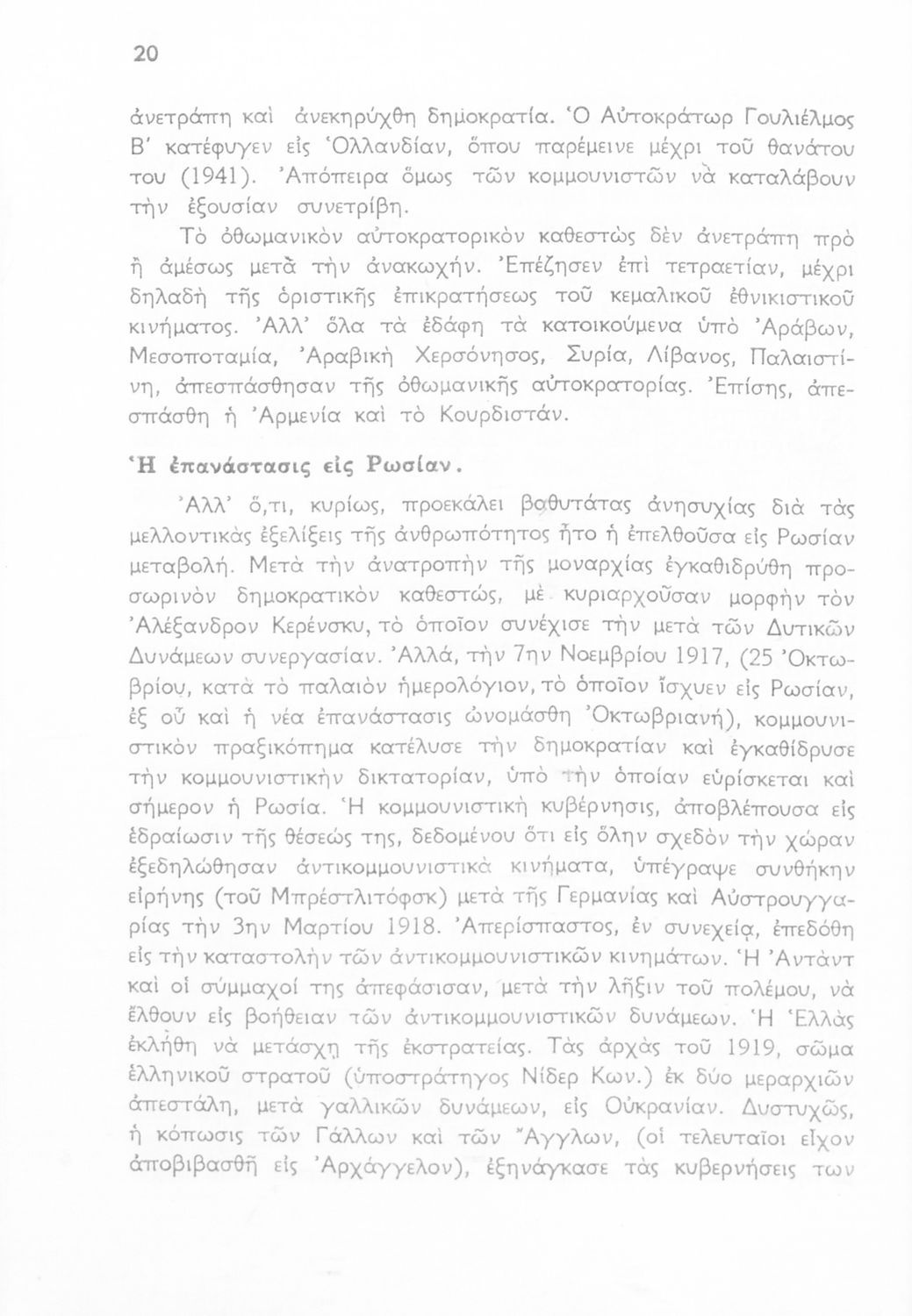 Σχολικό εγχειρίδιο Ιστορίας για τους μαθητές της ΣΤ΄ Γυμνασίου. Το βιβλίο περιγράφει το ρόλο της Ελλάδας κατά τη διάρκεια του Πρώτου Παγκοσμίου Πολέμου, κατά τη διάρκεια του Μεσοπολέμου, τη διάρκεια του Δευτέρου Παγκοσμίου Πολέμου με αναφορές στην Ιταλική εισβολή, την κατάληψη της Ελλάδας από τα Γερμανικά στρατεύματα και την έναρξη του εμφυλίου πολέμου. Τέλος, το βιβλίο αναφέρεται σ τις πολιτικές εξελίξεις της Ελλάδας κατά τη διάρκεια του Ψυχρού πολέμου με το Κυπριακό και την άνοδο της Χούντας.