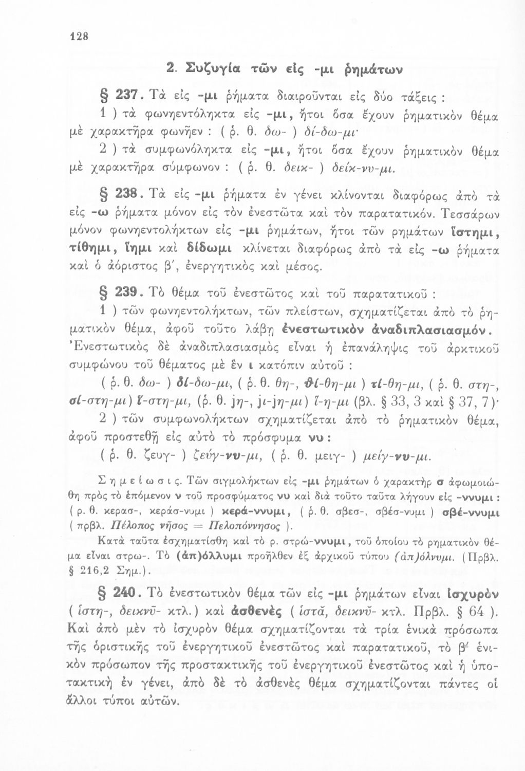 Γραμματική Αρχαίων Ελληνικών της Α΄, Β΄, Γ΄ και Δ΄ Γυμνασίου το οποίο εστιάζει στα μέρη του λόγου και στην σύνταξή τους και είναι χωρισμένο σε φθογγολογικό και τυπολογικό μέρος.