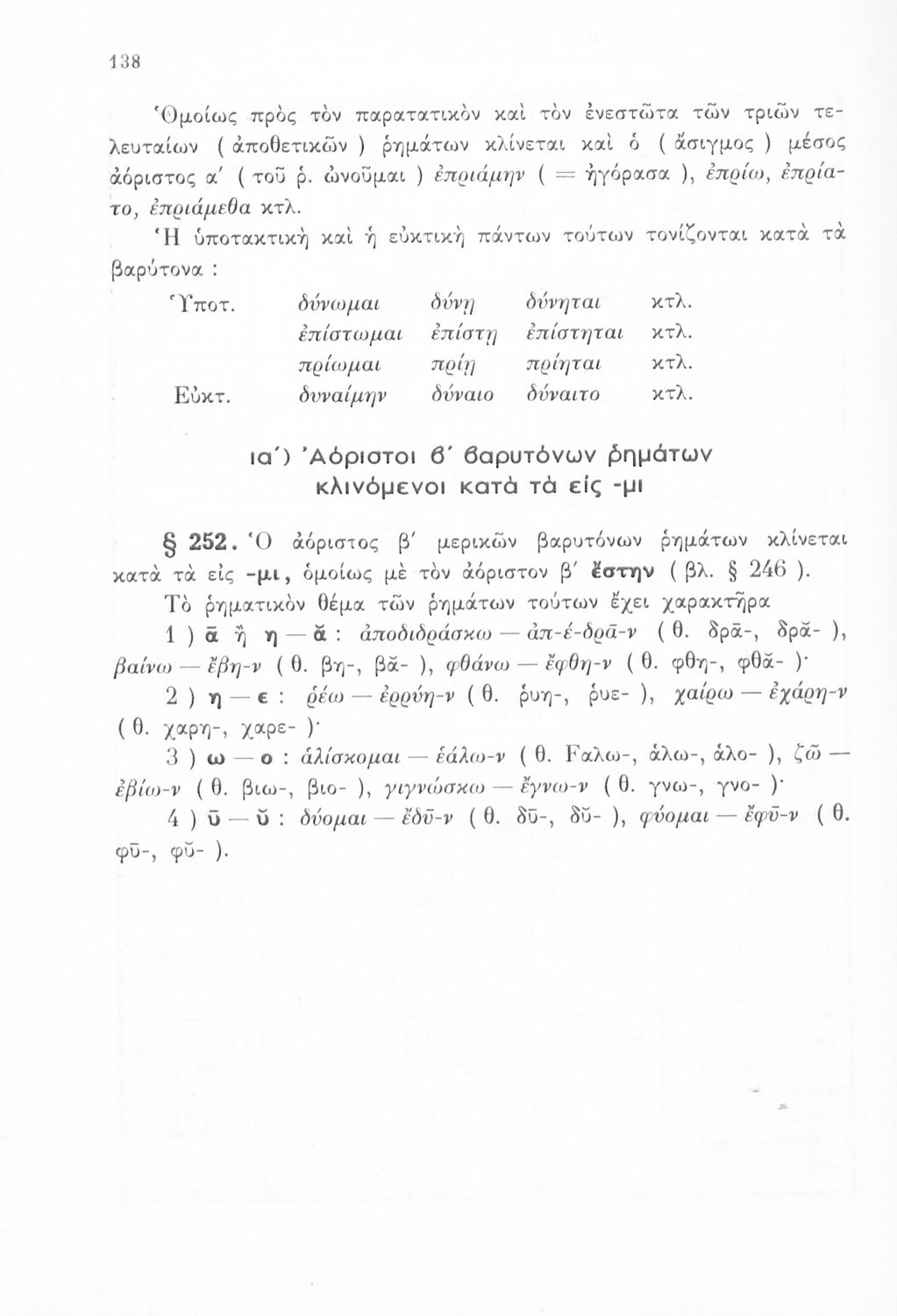 Σχολικό εγχειρίδιο Αρχαίων Ελληνικών για τις Α΄, Β΄ και Γ' Ελληνικού Σχολείου που περιλαμβάνει τη γραμματική της αρχαίας ελληνικής, πίνακα ανωμάλων ρημάτων και αρχικών χρόνων και ασκήσεις.