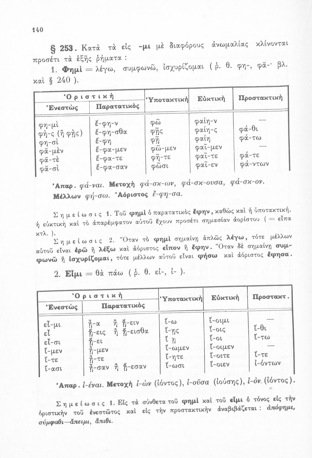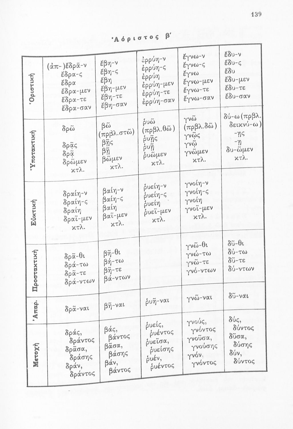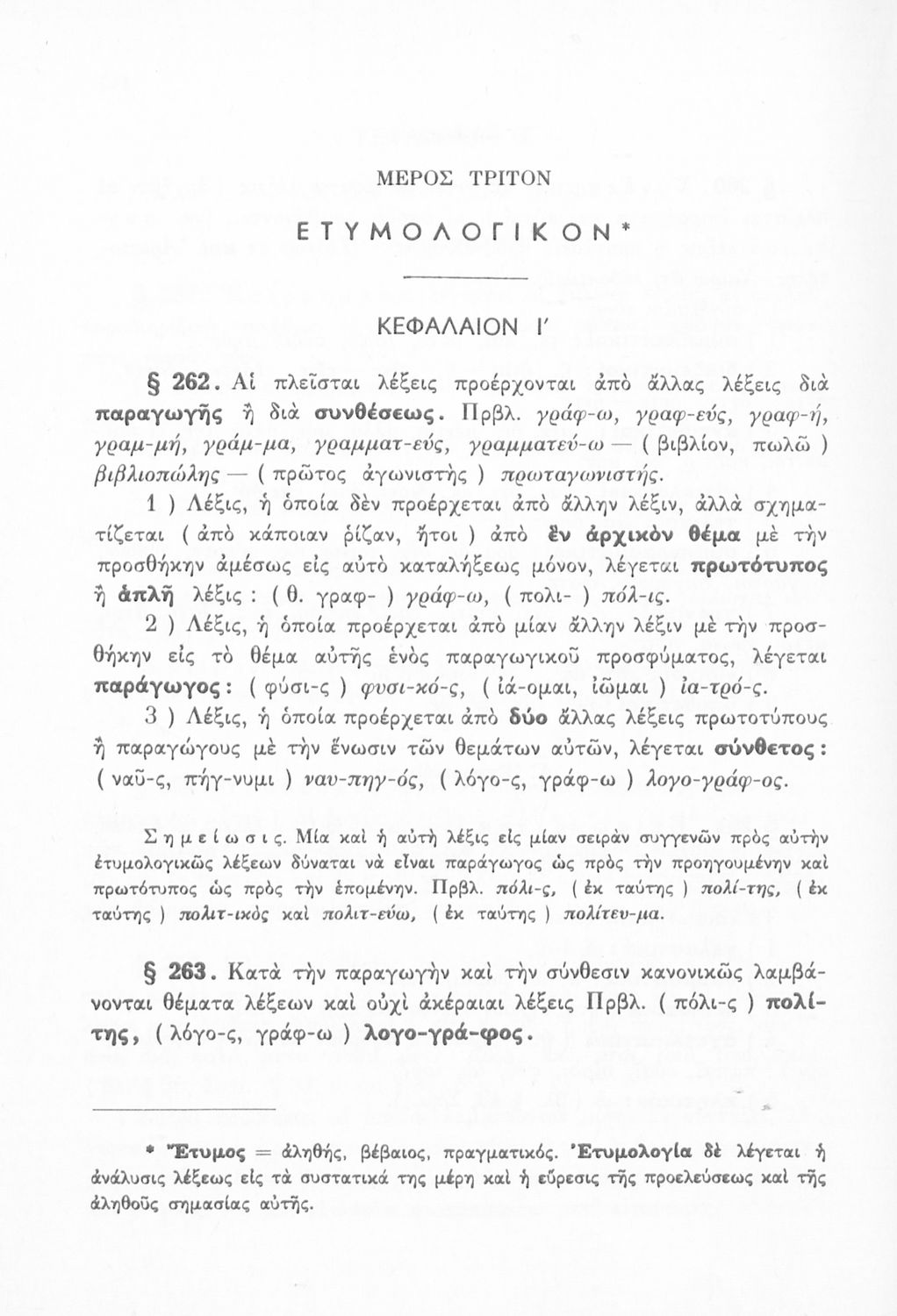 Σχολικό εγχειρίδιο Αρχαίων Ελληνικών Γ΄ Γυμνασίου που περιέχει τους κανόνες γραμματικής και είναι χωρισμένο σε φθογγολογικό, τυπολογικό και ετυμολογικό μέρος. Περιέχει και κατάλογο ανωμάλων ρημάτων.
