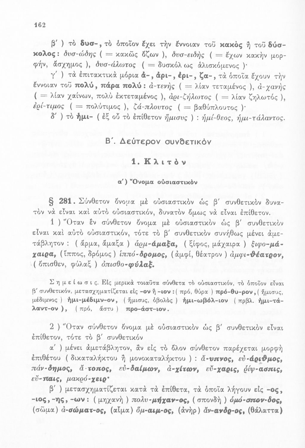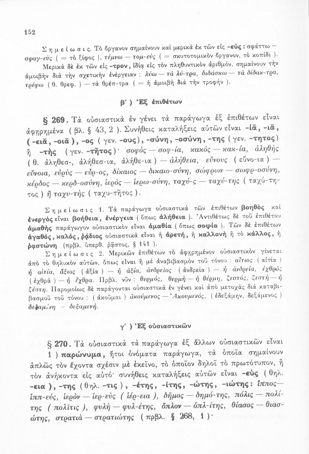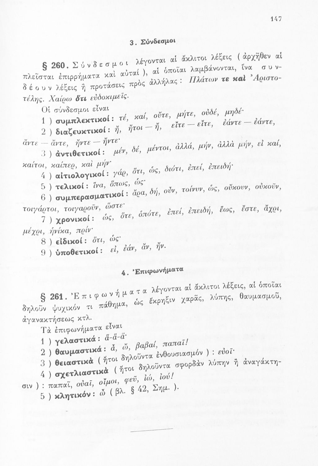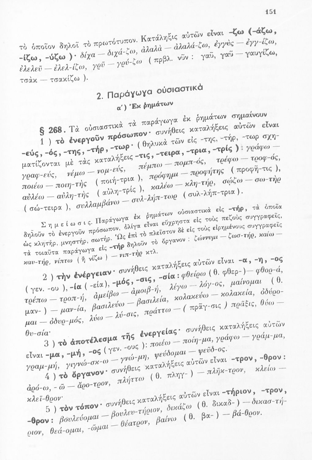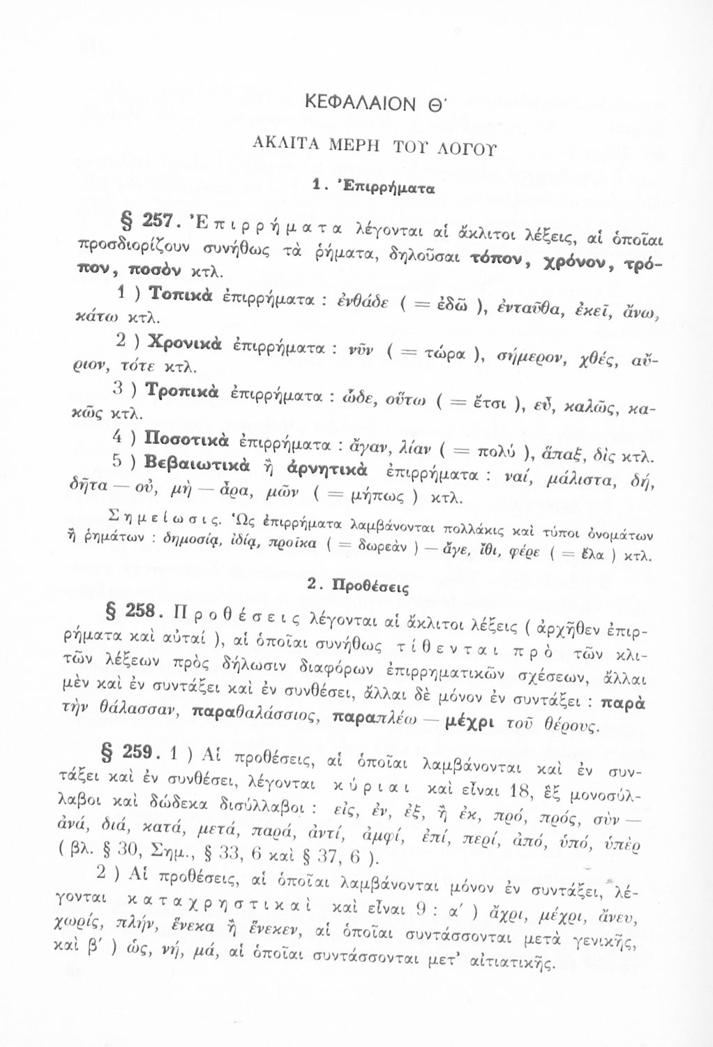 Γραμματική Αρχαίων Ελληνικών της Α΄, Β΄, Γ΄ και Δ΄ Γυμνασίου το οποίο εστιάζει στα μέρη του λόγου και στην σύνταξή τους και είναι χωρισμένο σε φθογγολογικό και τυπολογικό μέρος.