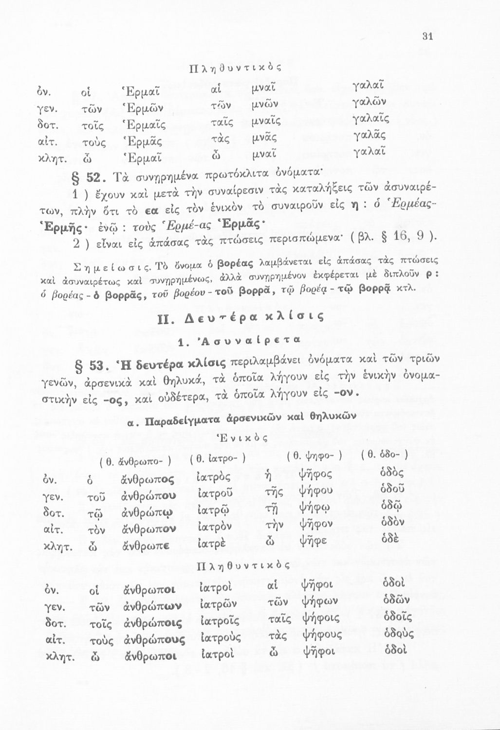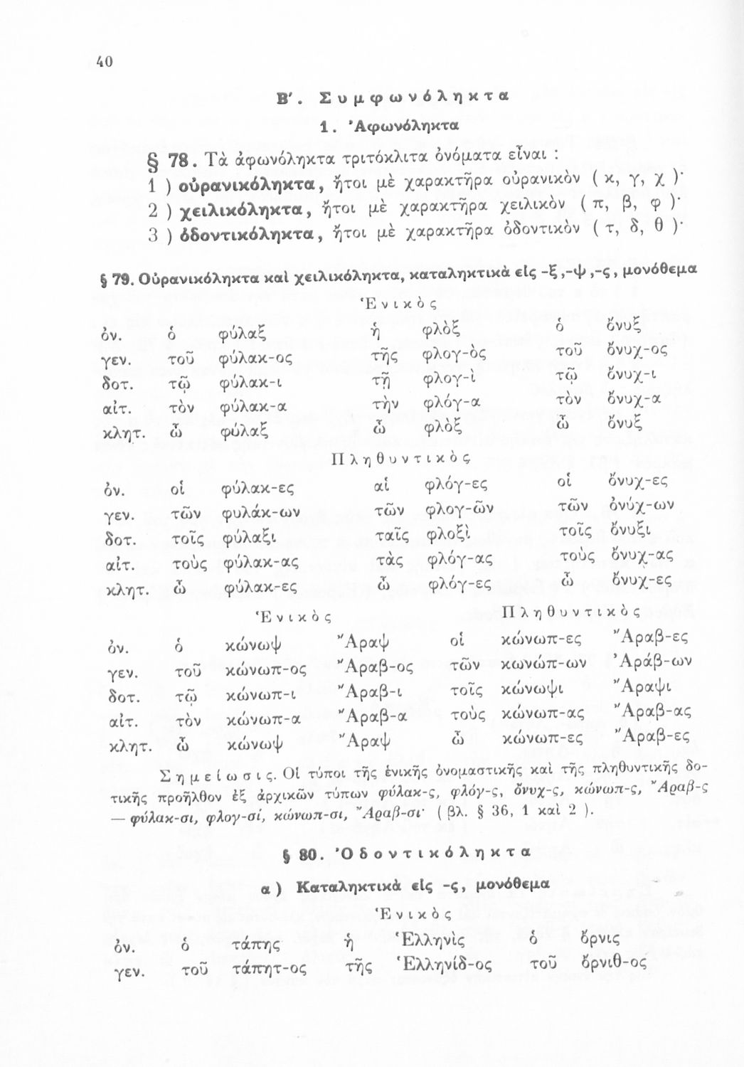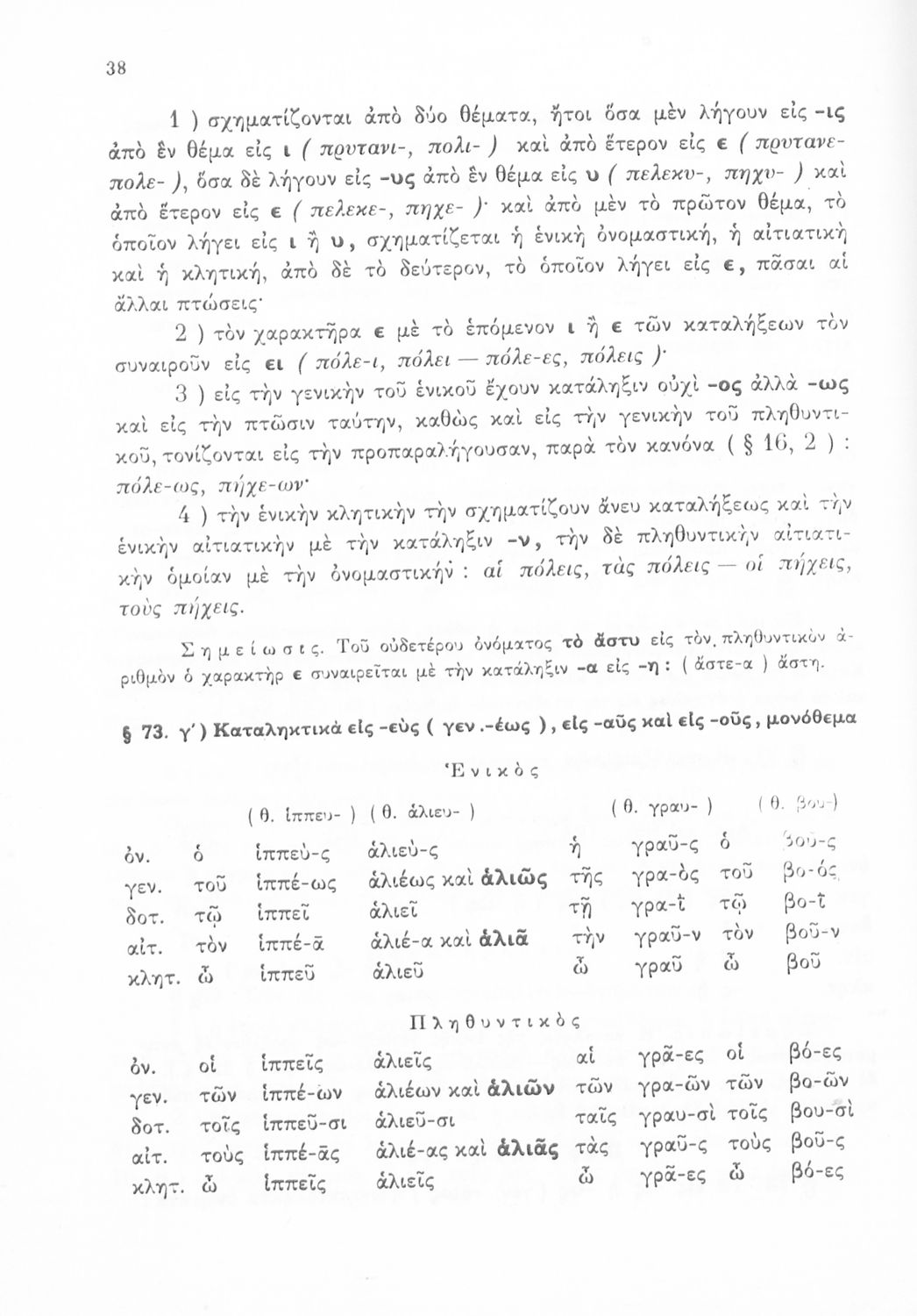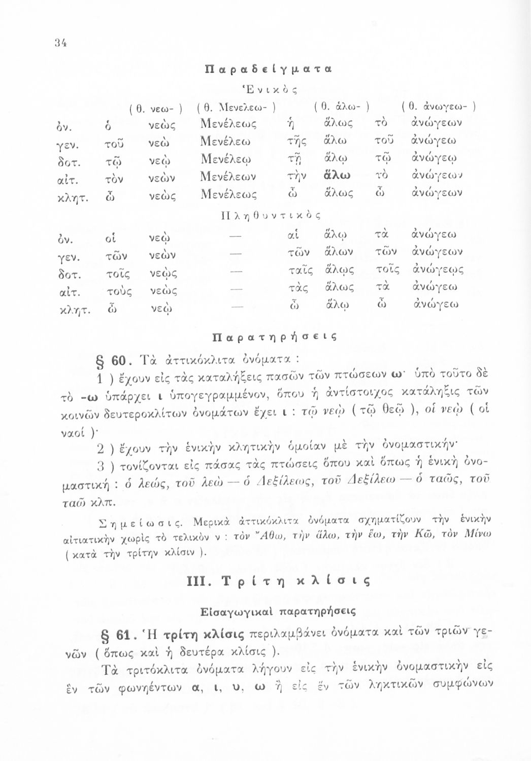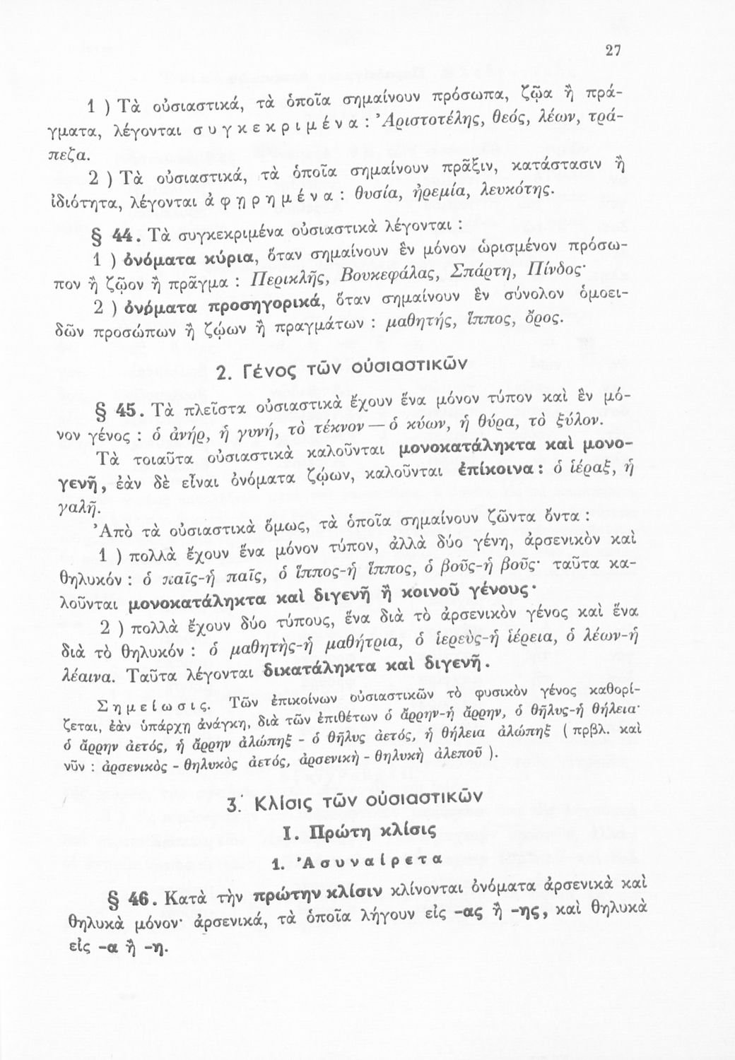 Βαθμίδα εκπαίδευσης: Δευτεροβάθμια Τάξη: Α' Γυμνασίου / Β' Γυμνασίου / Γ' Γυμνασίου Μάθημα: Αρχαία Ελληνικά Γλώσσα: Καθαρεύουσα Παρουσίαση περιεχομένου: Σχολικό Εγχειρίδιο Αρχαίων Ελληνικών για τις Α', Β' και Γ' Γυμνασίου που περιέχει τους κανόνες του συντακτικού και της γραμματικής της ελληνικής γλώσσας, τις κλήσεις ουσιαστικών και ρημάτων καθώς και τον τρόπο σύνδεσης των προτάσεων. |