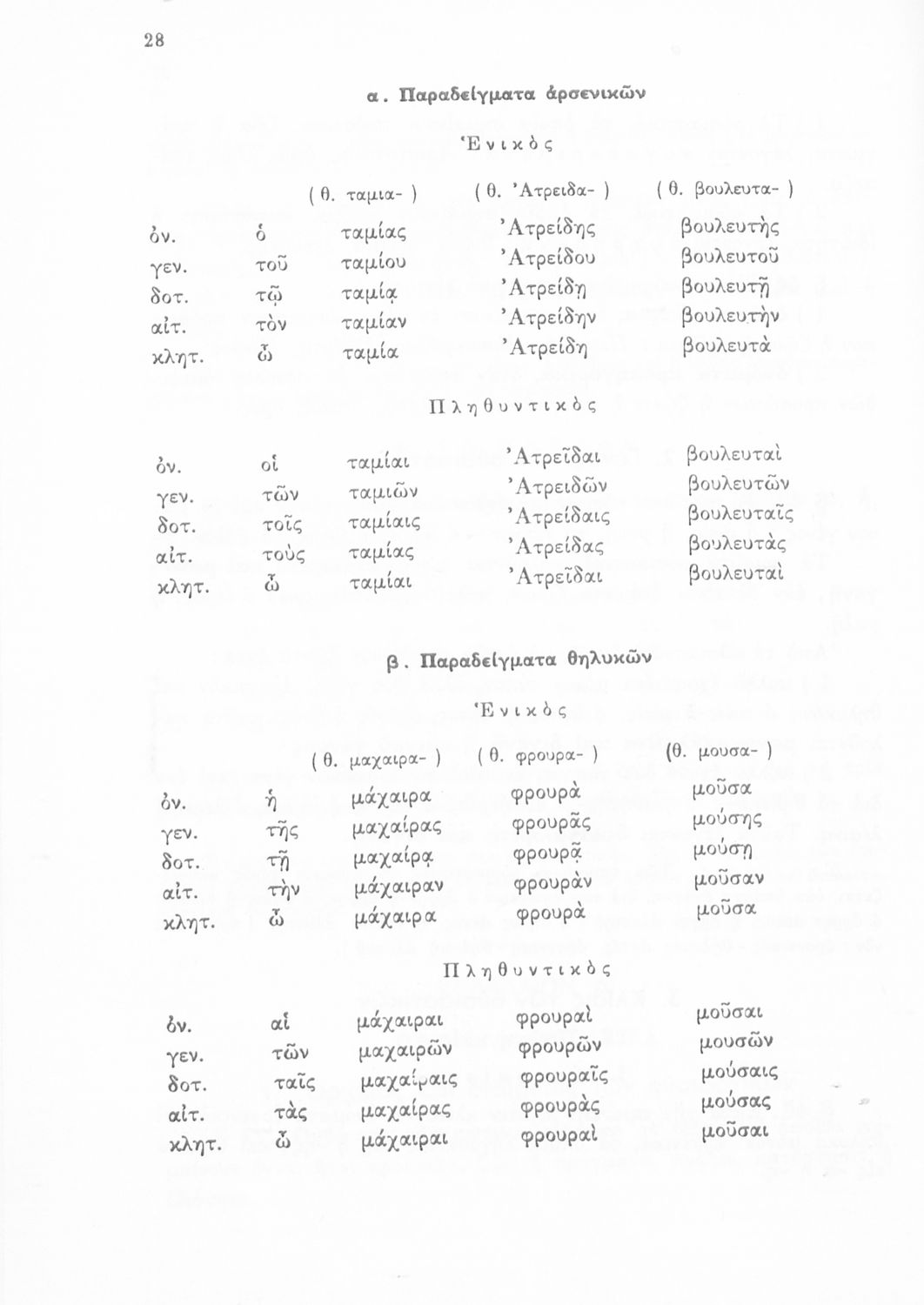 Σχολικό Εγχειρίδιο Αρχαίων Ελληνικών για τις Α', Β' και Γ' Γυμνασίου που περιέχει τους κανόνες του συντακτικού και της γραμματικής της ελληνικής γλώσσας, τις κλήσεις ουσιαστικών και ρημάτων καθώς και τον τρόπο σύνδεσης των προτάσεων.