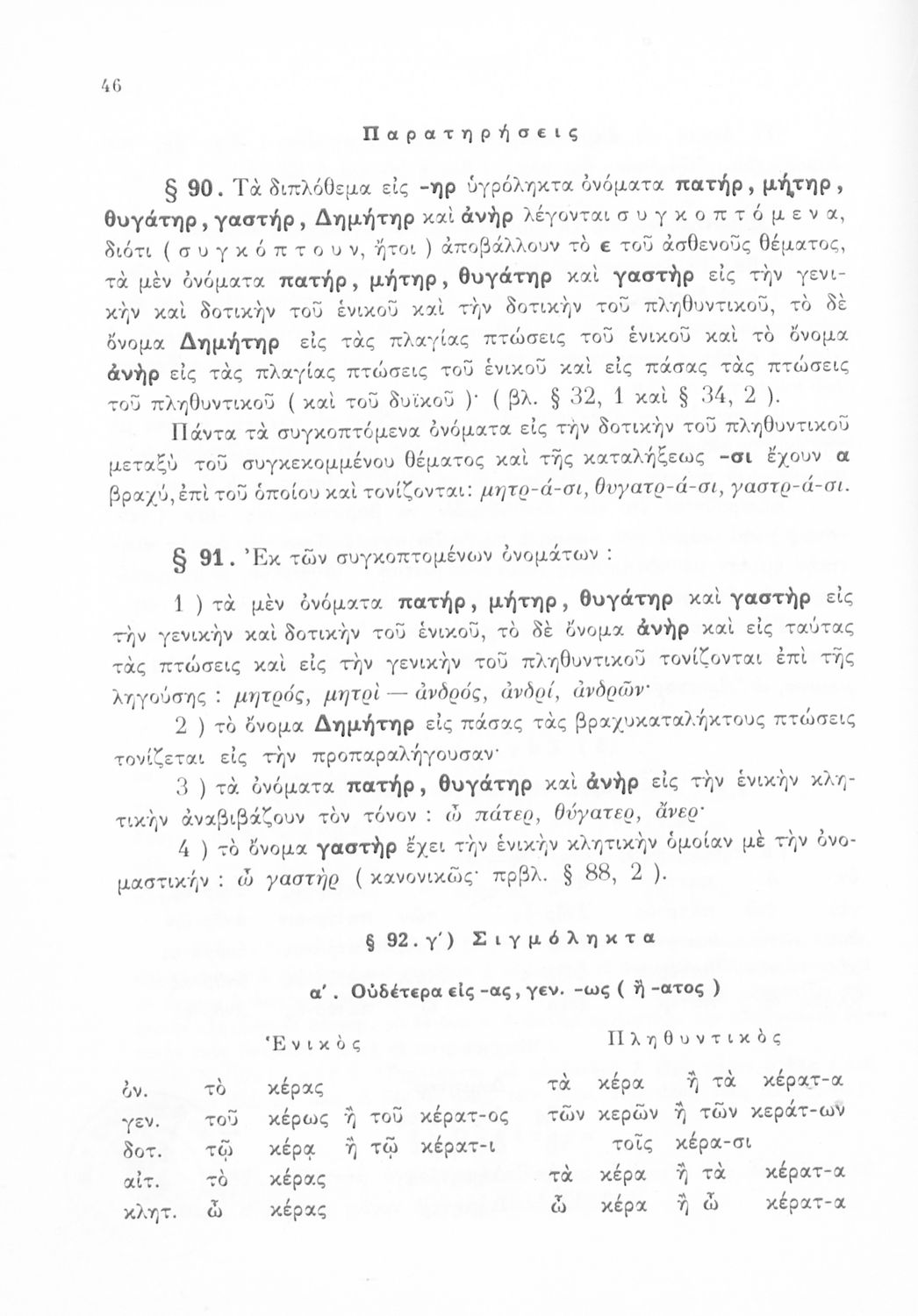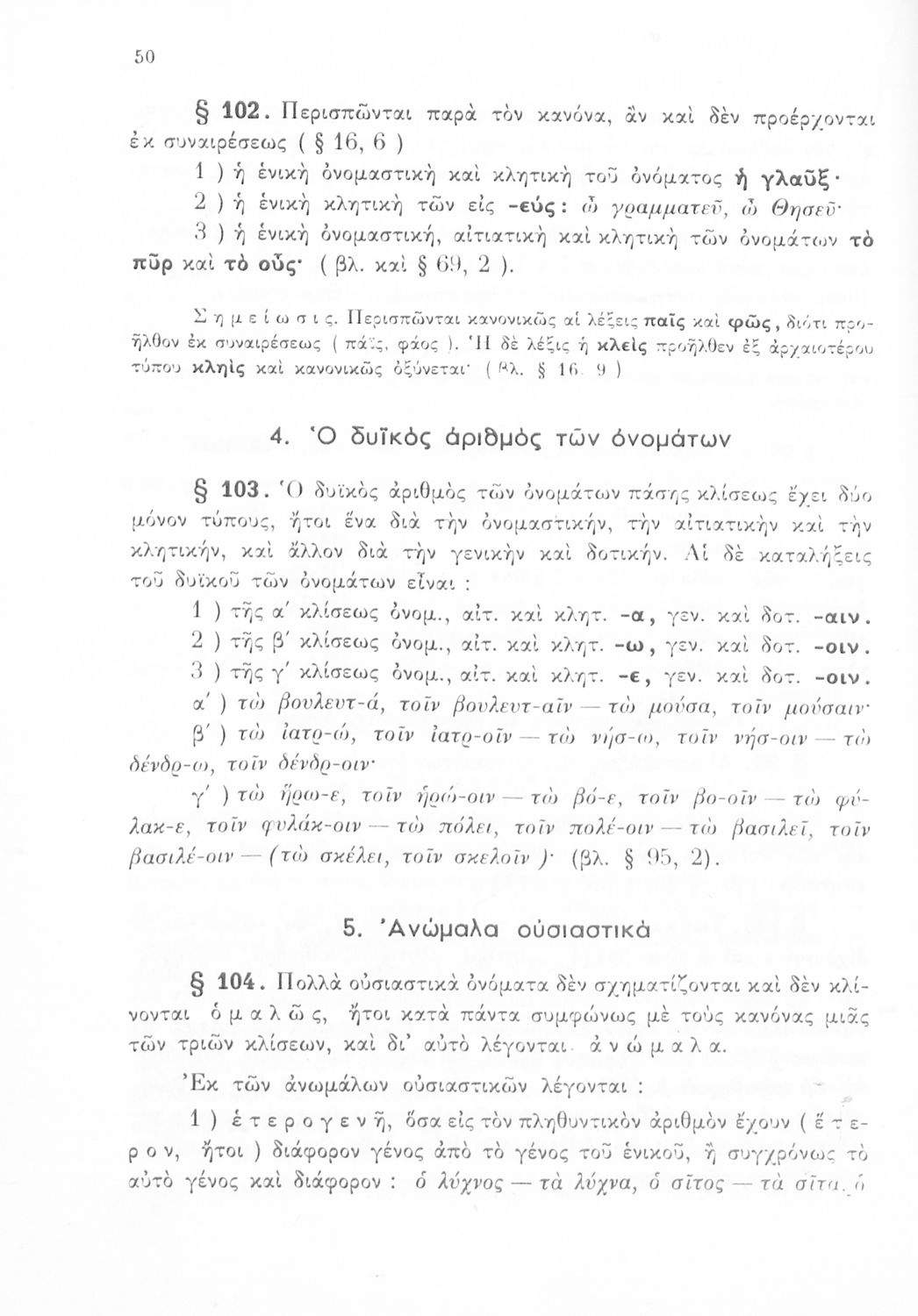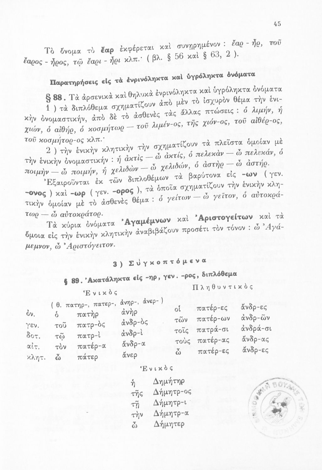 Σχολικό εγχειρίδιο Αρχαίων Ελληνικών Γ΄ Γυμνασίου που περιέχει τους κανόνες γραμματικής και είναι χωρισμένο σε φθογγολογικό, τυπολογικό και ετυμολογικό μέρος. Περιέχει και κατάλογο ανωμάλων ρημάτων.