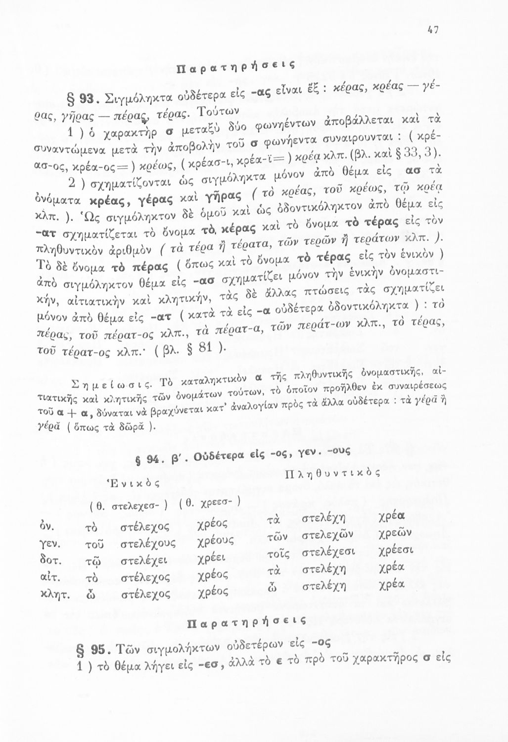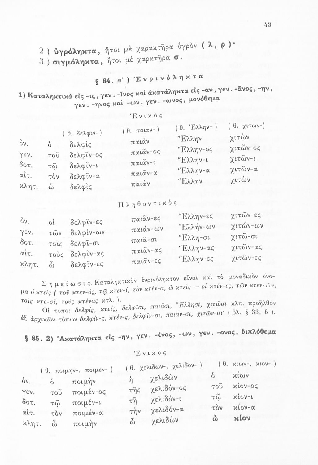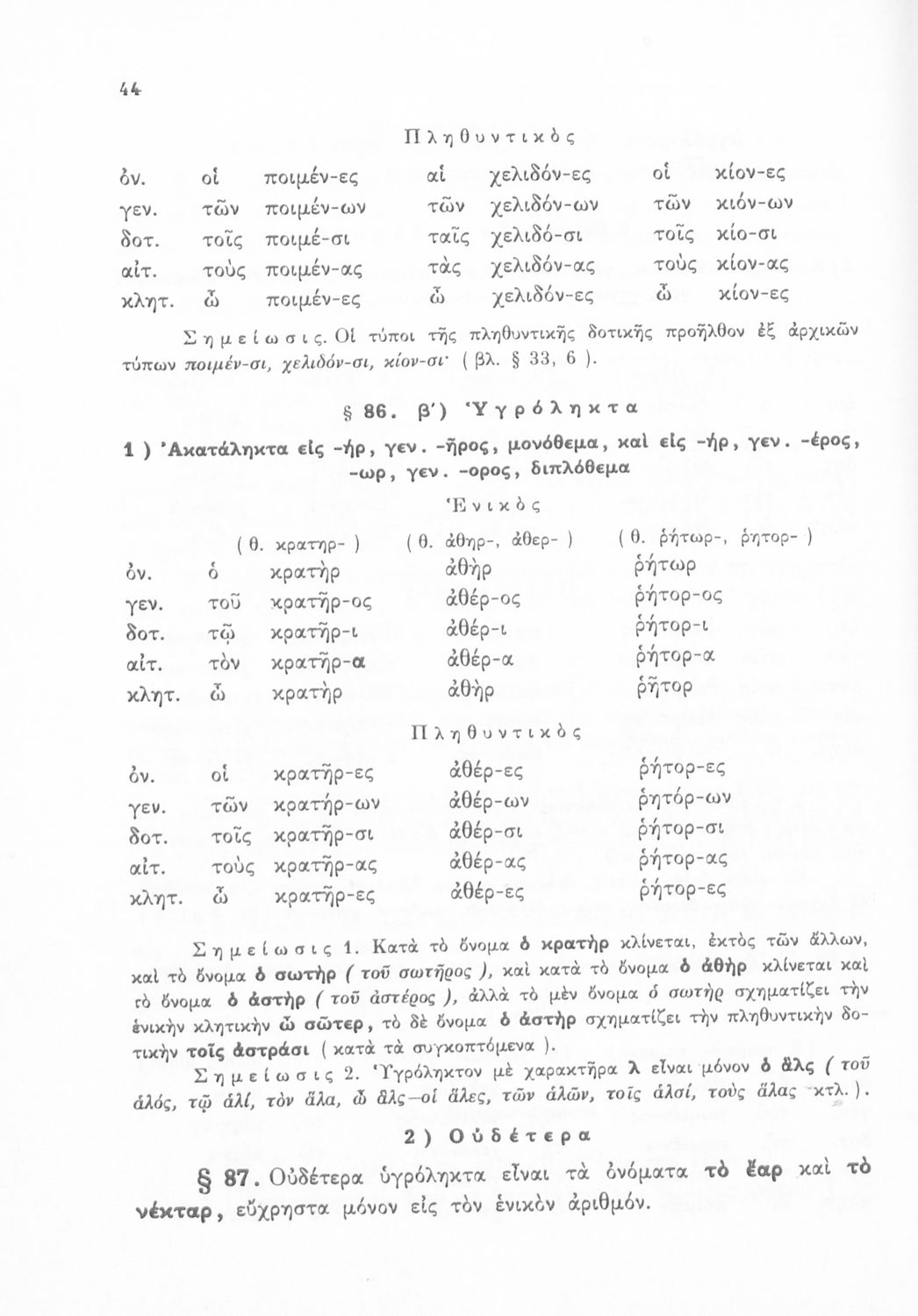 Σχολικό εγχειρίδιο Αρχαίων Ελληνικών Γ΄ Γυμνασίου που περιέχει τους κανόνες γραμματικής και είναι χωρισμένο σε φθογγολογικό, τυπολογικό και ετυμολογικό μέρος. Περιέχει και κατάλογο ανωμάλων ρημάτων.