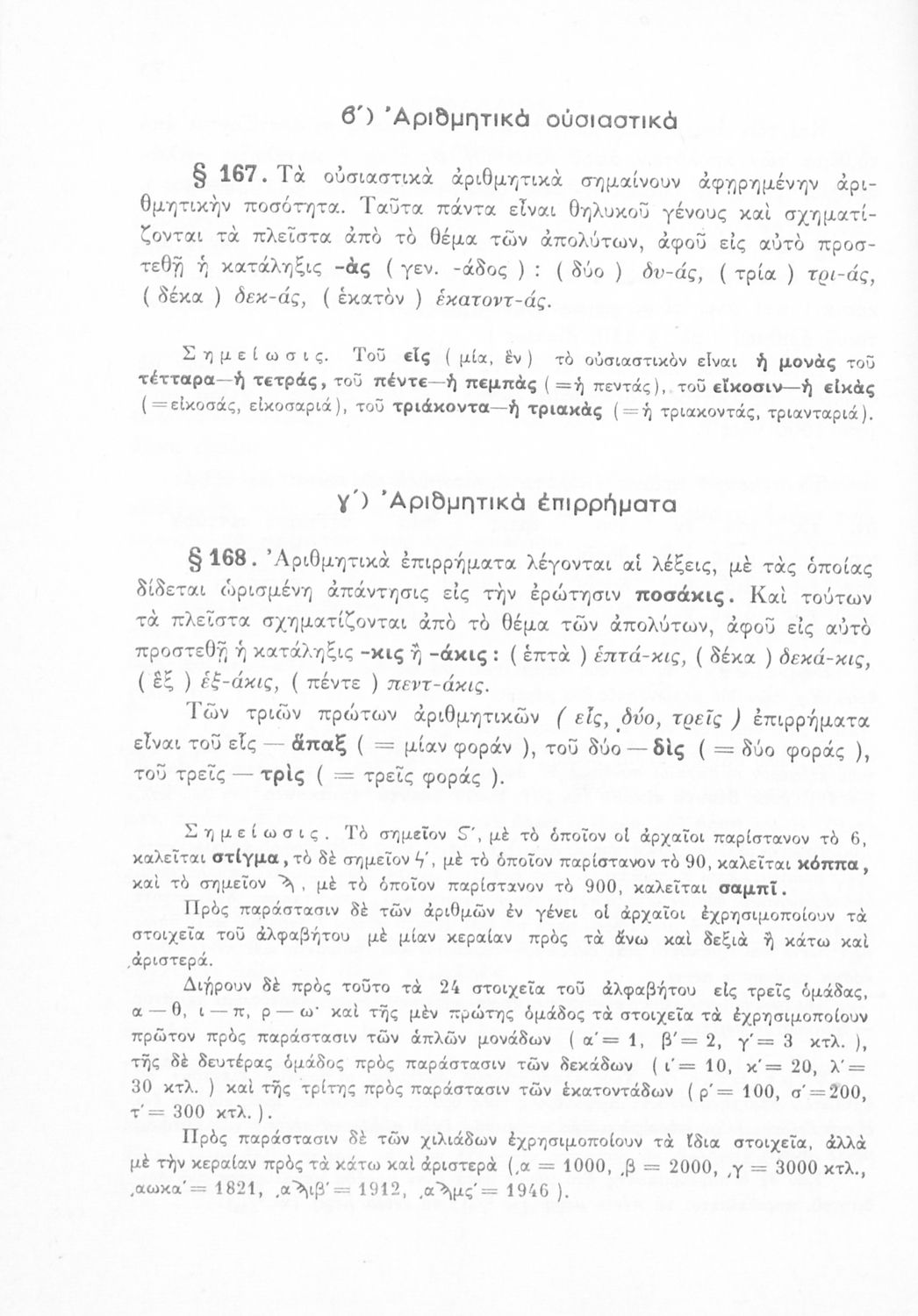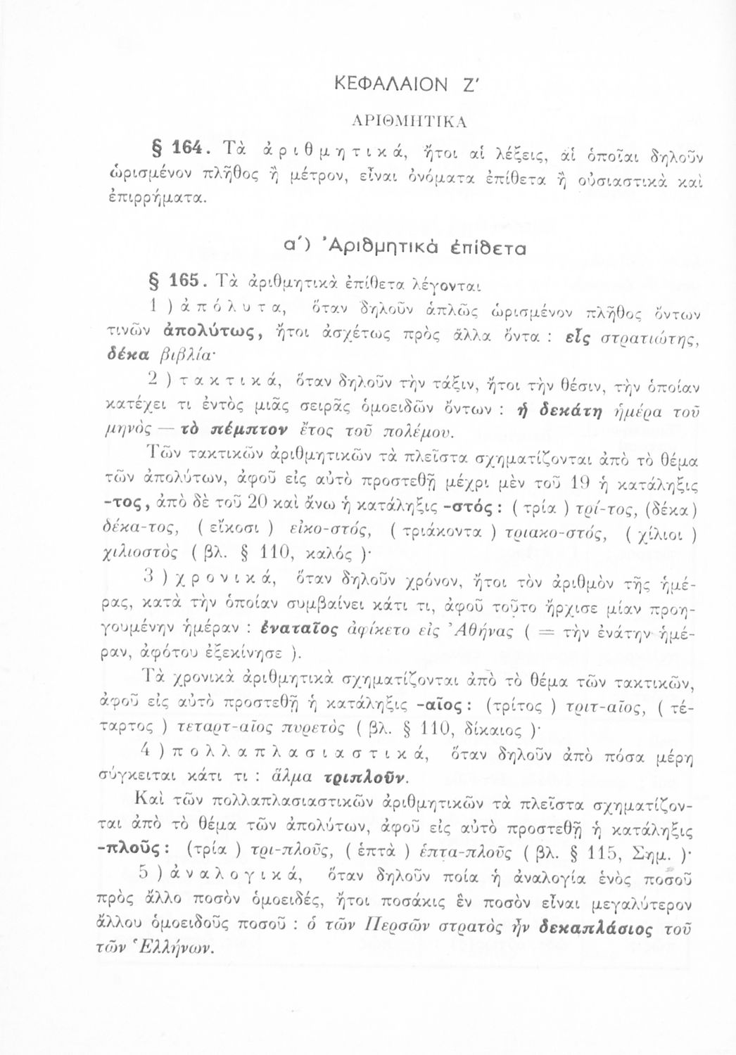 Γραμματική Αρχαίων Ελληνικών της Α΄, Β΄, Γ΄ και Δ΄ Γυμνασίου το οποίο εστιάζει στα μέρη του λόγου και στην σύνταξή τους και είναι χωρισμένο σε φθογγολογικό και τυπολογικό μέρος.
