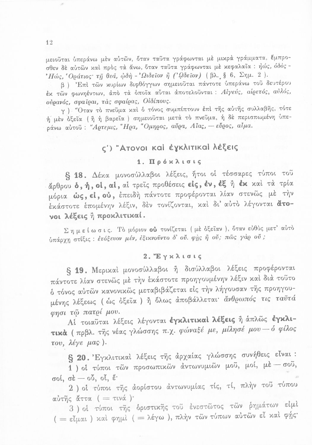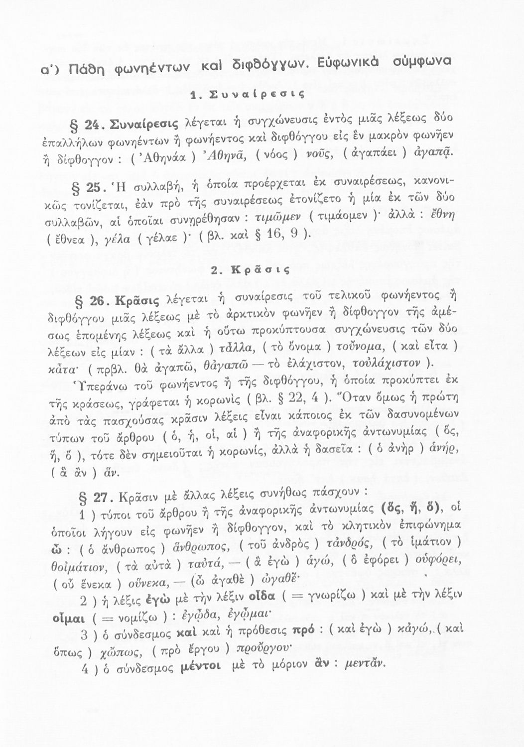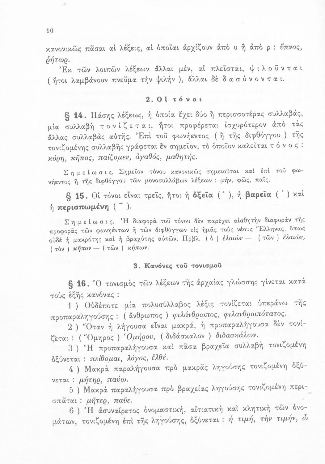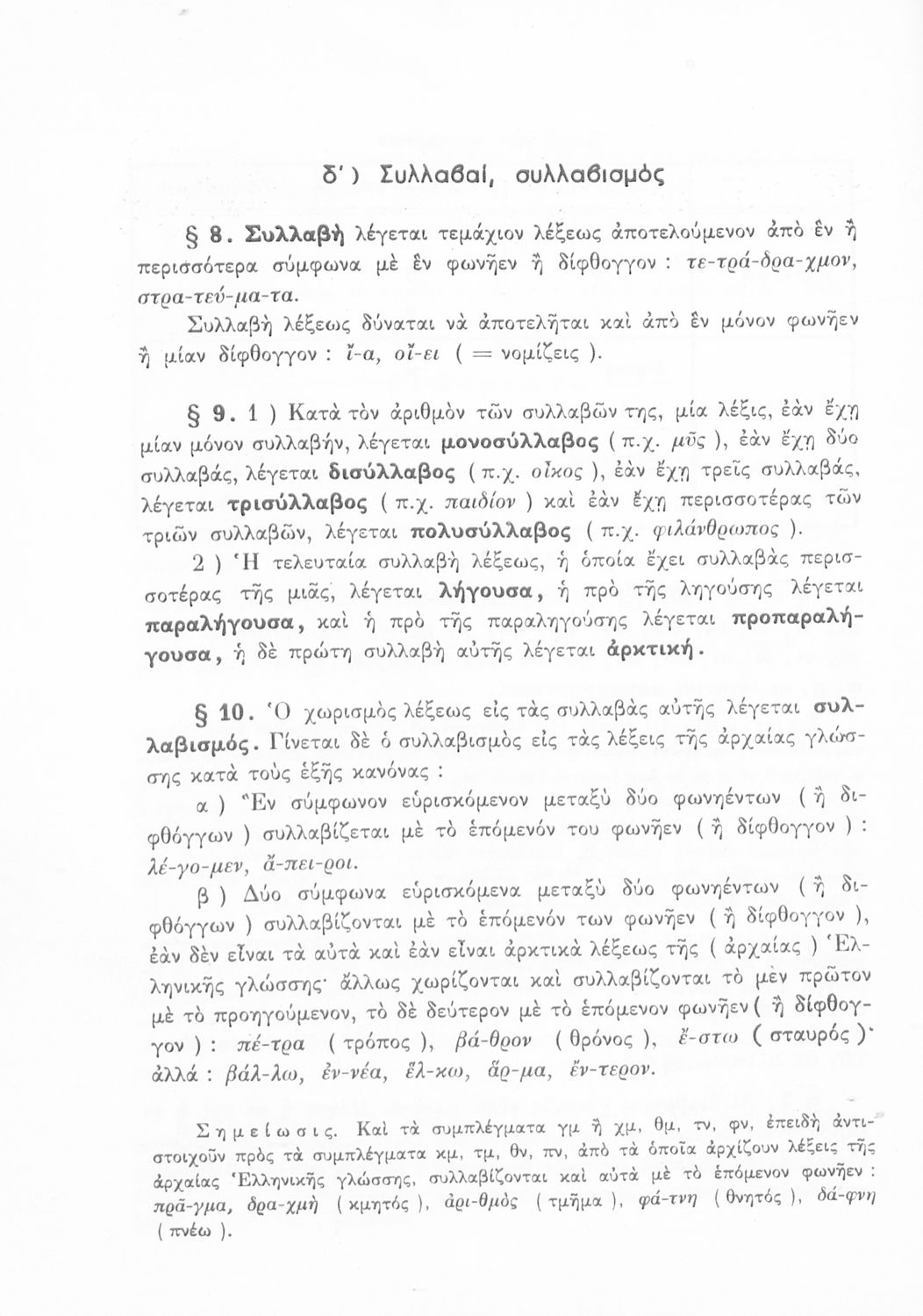 Σχολικό εγχειρίδιο Αρχαίων Ελληνικών Γ΄ Γυμνασίου που περιέχει τους κανόνες γραμματικής και είναι χωρισμένο σε φθογγολογικό, τυπολογικό και ετυμολογικό μέρος. Περιέχει και κατάλογο ανωμάλων ρημάτων.