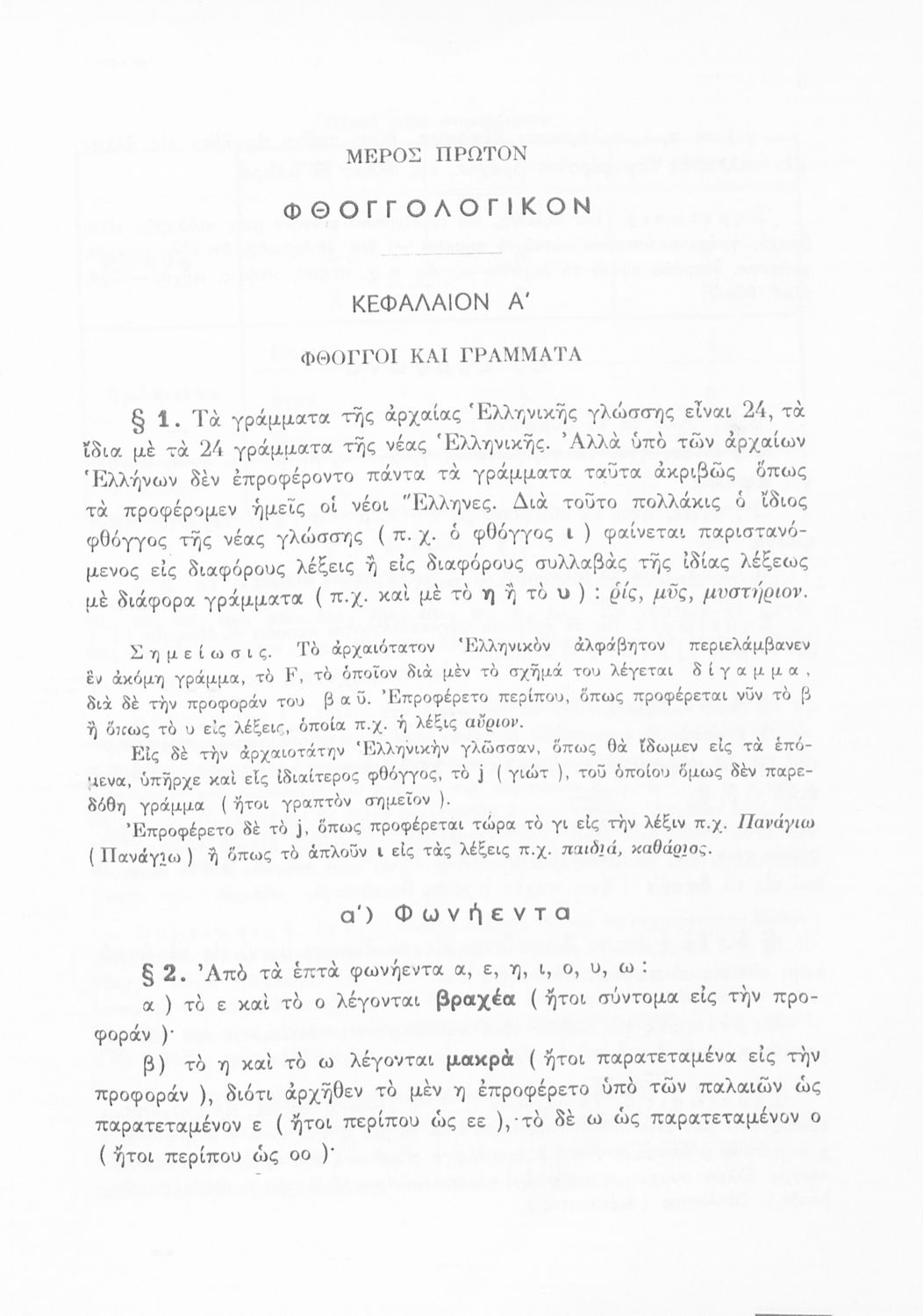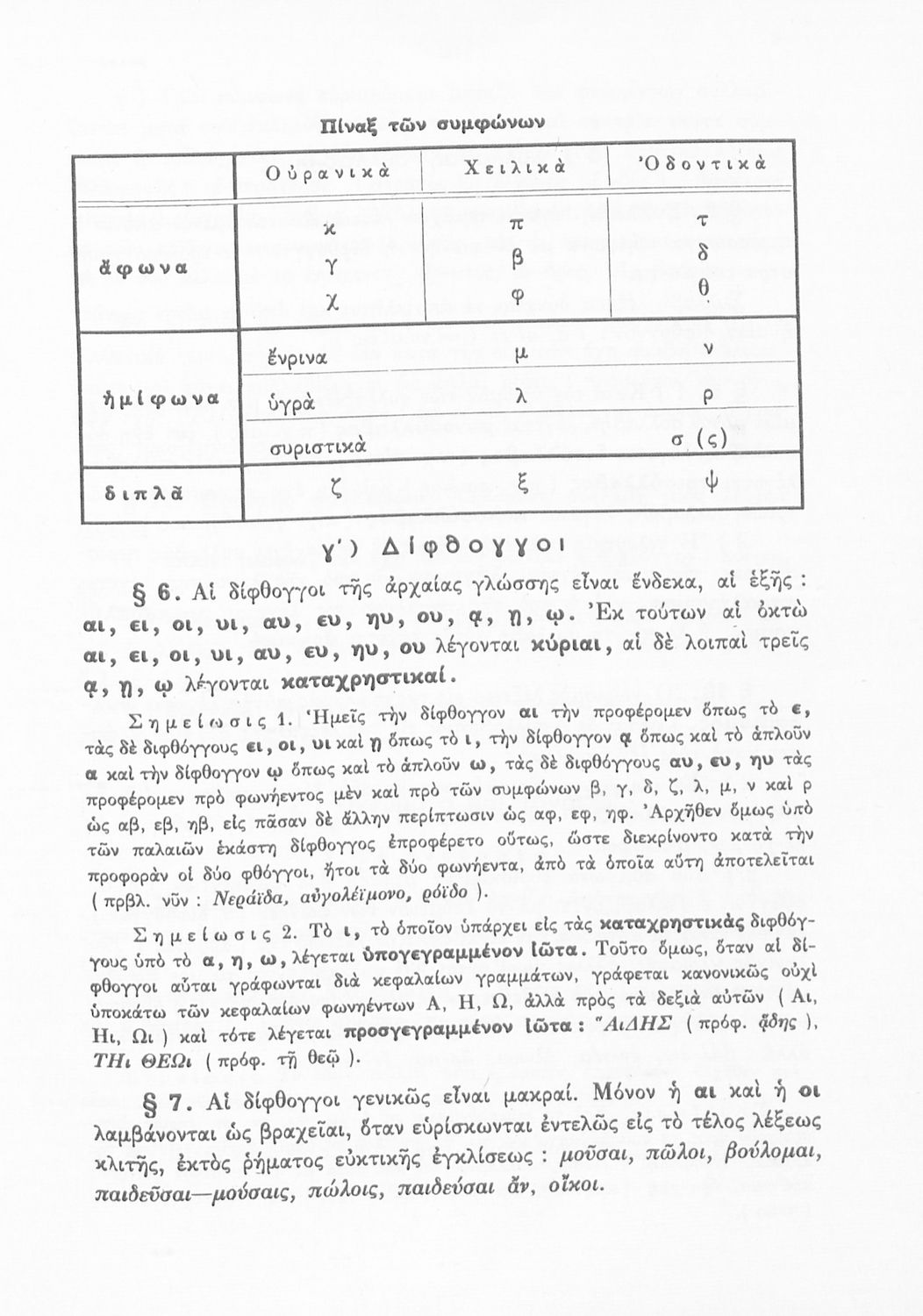 Σχολικό εγχειρίδιο Αρχαίων Ελληνικών Α΄, Β΄, Γ' Ελληνικού Σχολείου που αποτελεί γραμματική της αρχαίας ελληνικής και είναι χωρισμένο στο φθογγολογικό και το τυπολογικό μέρος. Περιέχει και σύντομα κείμενα που ...